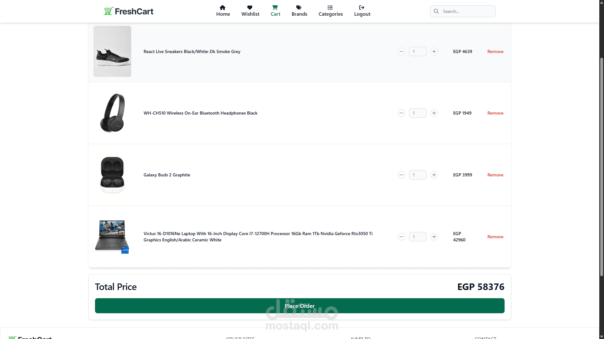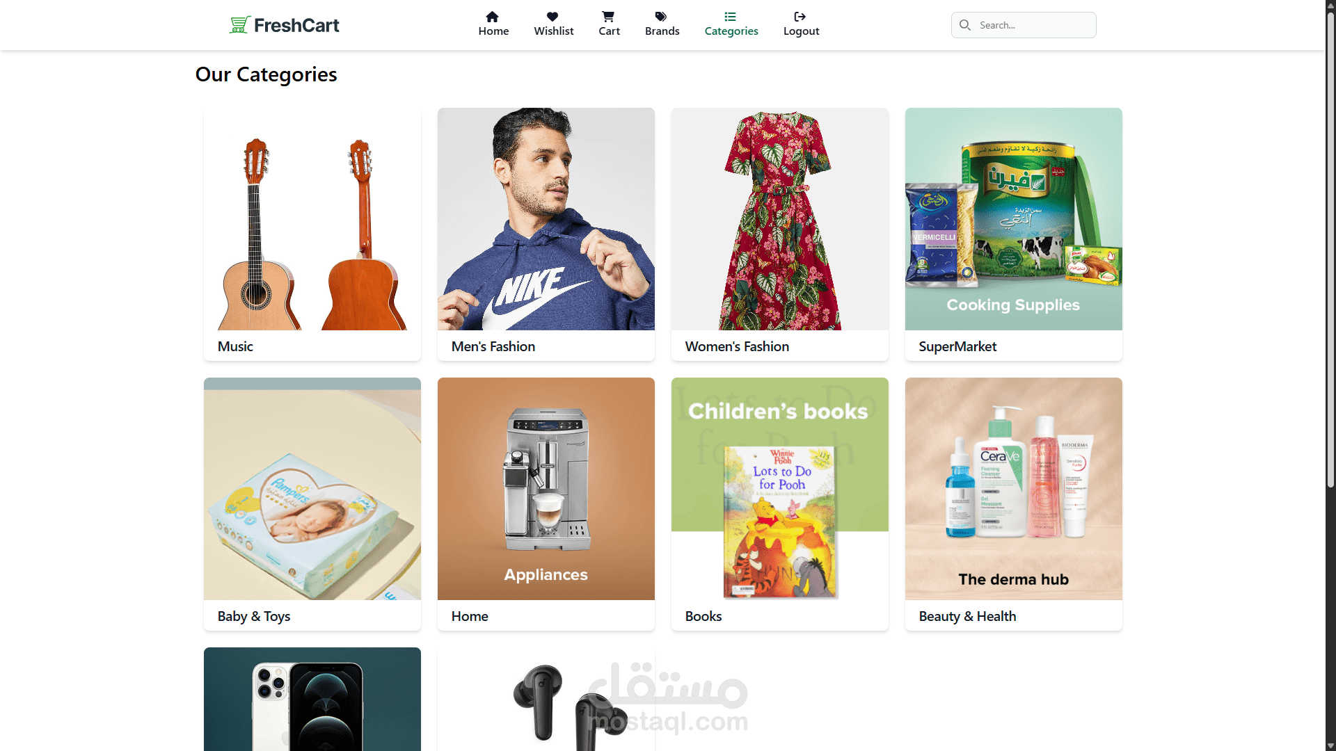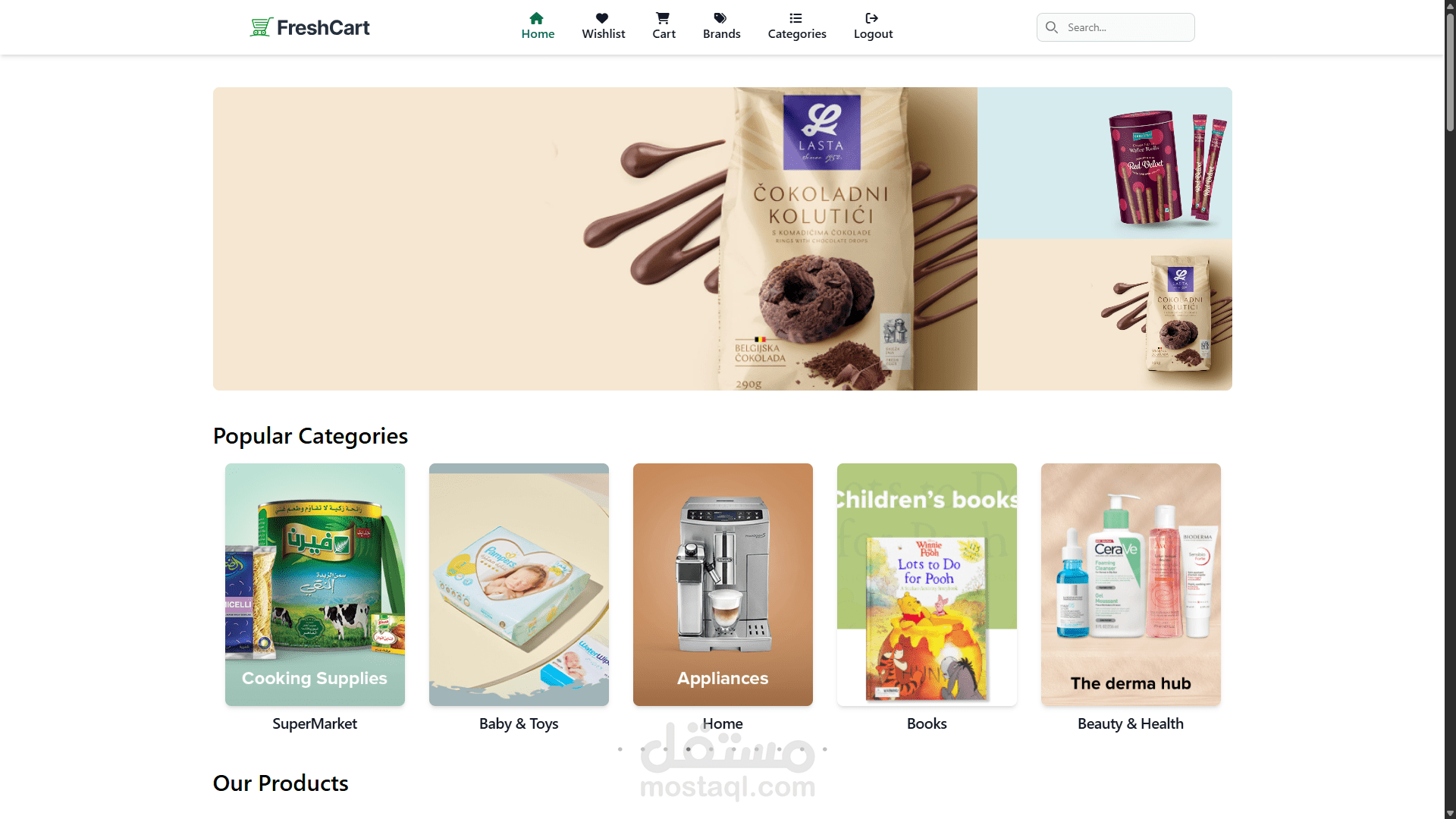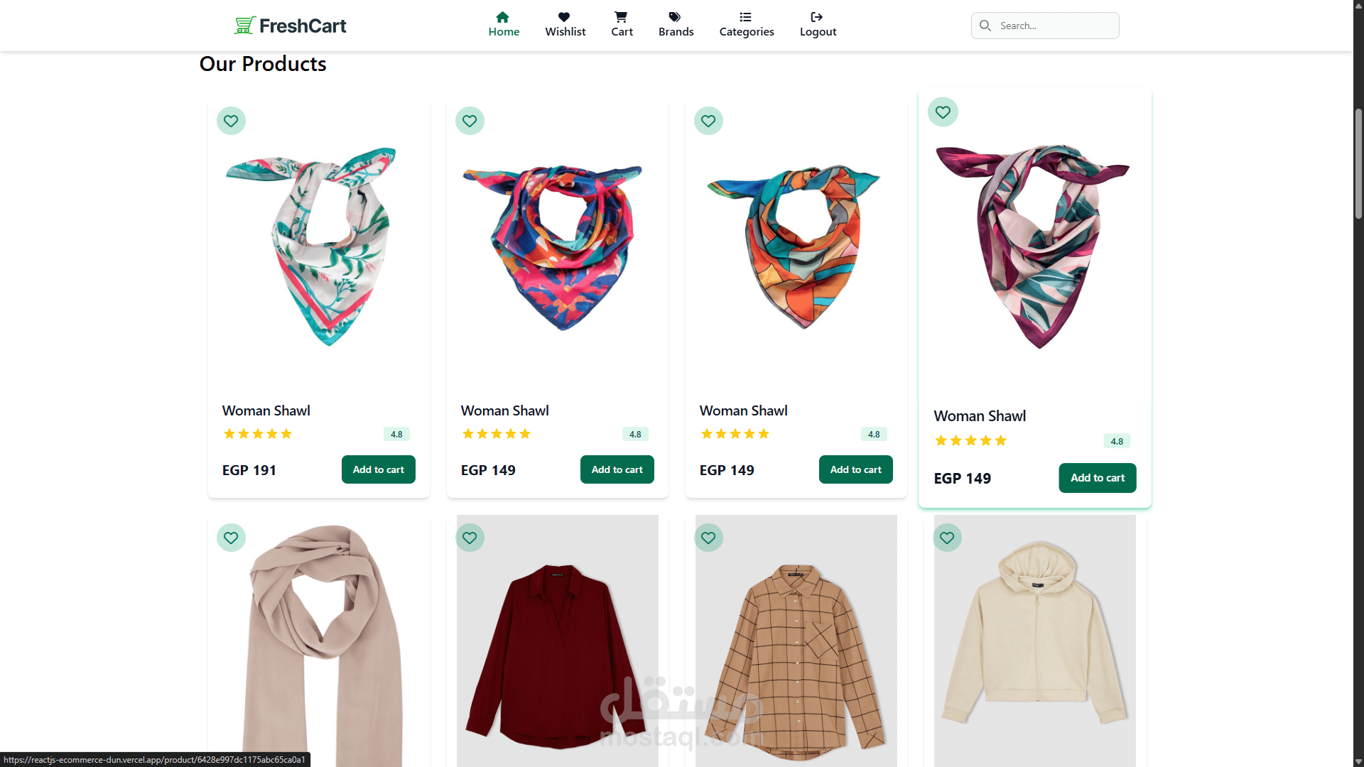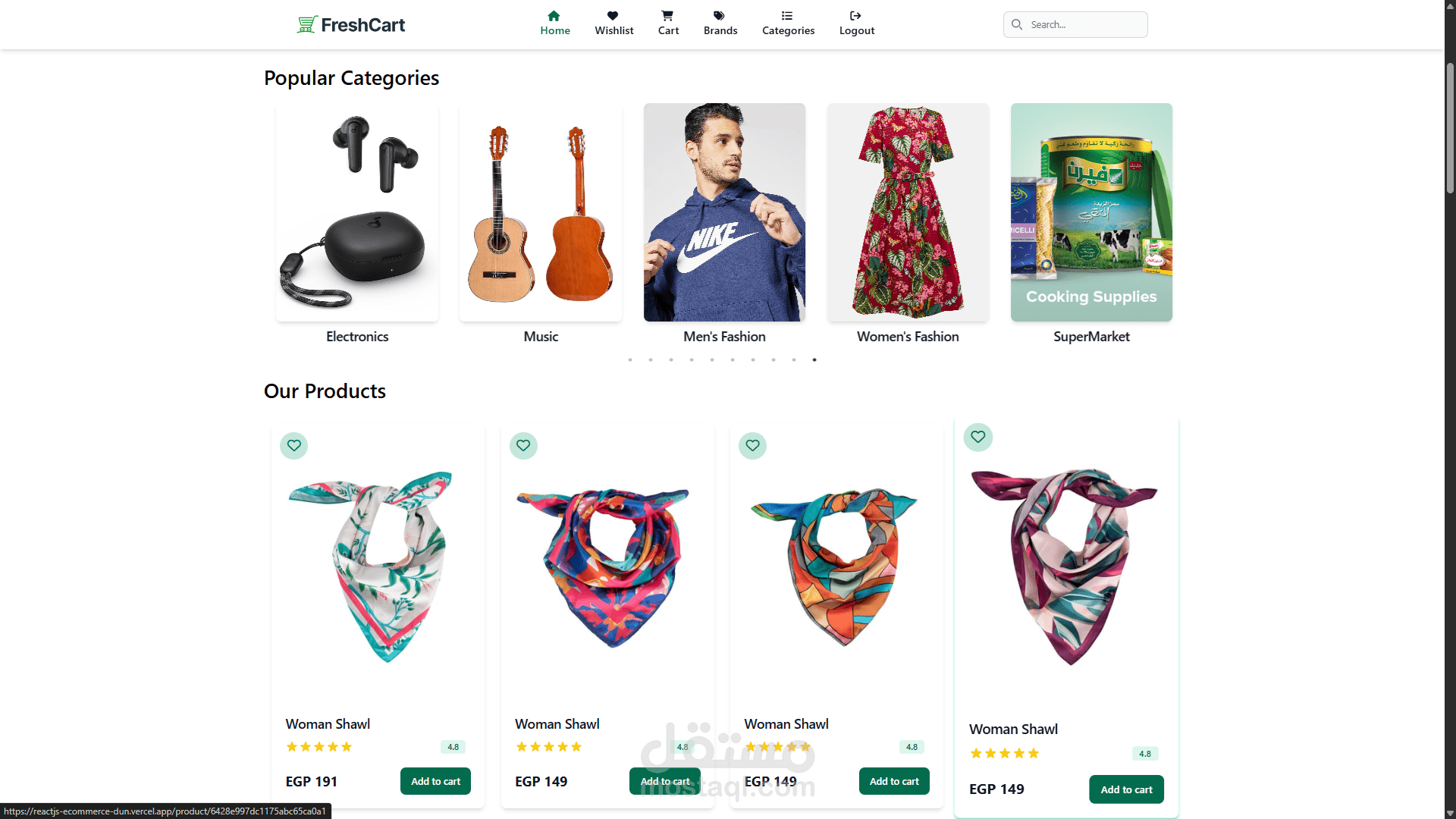 تطبيق ويب للتجارة الإلكترونية يتيح للمستخدمين تصفح وشراء المنتجات، مع إمكانية إدارة السلة وقائمة المفضلة وإتمام عملية الدفع بأمان. يشمل مميزات تسجيل الدخول، إعادة تعيين كلمة المرور، البحث عن المنتجات، والتصفية حسب الفئات والعلامات التجارية. يعتمد التطبيق على تكامل مع APIs خارجية لجلب البيانات. تم بناء الواجهة باستخدام React.js، Tailwind CSS، وREST APIs.