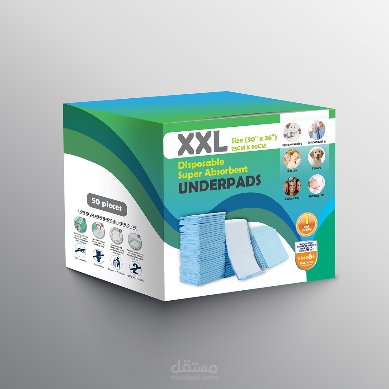 عبوه من الكرتون الميكروفلوت لتعزيز التحمل لشركة تعمل في انتاج البادز التي تستخدم لفراش المرضي