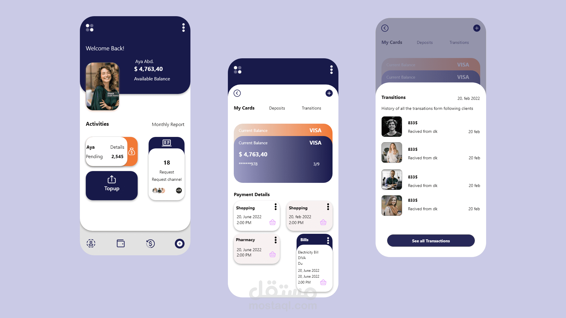 تصميم واجهات تسجيل دخول وواجهة home