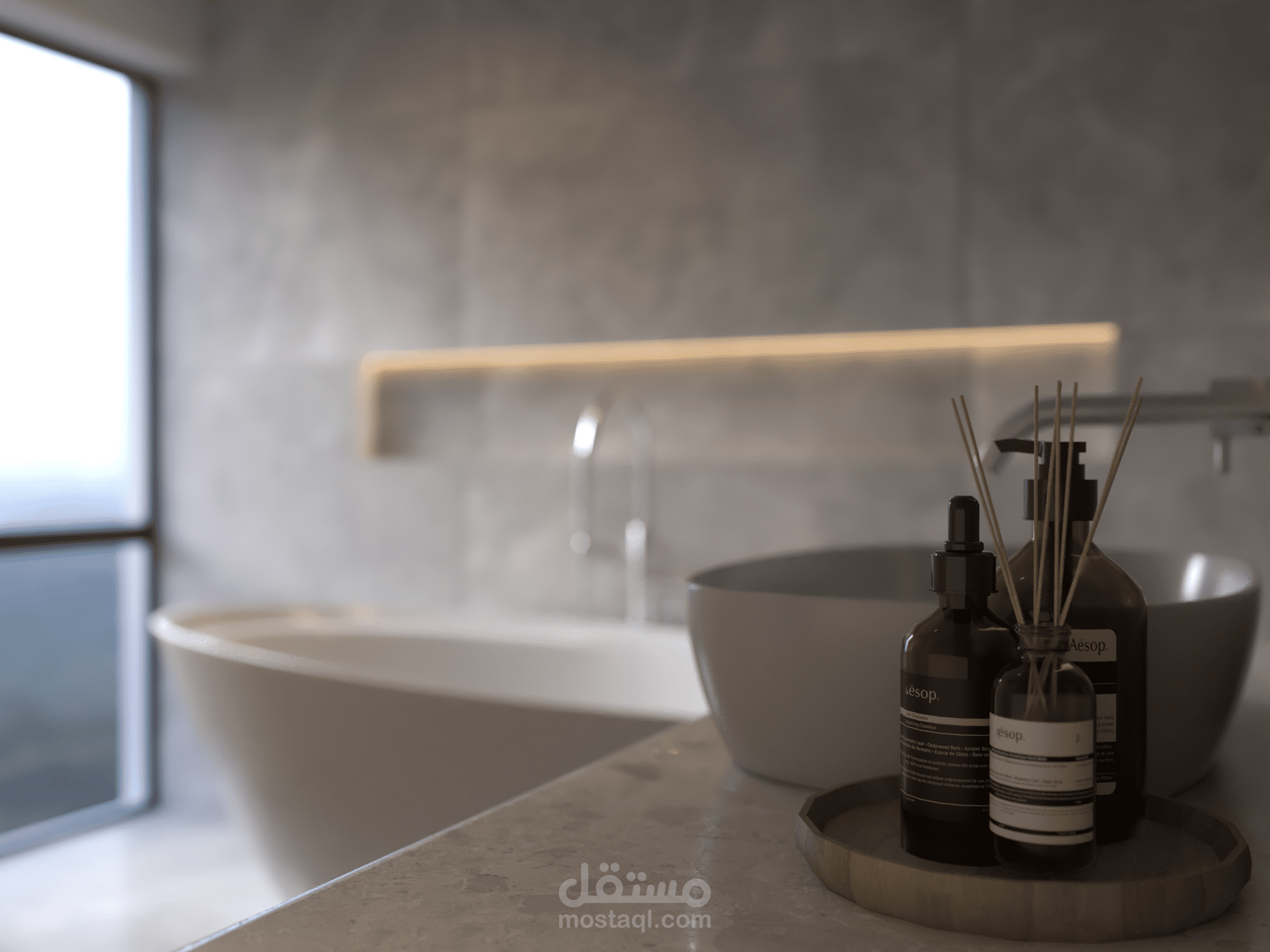 حمام مودرن يوازن بين الجمال والراحة، مصمم ليكون ملاذك اليومي للهروب من ضغوط الحياة، ويمنحك تجربة استحمام هادئة وأنيقة.
