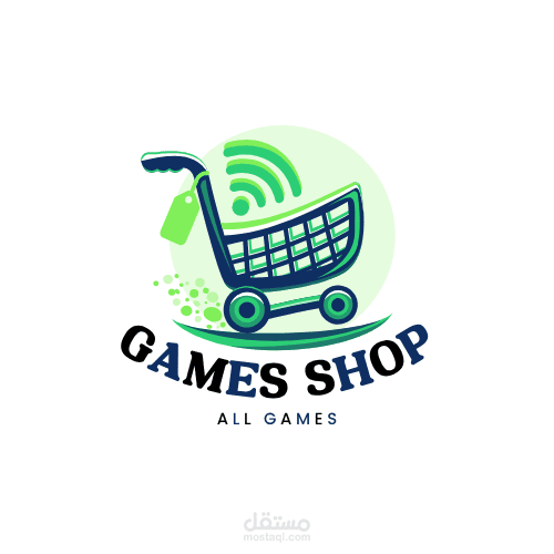 شعار باللون الاخضر و الزرق و الاسود لبيع الالعاب و خدماتها اونلاين
