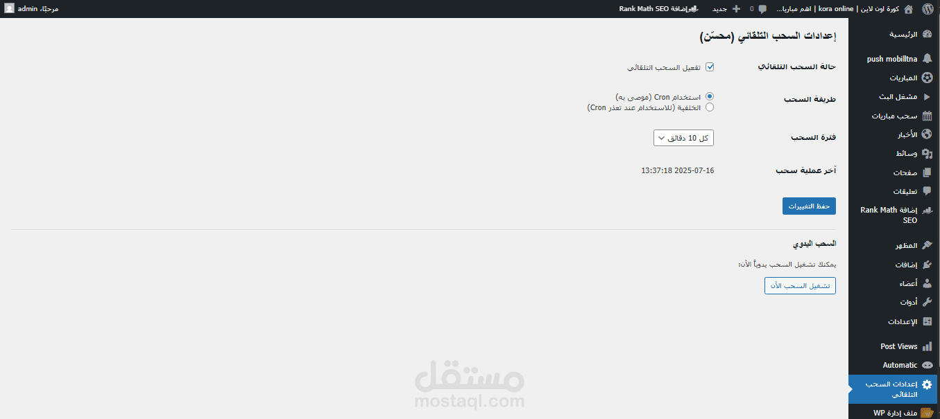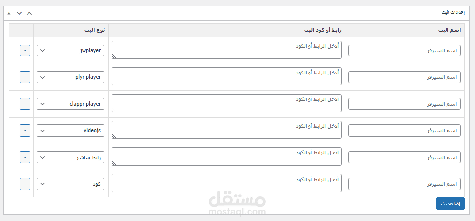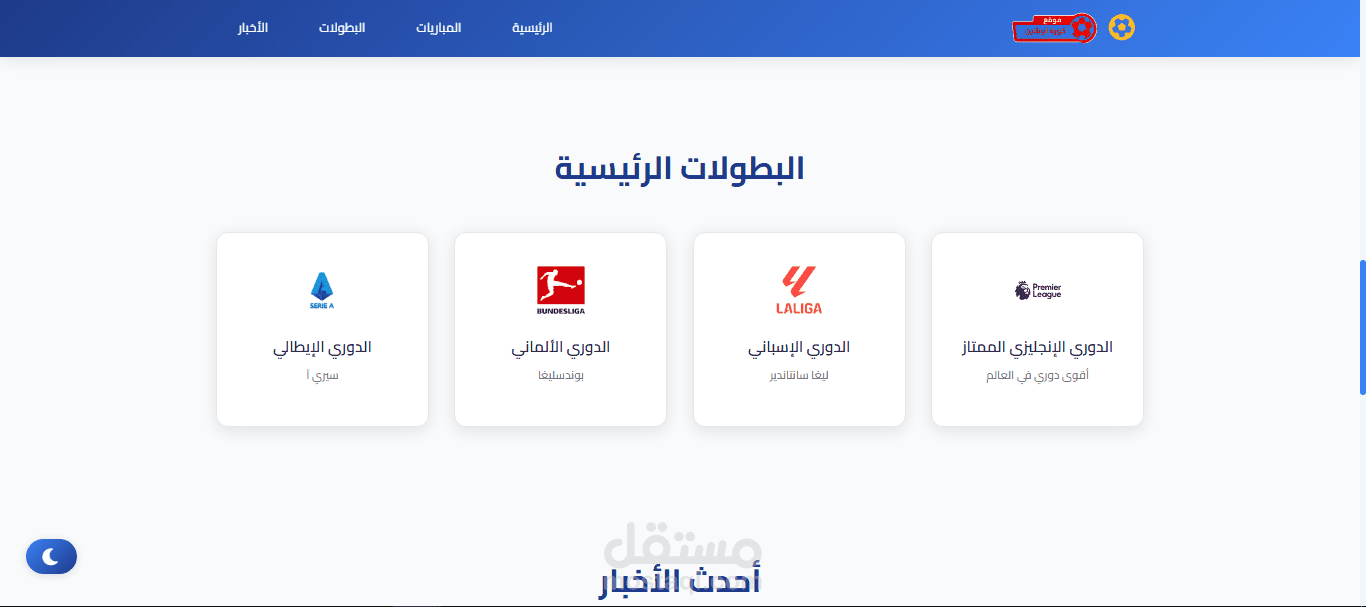 دعم روابط البث المباشر بجودات مختلفة داخل صفحة المباراة.
