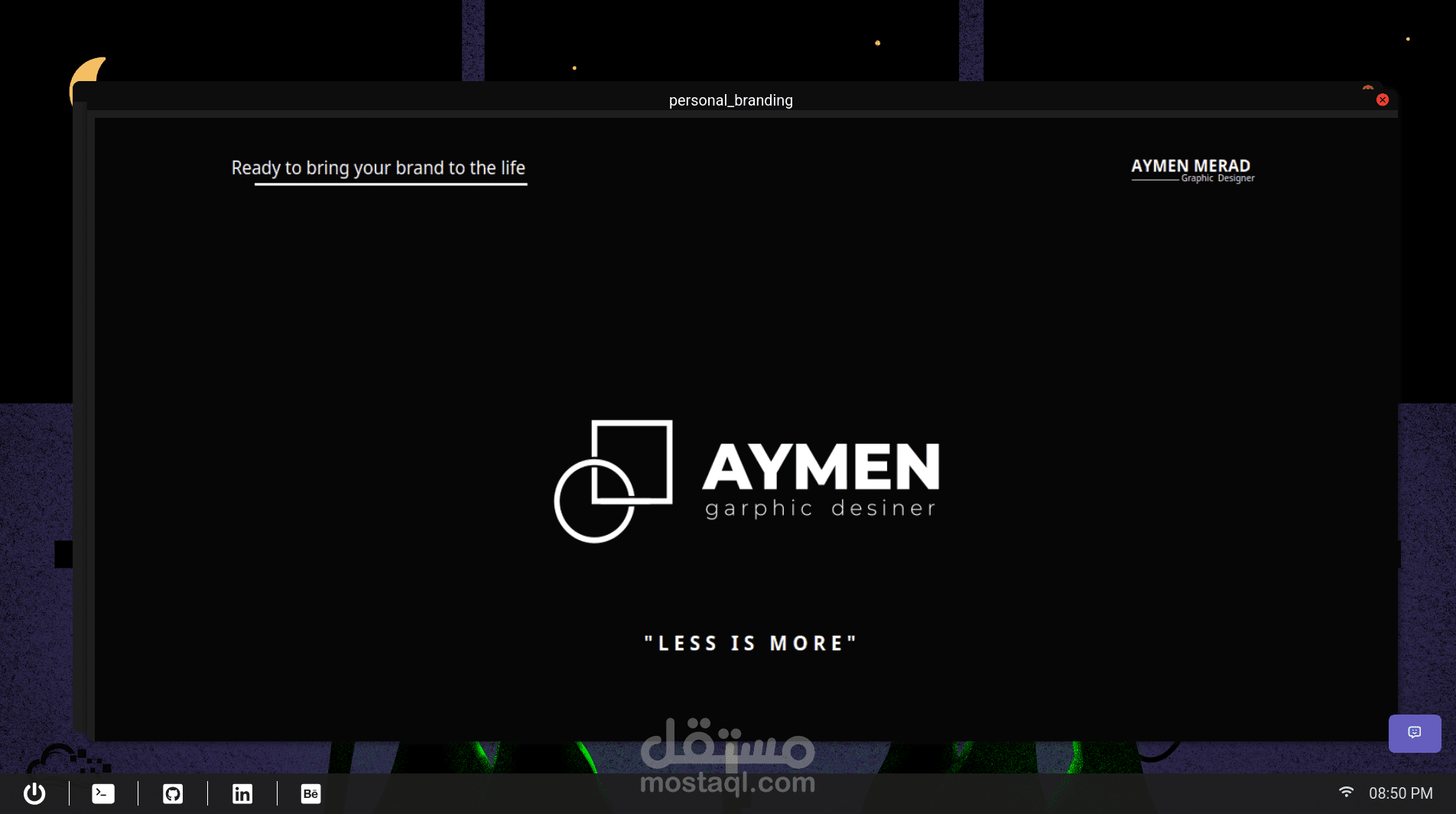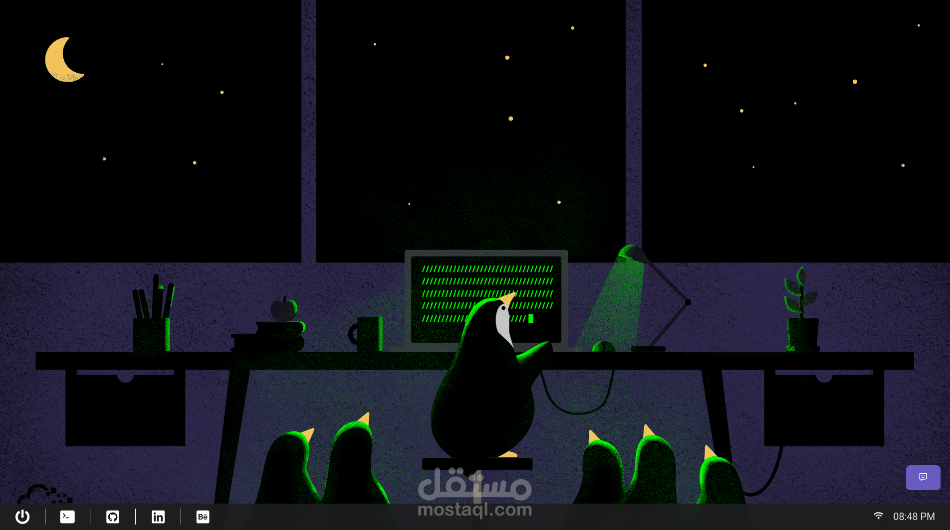 . Launch bar with links (GitHub, LinkedIn, etc.)