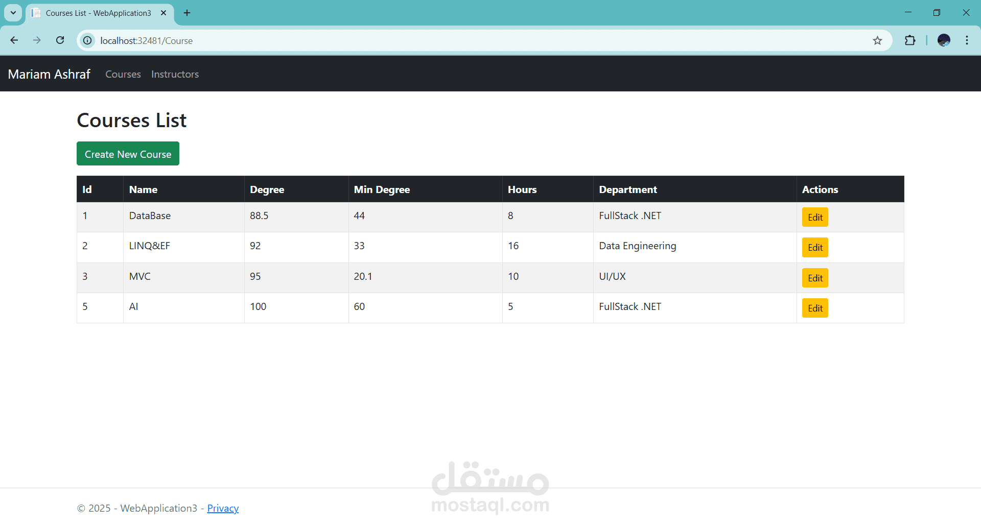 نظام احترافي لإدارة منصة تعليمية شبيه بمنصات التدريب المعروفة مثل ITI، مبني باستخدام ASP.NET Core MVC باتباع Database First Approach. يتيح النظام إدارة جميع الكيانات الرئيسية للمنصة بشكل كامل عبر واجهة مستخدم سهلة وبسيطة.