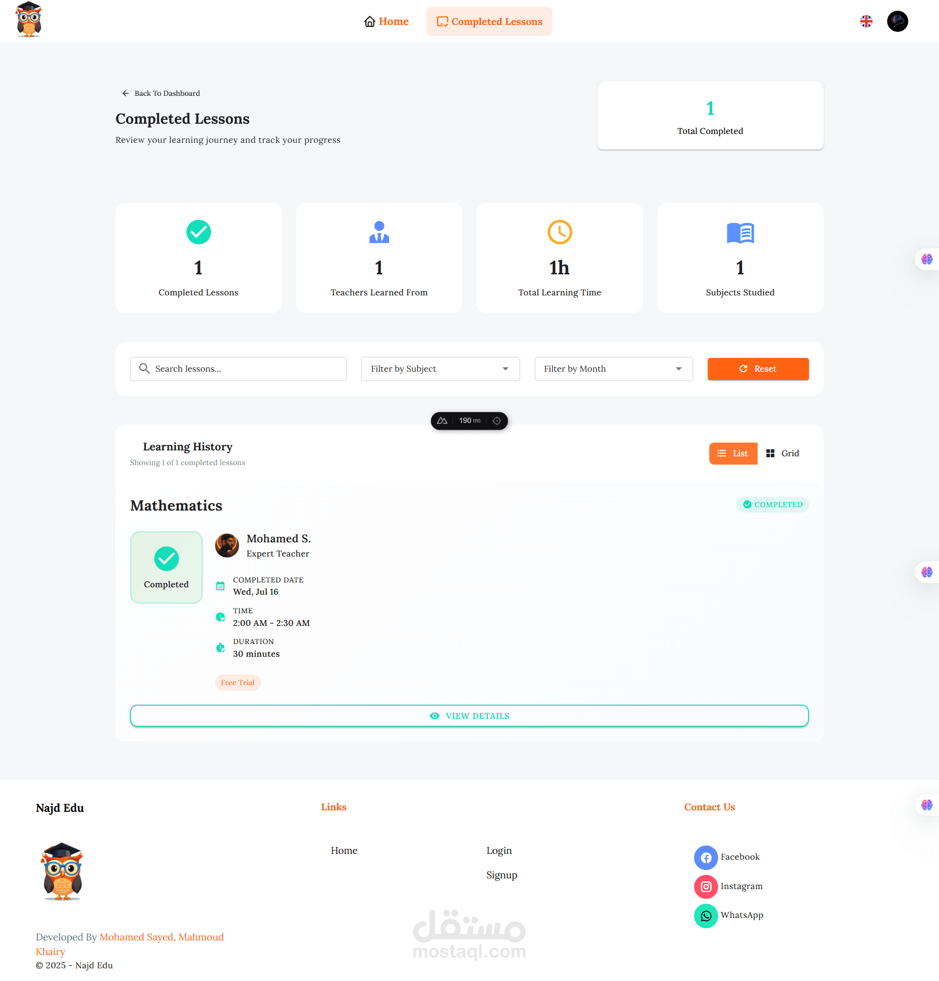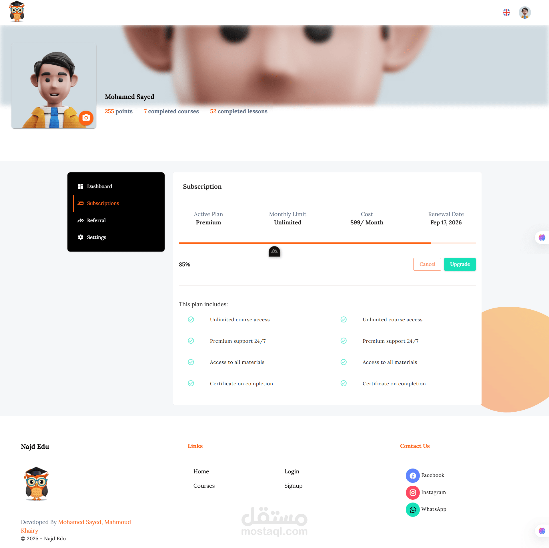 - معلومات كاملة عن التقدم وعدد الدروس ومتابعة الاشتراك