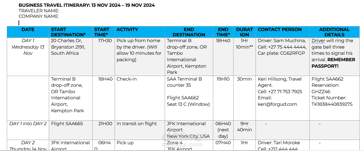 • حجوزات سفر أو طيران أو اجتماعات (إذا توفرت التفاصيل).