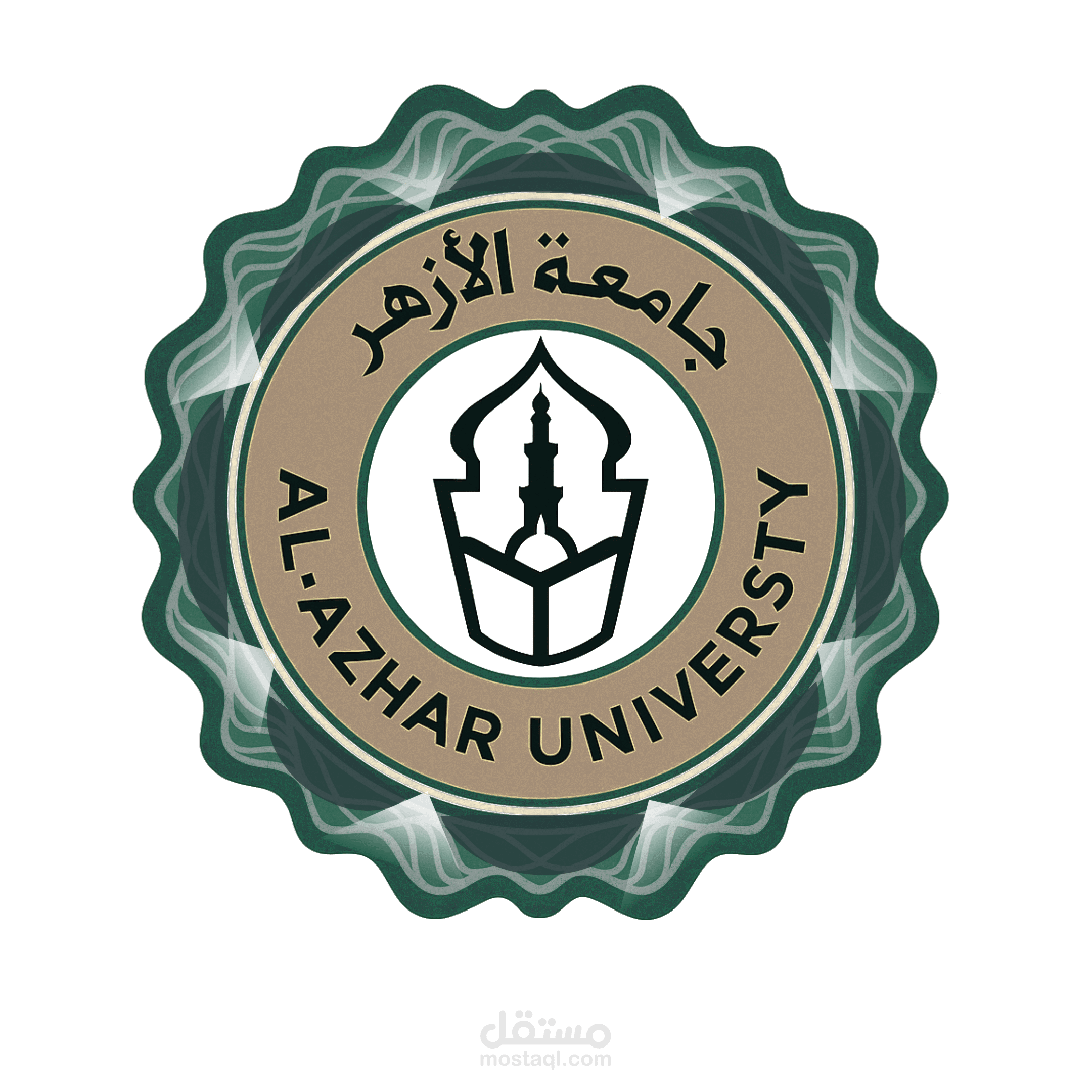 شعار جامعة الأزهر هو رمزٌ يعكس تاريخ وجوهر هذه المؤسسة العريقة التي تعد من أقدم الجامعات الإسلامية في العالم. يشتمل الشعار على صورة مسجد يرتفع فوق كتاب مفتوح، وهو ما يرمز إلى الجمع بين العلم والدين في التعليم الجامعي. يحيط بالشعار دائرة مزخرفة بالألوان الخضراء والذهبية، التي تشير إلى الهوية الإسلامية والعراقة. كما يتوسطه اسم الجامعة باللغة العربية "جامعة الأزهر" وبالإنجليزية "Al-Azhar University"، مما يعكس تنوع المؤسسة وانتشارها عالميًا.