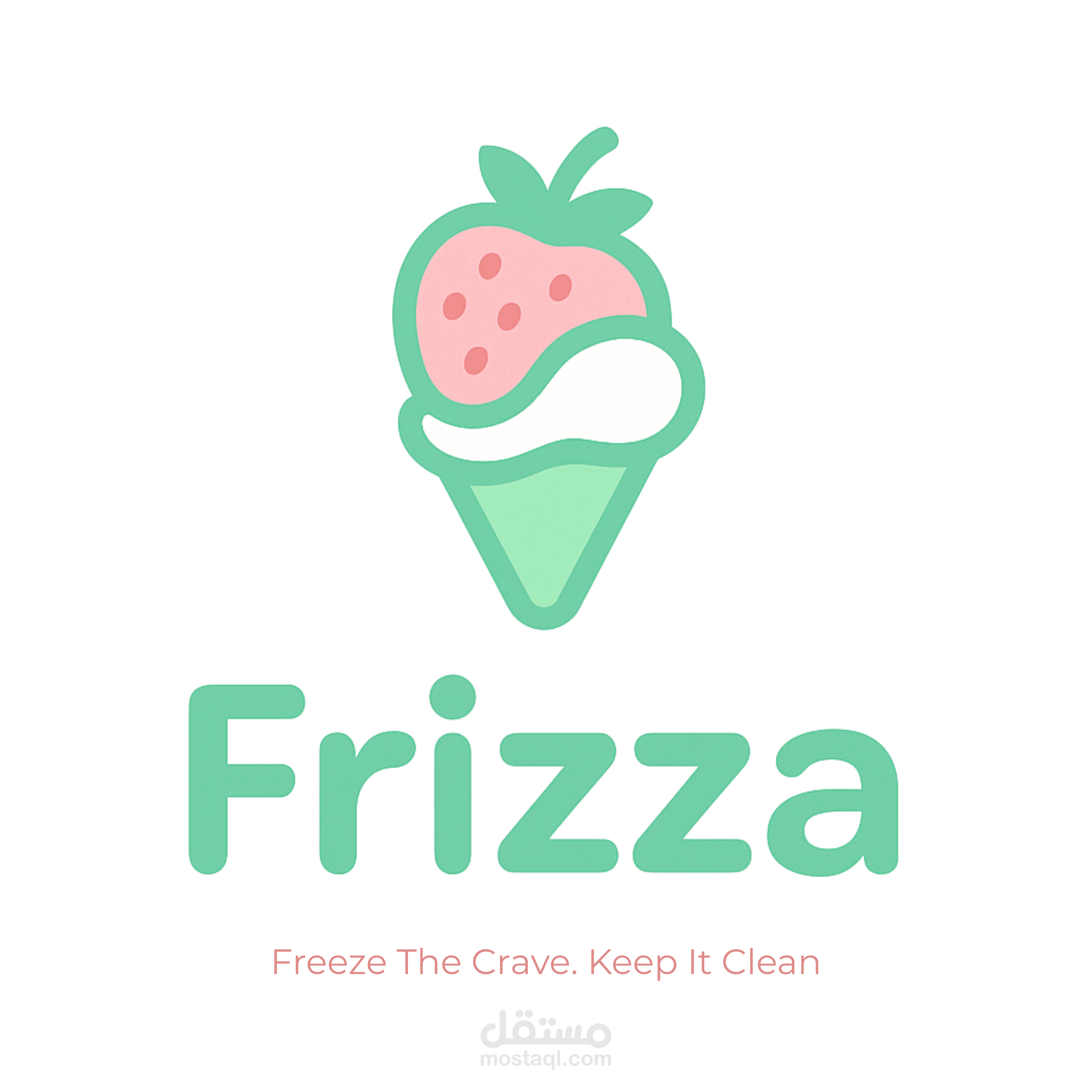 تم تصميم شعار Frizza ليعكس الطاقة والحيوية المرتبطة بأسلوب الحياة الرياضي، مع الحفاظ على لمسة ممتعة ومنعشة تناسب براند آيس كريم صحي. يدمج التصميم بين عناصر بصرية مستوحاة من الحركة والطاقة مع لمسات ناعمة تعكس انتعاش المنتج وجودته الصحية.