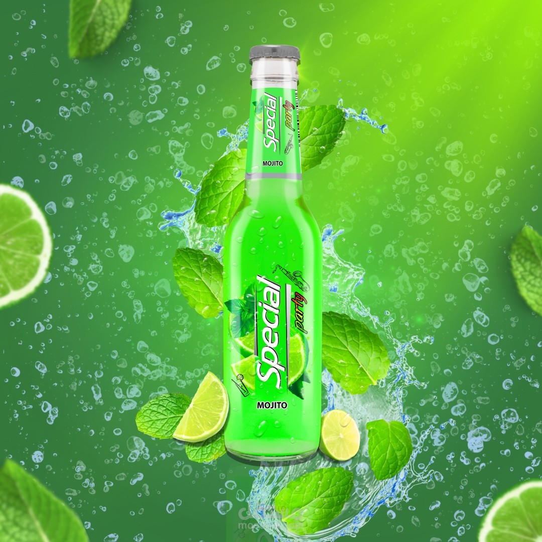 في هذا المشروع، قمت بتصميم إعلان إبداعي لمشروب Special Mojito Party ليكون جذابًا وملفتًا للمشاهدين على وسائل التواصل الاجتماعي. حرصت على جعل الزجاجة محور الصورة الرئيسي دون تغييرها، مع إبراز لون المشروب الأخضر المميز ليعكس إحساس الانتعاش والحيوية.