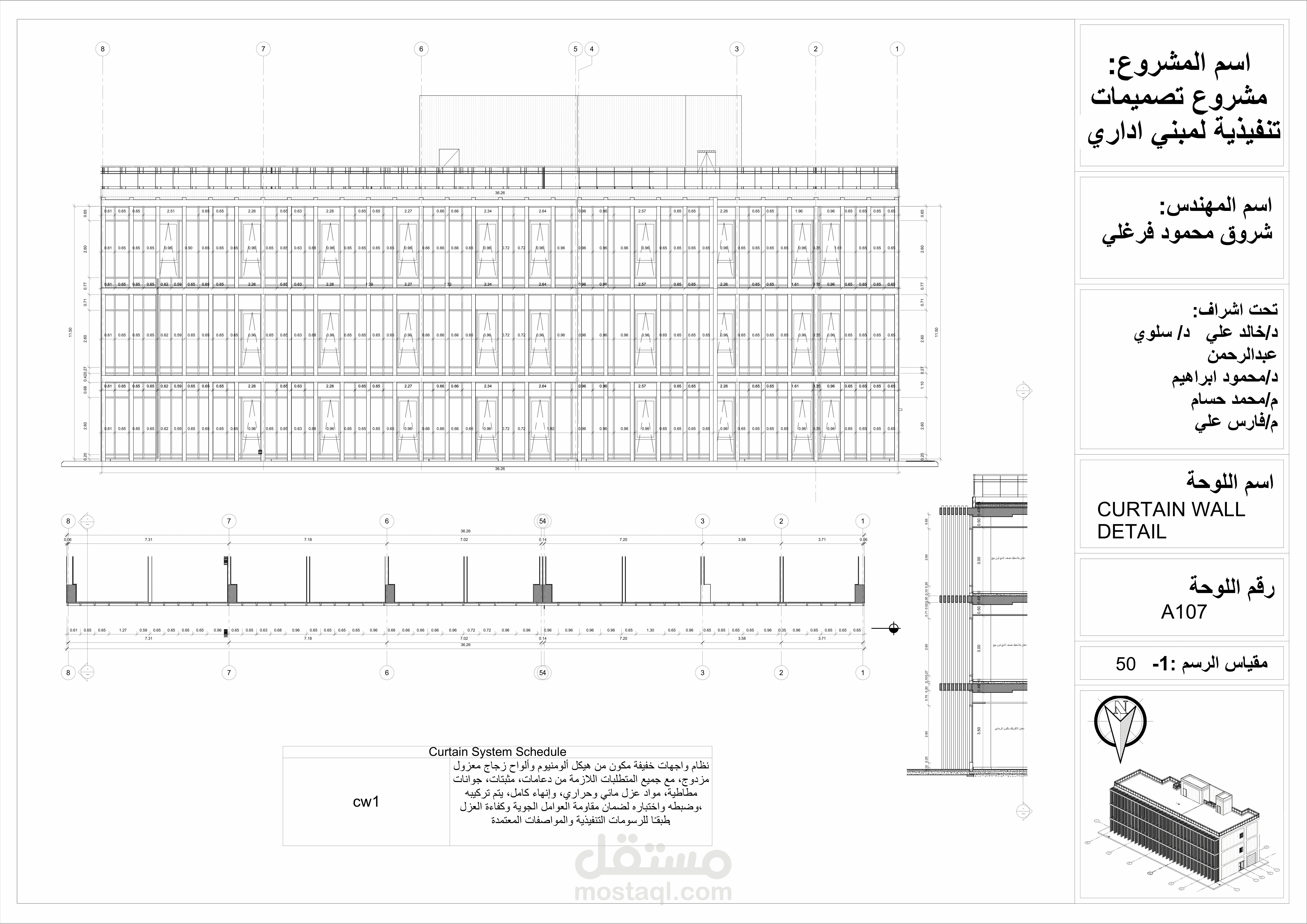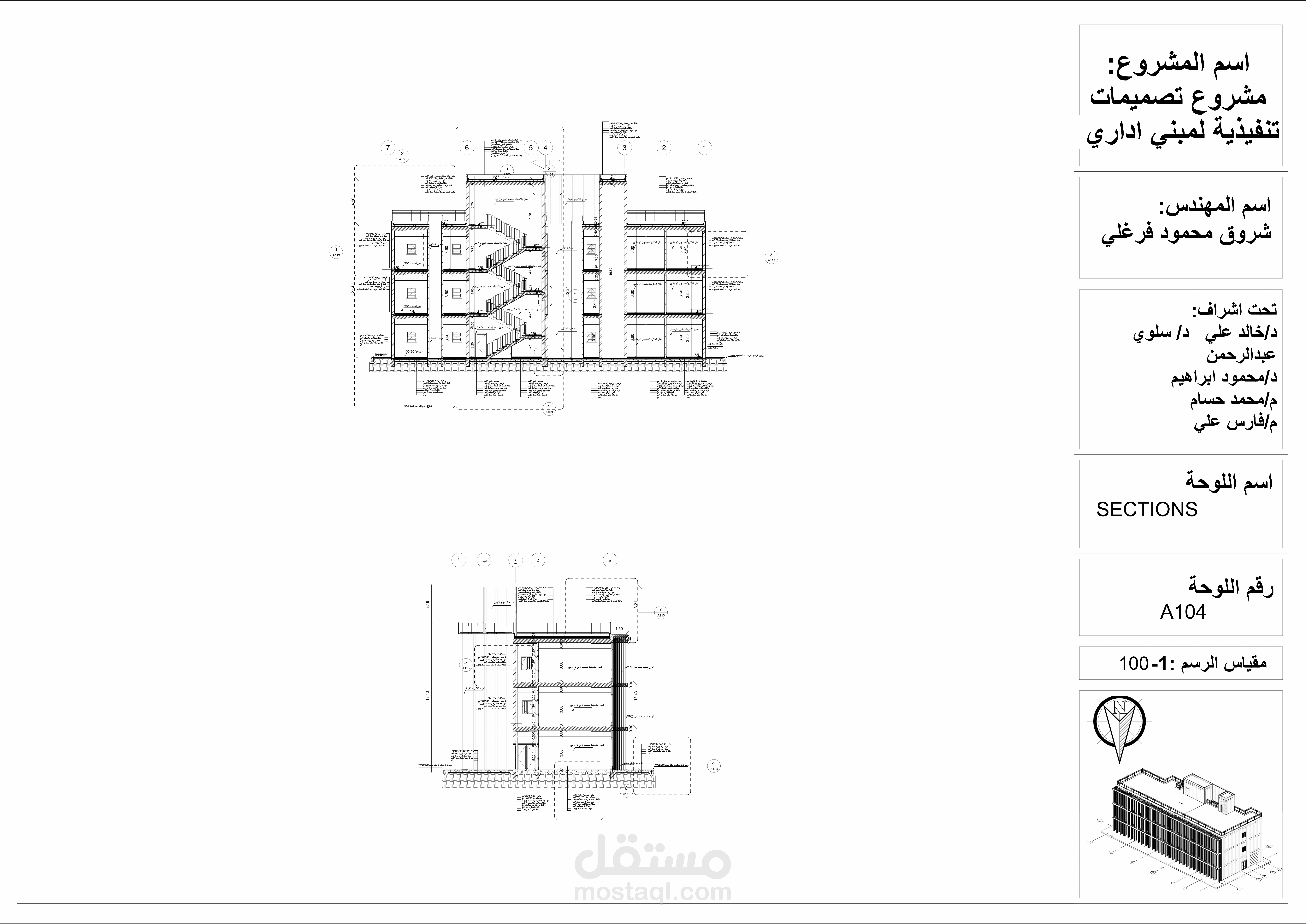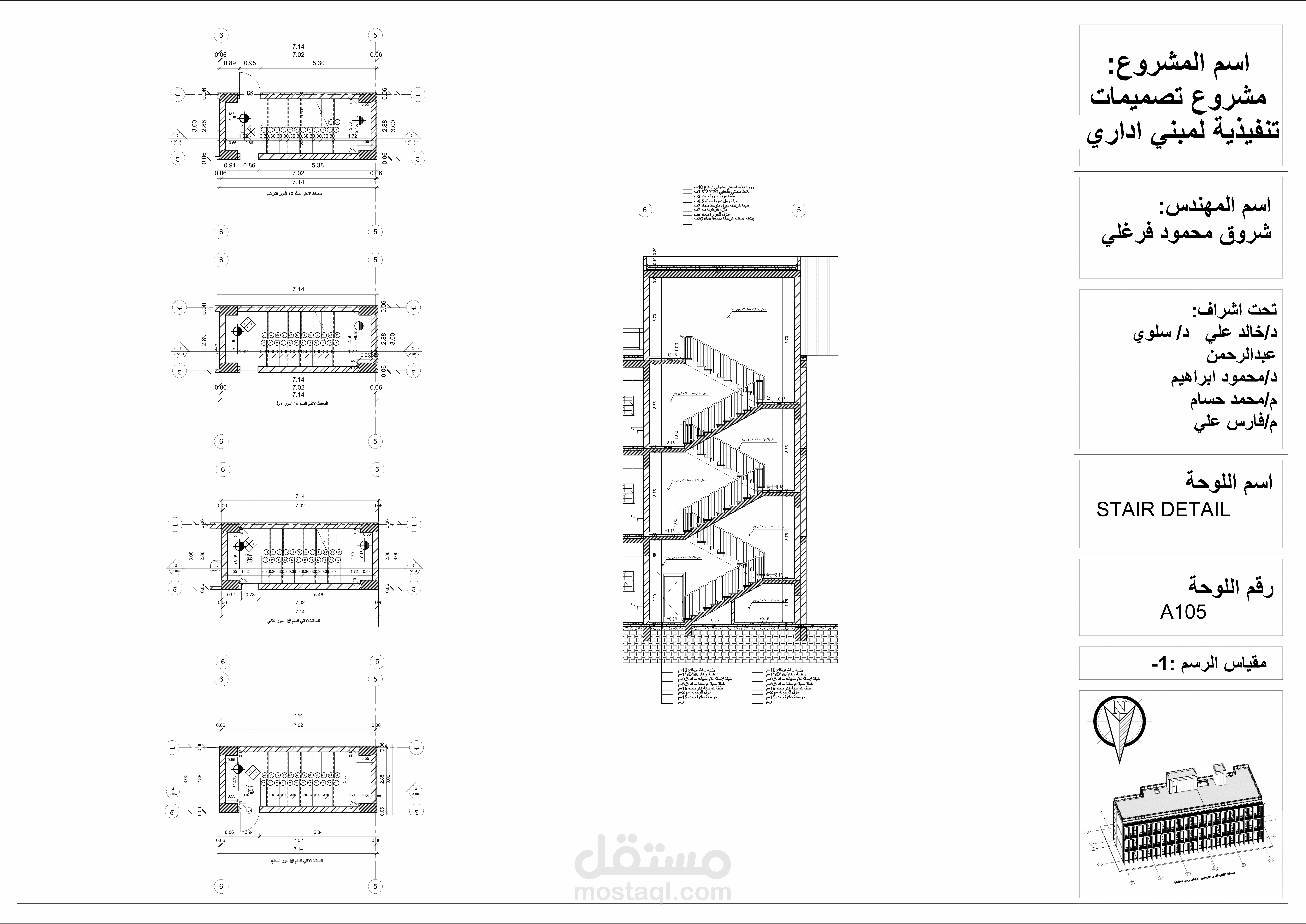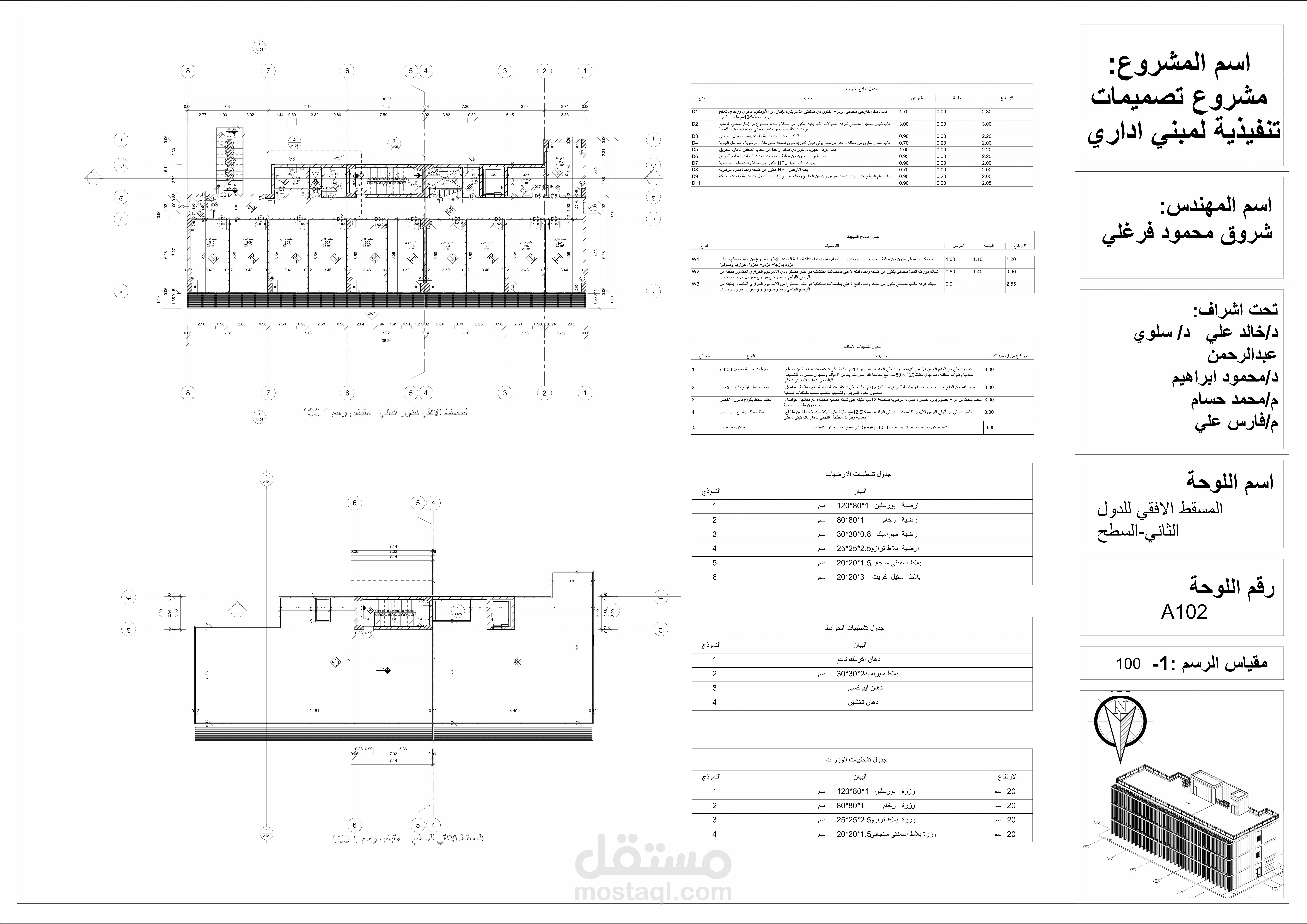This working drawings package represents the detailed design documentation for an administrative building developed in alignment with both functional and technical standards. The project prioritizes the integration of core building systems including the HVAC (Heating, Ventilation, and Air Conditioning), fire safety systems, and a carefully studied structural system based on the Flat Slab technique.