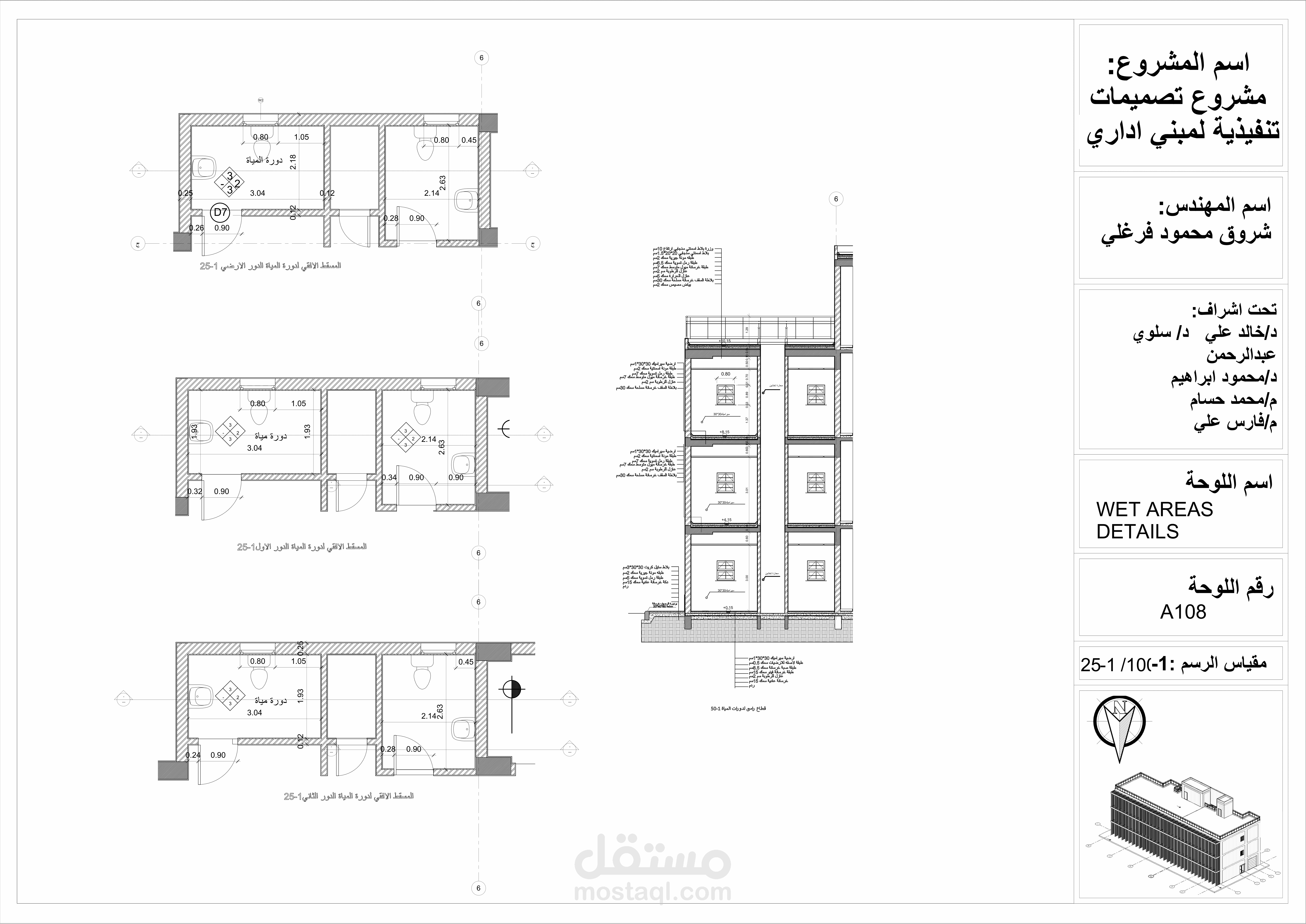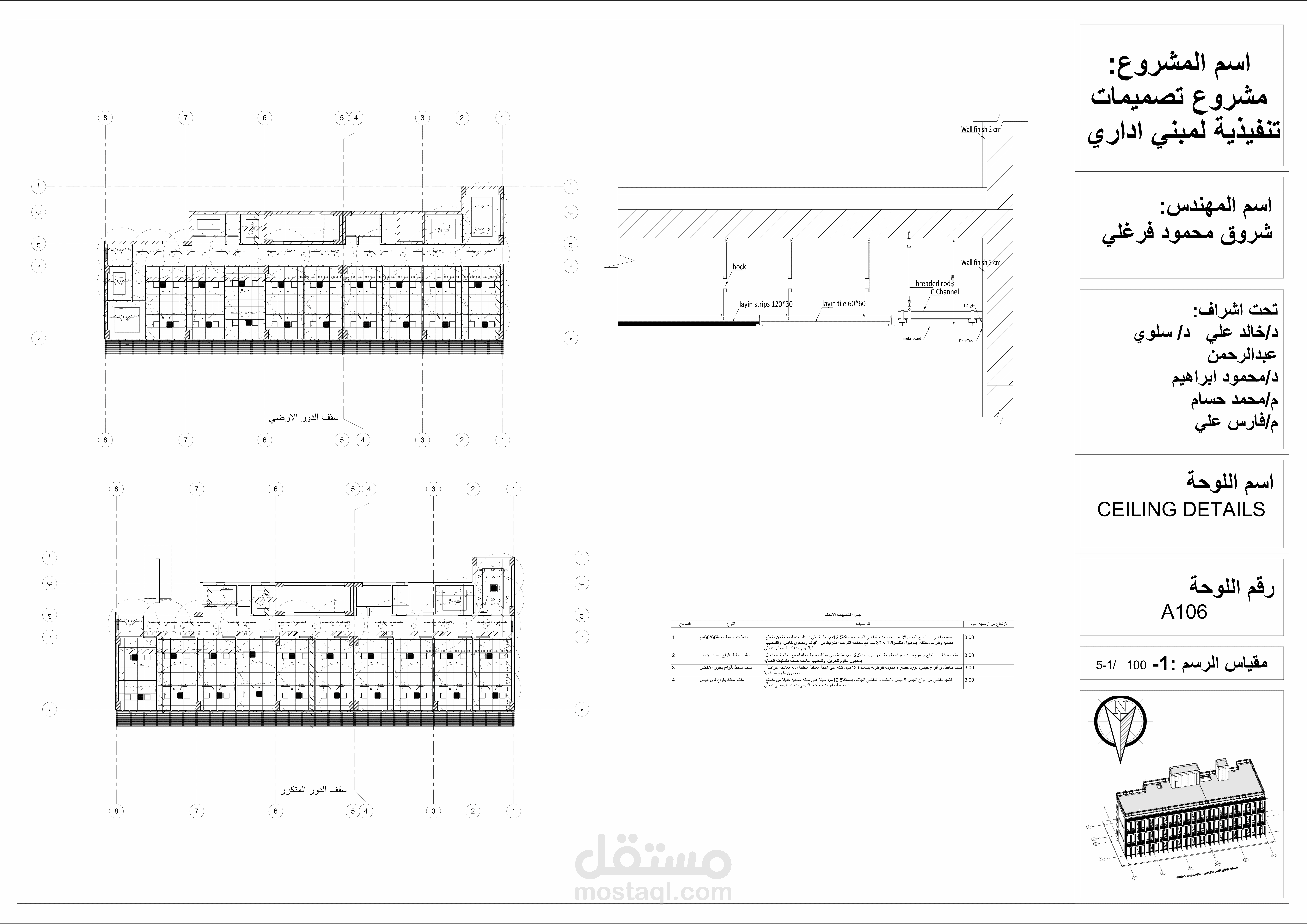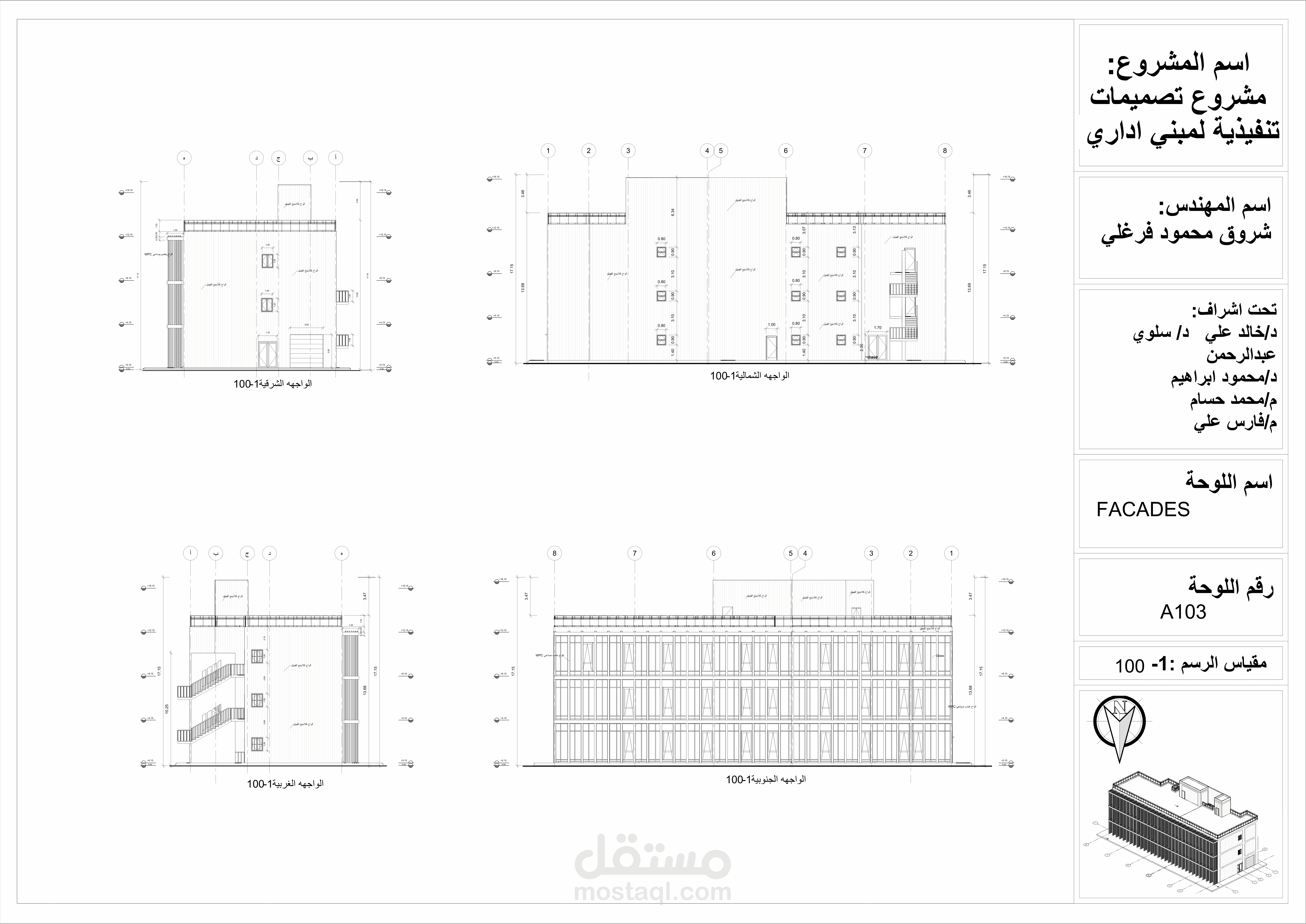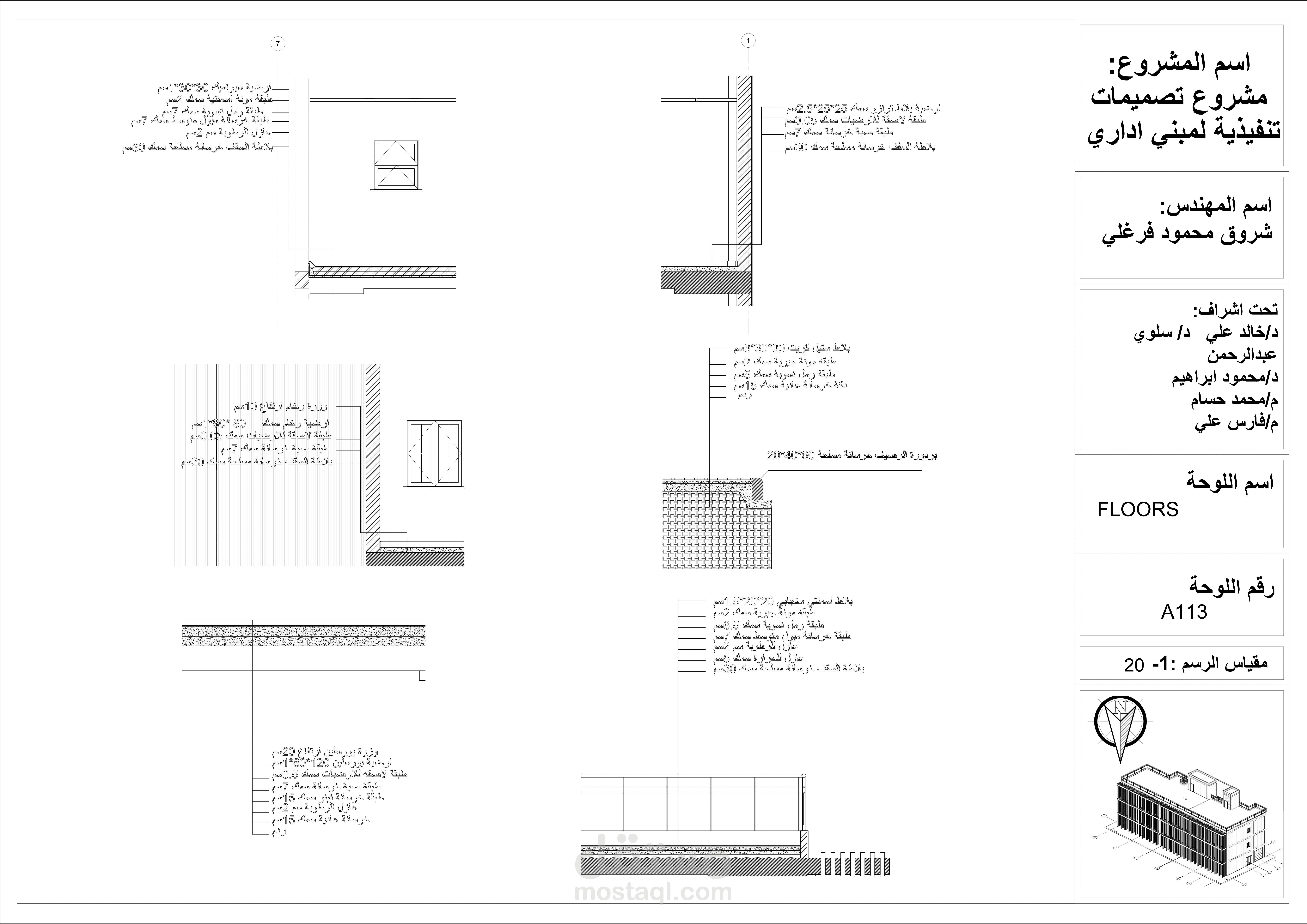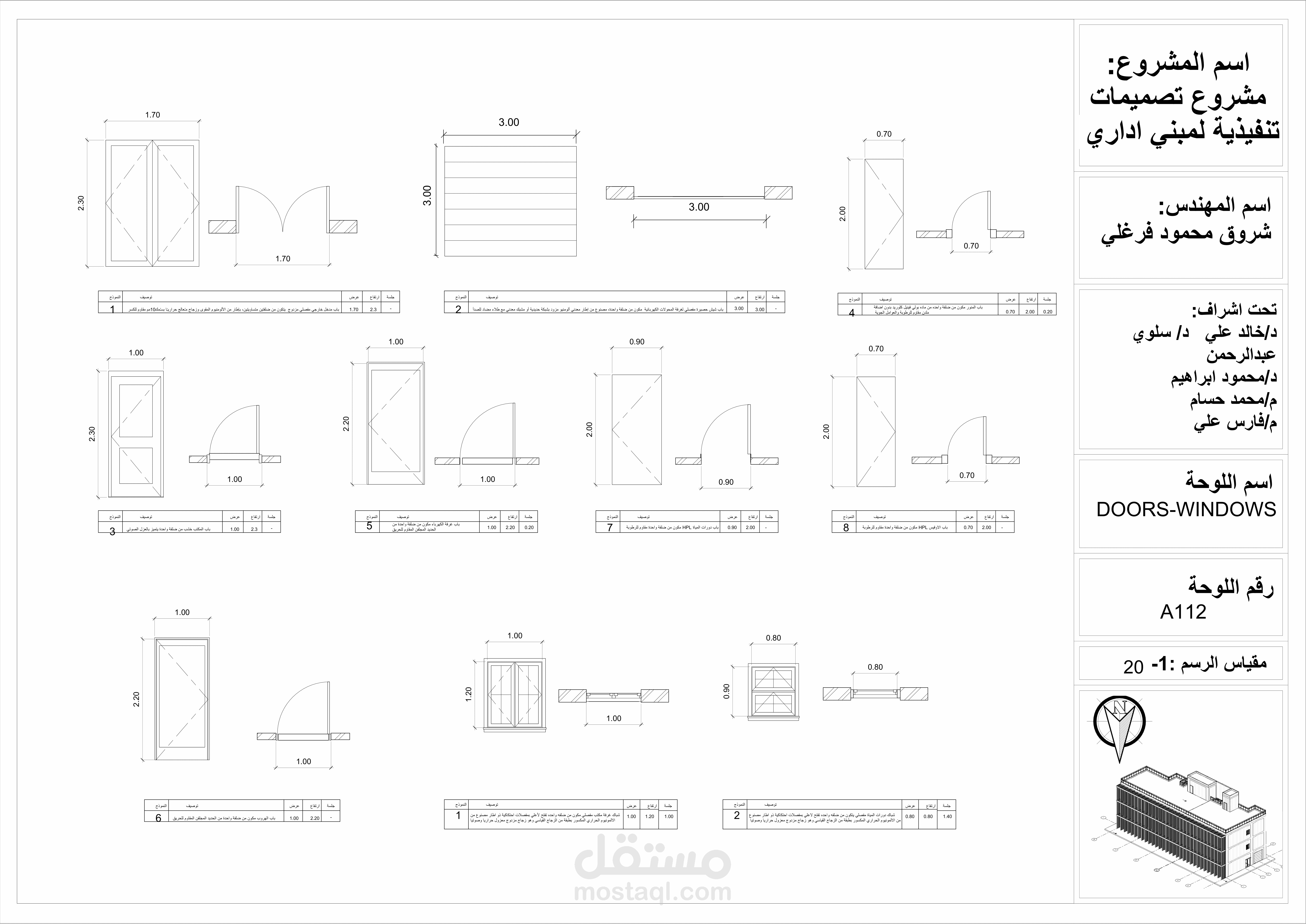 This working drawings package represents the detailed design documentation for an administrative building developed in alignment with both functional and technical standards. The project prioritizes the integration of core building systems including the HVAC (Heating, Ventilation, and Air Conditioning), fire safety systems, and a carefully studied structural system based on the Flat Slab technique.