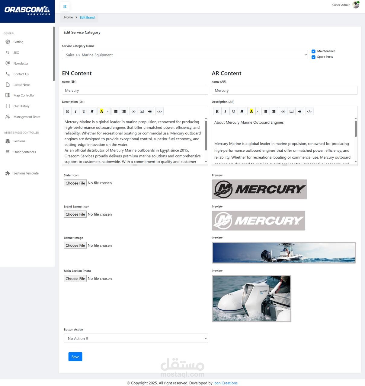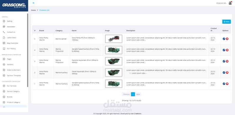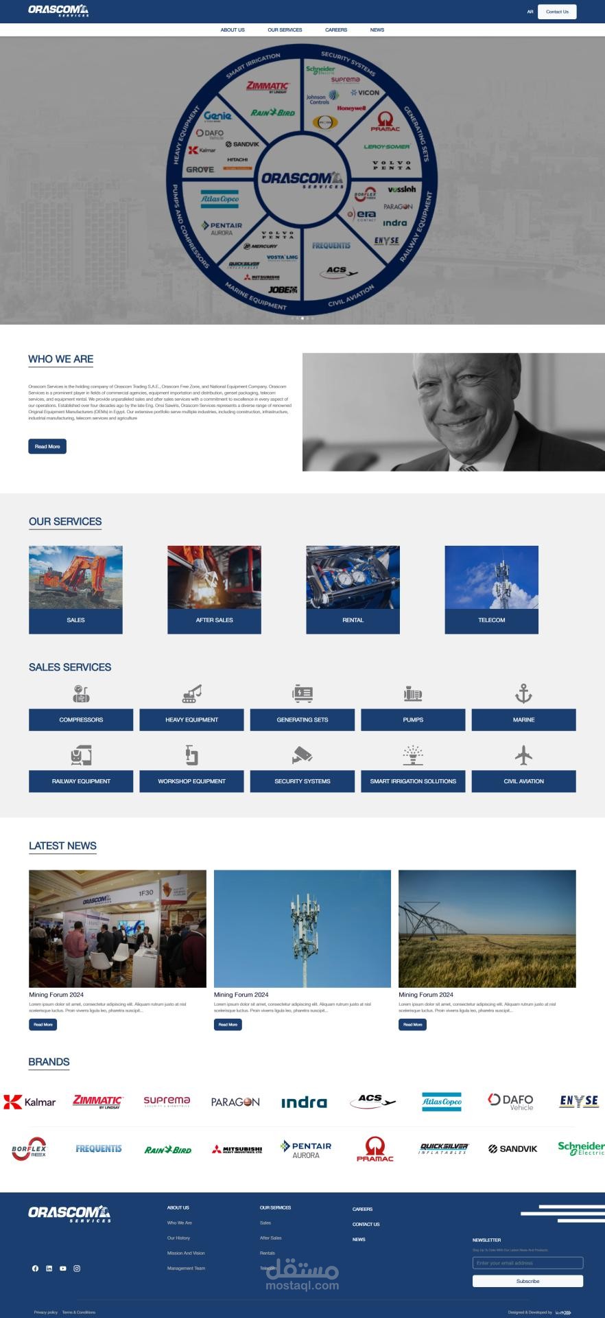 • تطوير لوحة تحكم ديناميكية لإدارة محتوى الموقع، ونماذج التواصل، ونماذج التوظيف، والتحكم في المنتجات والخدمات.