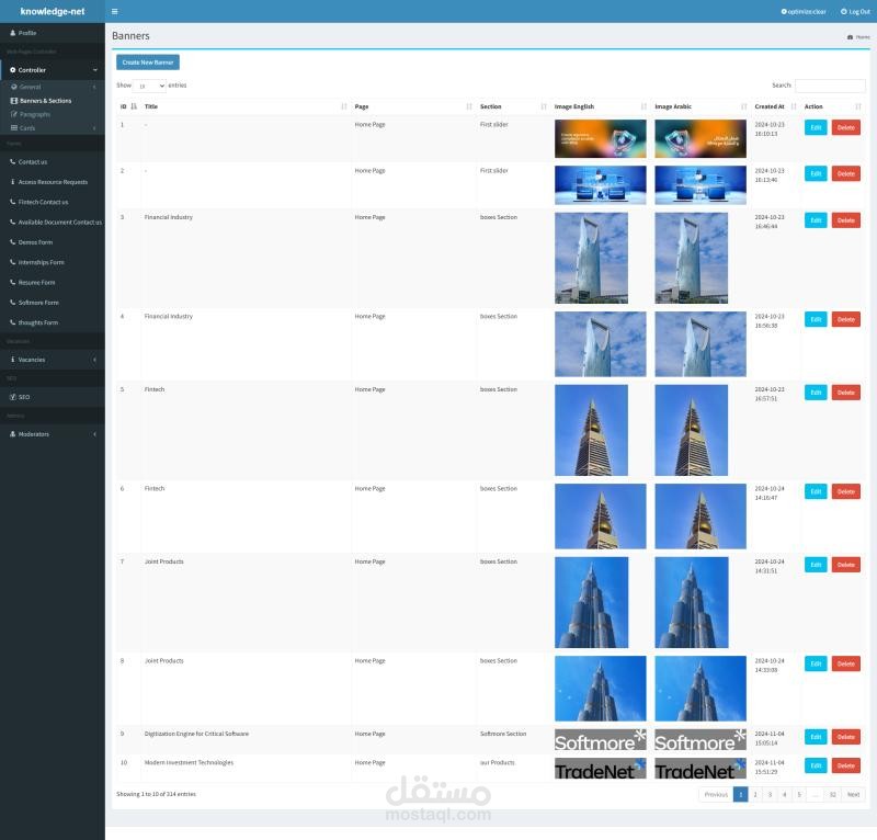 • إنشاء لوحة تحكم ديناميكية لإدارة المحتوى والتحكم في النماذج لموقع "Knowledge Net".