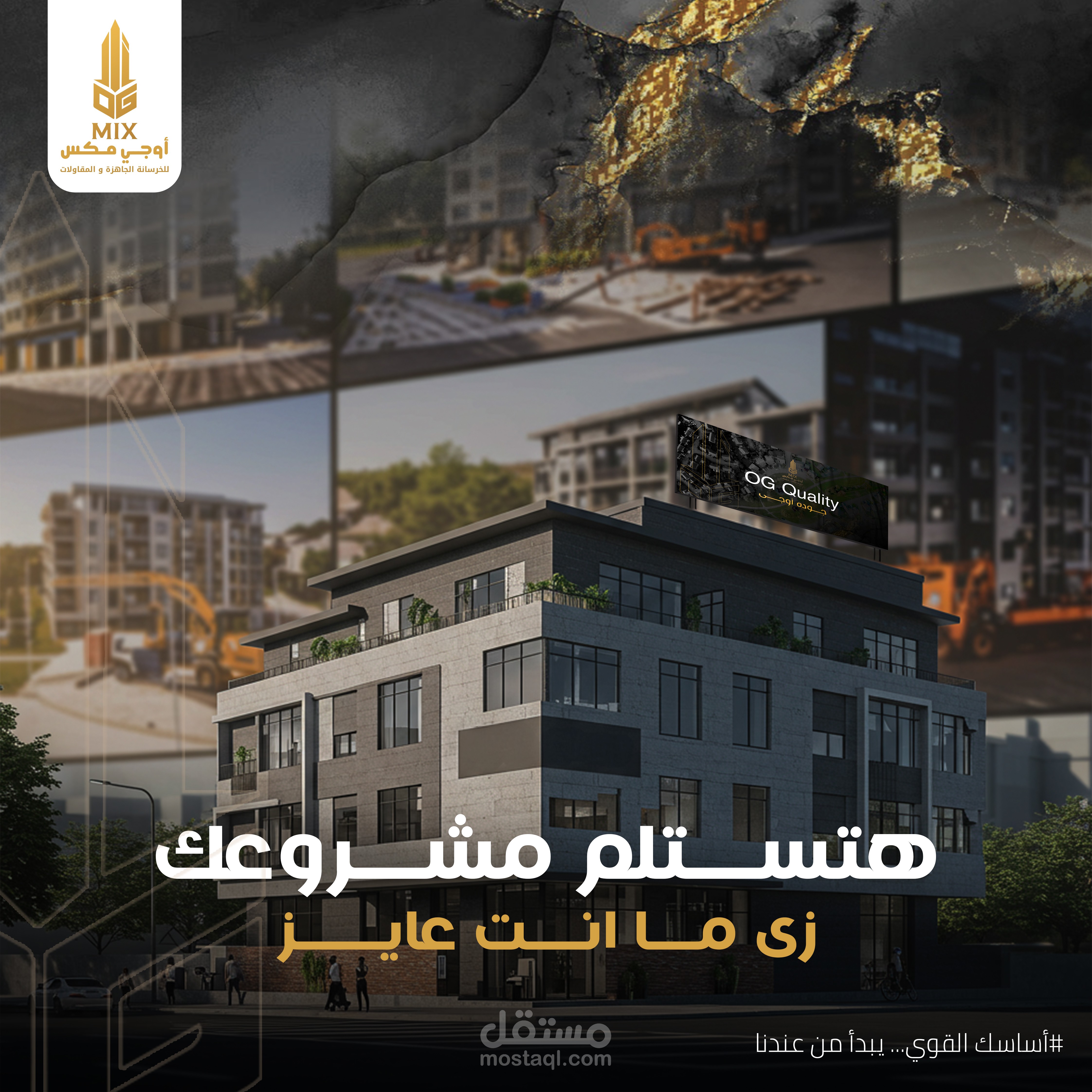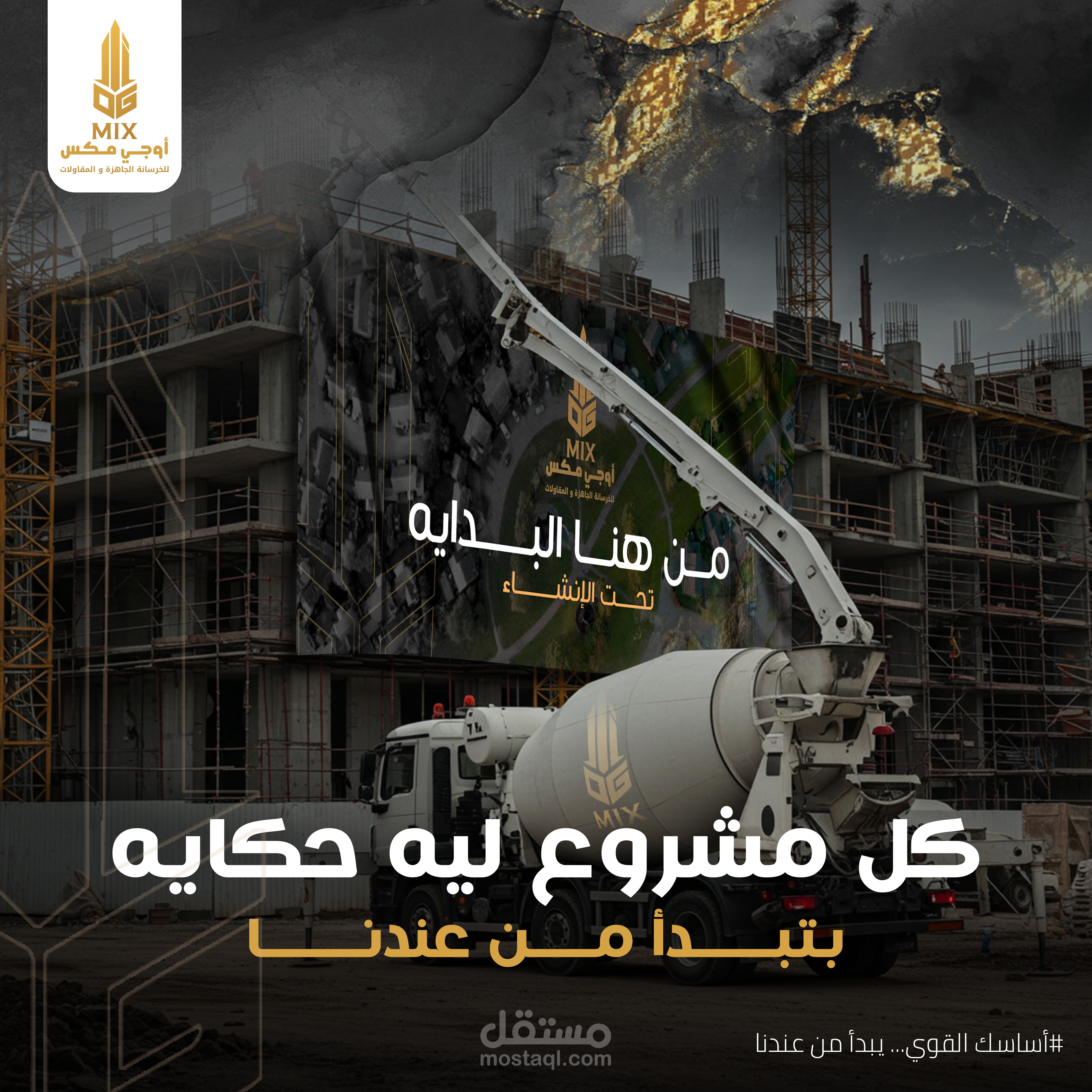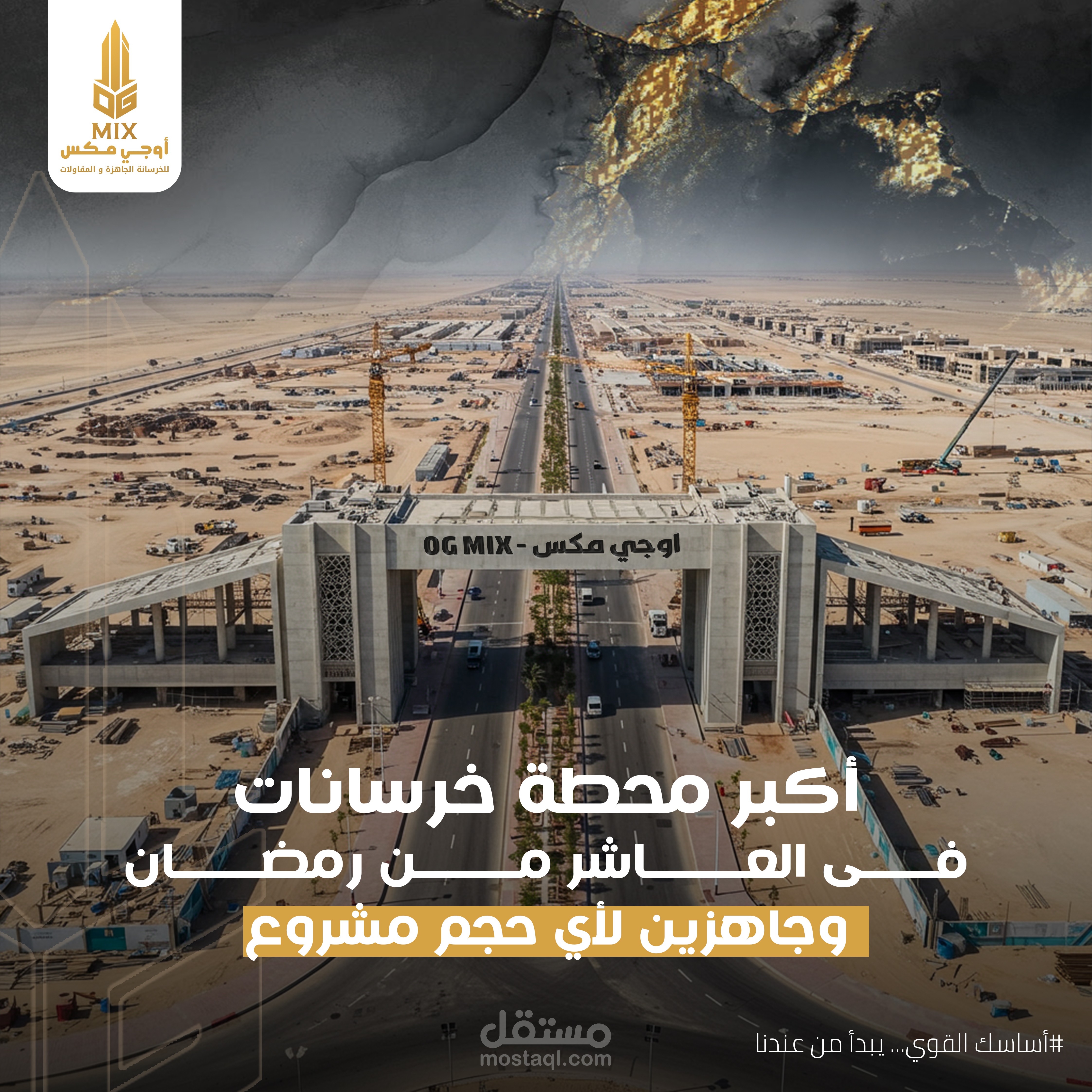 تم تنفيذ هذا التصميم الخاص بالسوشيال ميديا لصالح OG MIX، وهي علامة تجارية فاخرة متخصصة في الخرسانة الجاهزة. كان الهدف من التصميم هو إبراز القوة الصناعية والفخامة في آنٍ واحد، من خلال دمج عناصر بصرية مستوحاة من بيئة البناء بالخرسانة.