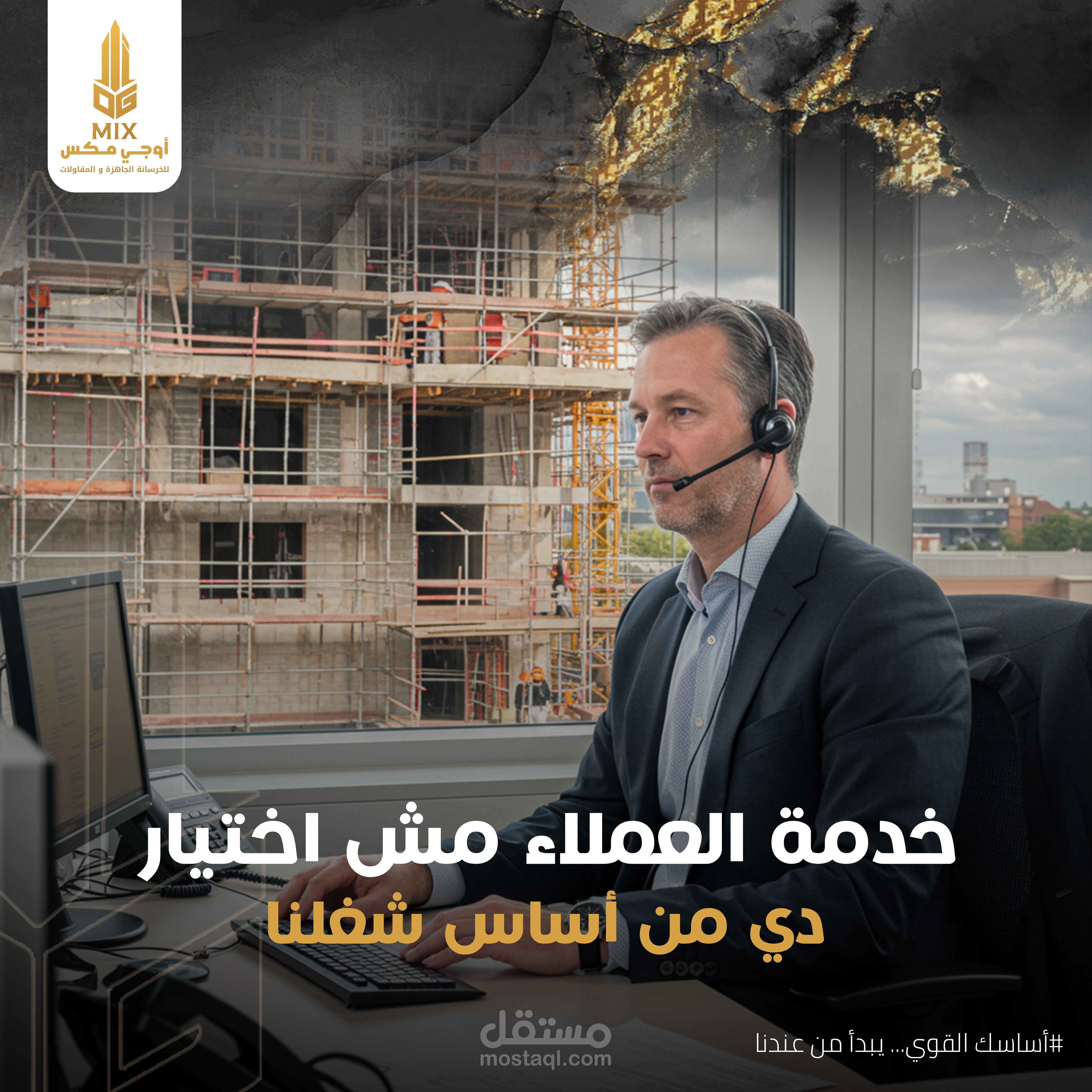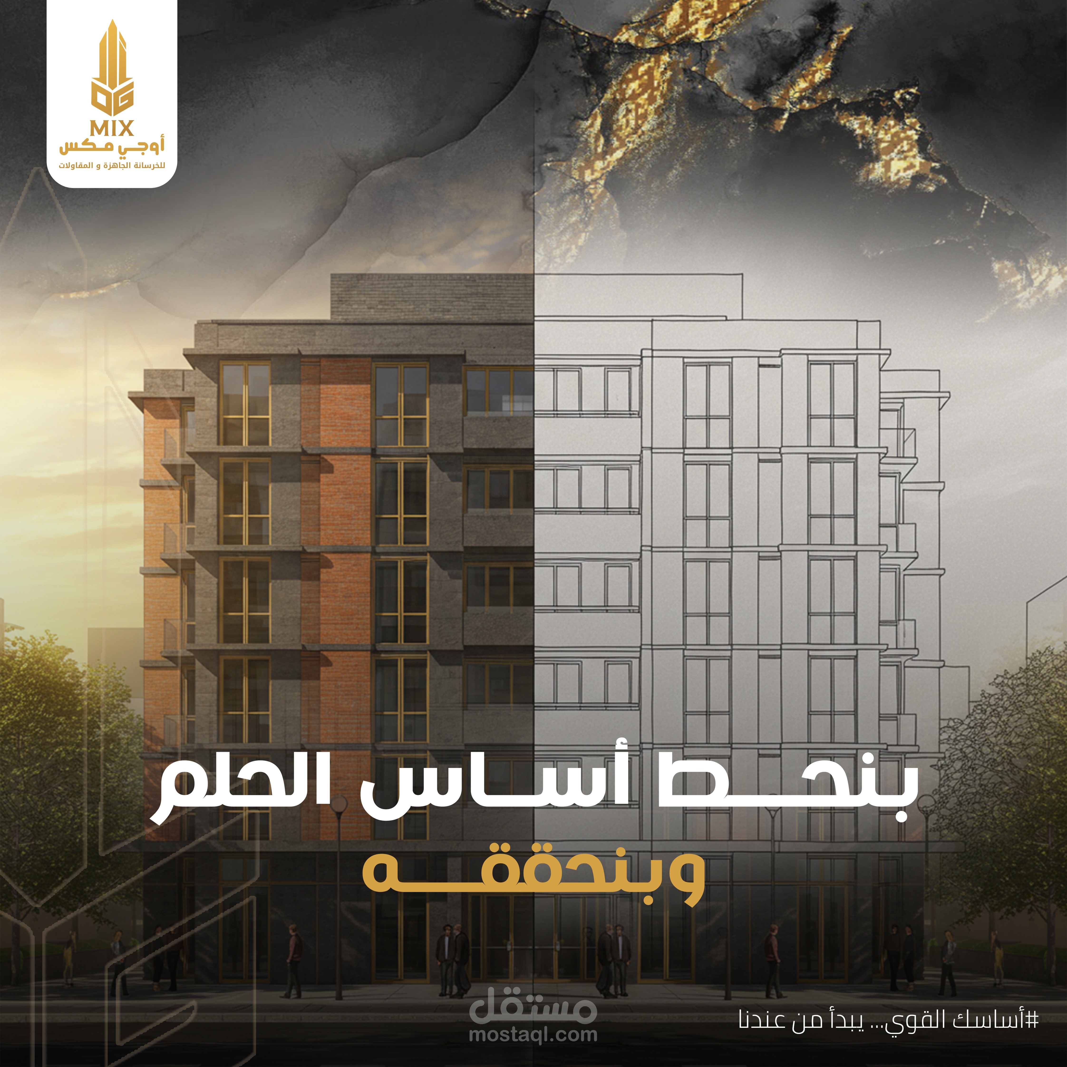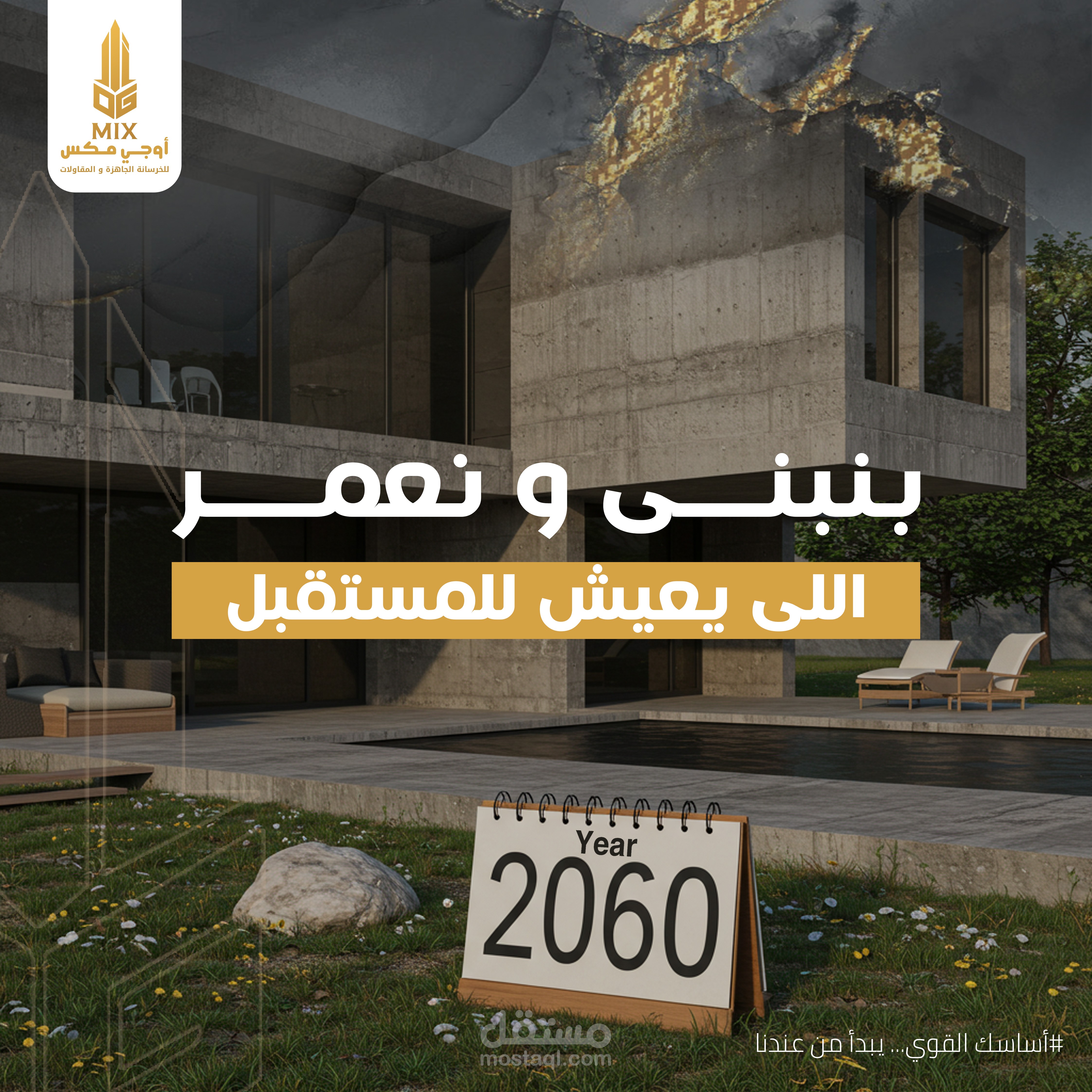تم تنفيذ هذا التصميم الخاص بالسوشيال ميديا لصالح OG MIX، وهي علامة تجارية فاخرة متخصصة في الخرسانة الجاهزة. كان الهدف من التصميم هو إبراز القوة الصناعية والفخامة في آنٍ واحد، من خلال دمج عناصر بصرية مستوحاة من بيئة البناء بالخرسانة.