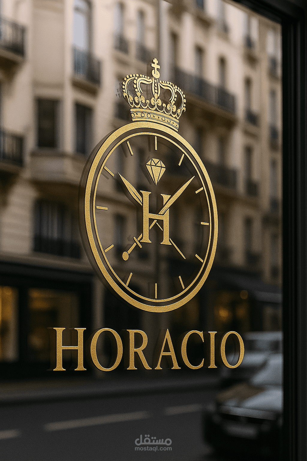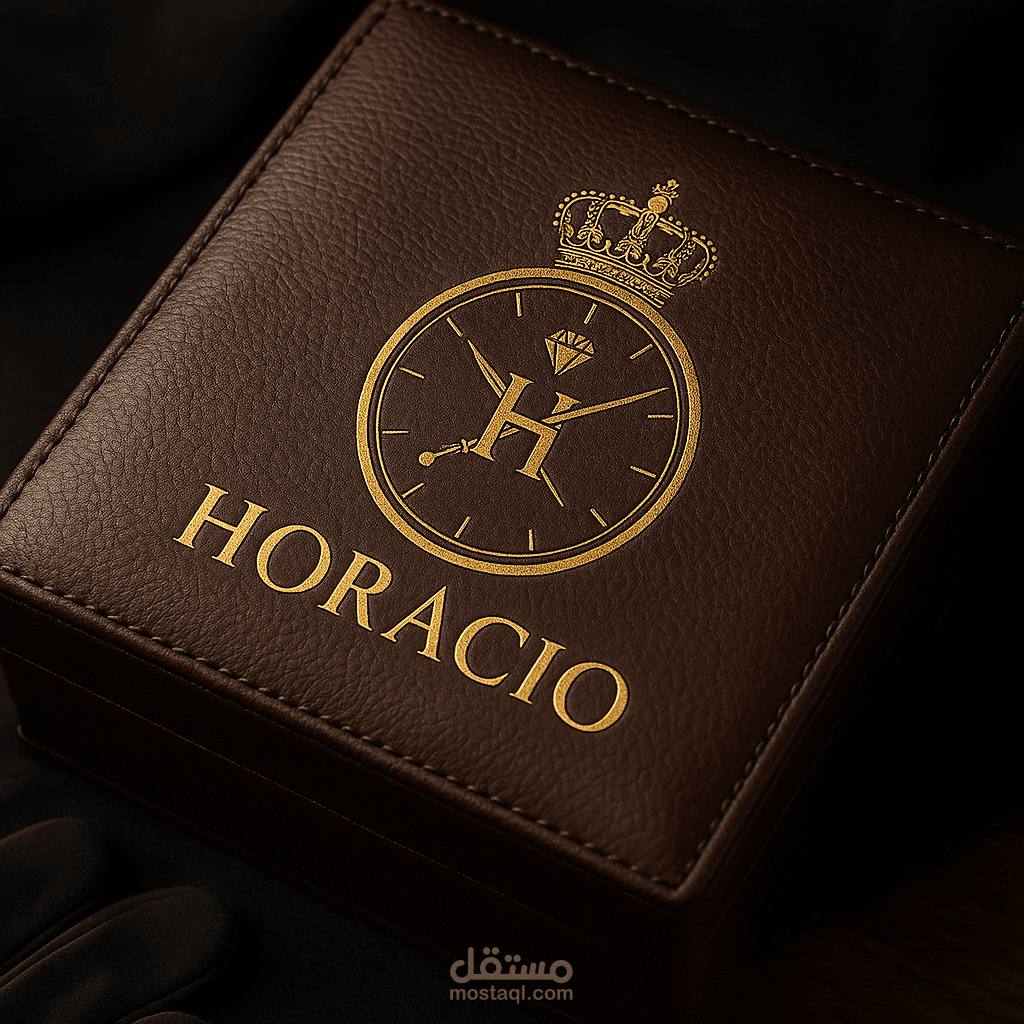 شعار Horacio صُمم ليعكس جوهر الفخامة، الدقة، والهيبة، بما يتماشى مع جمهور العلامة المستهدف من عشاق الساعات الفاخرة ومحبي التفاصيل الراقية.