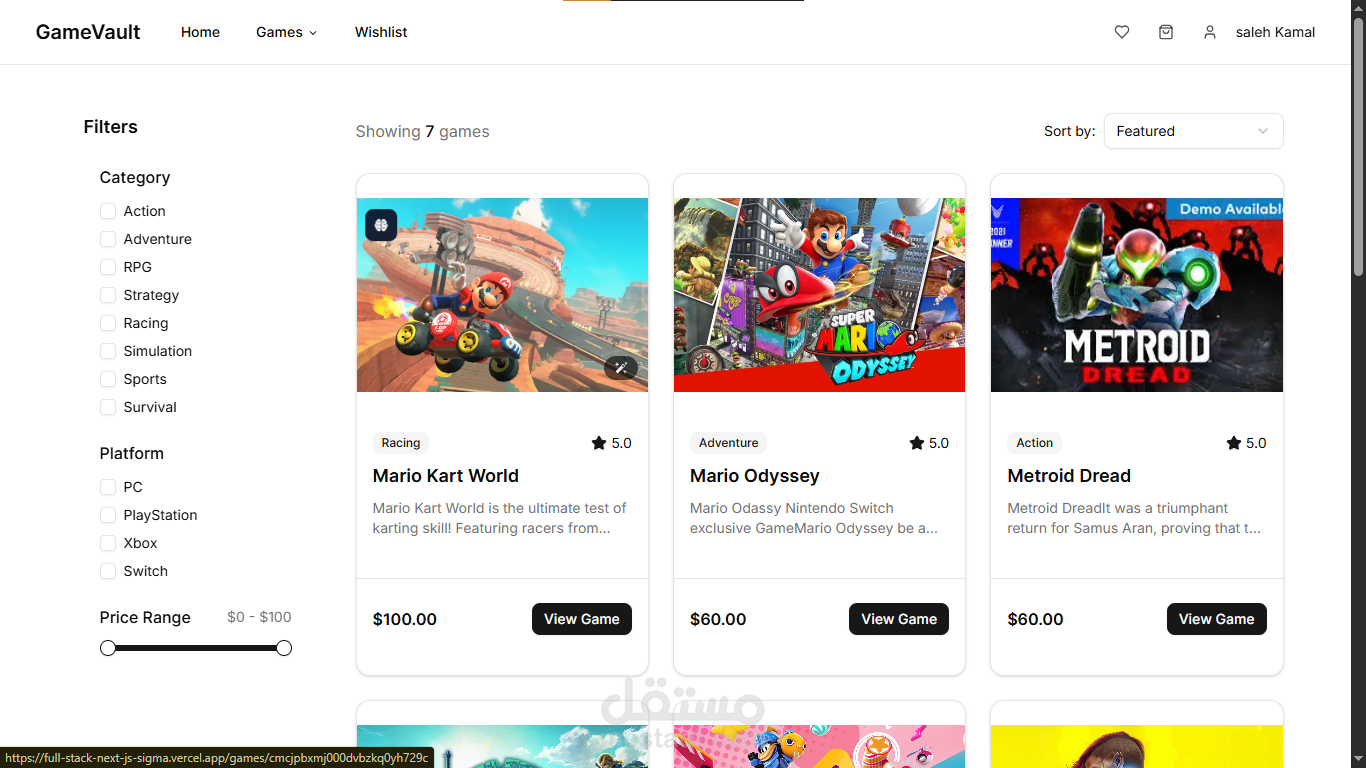 موقع لبيع العاب الكترونية مبني باستخدام Next JS مع لوحة تحكم كاملة لادارة الموقع