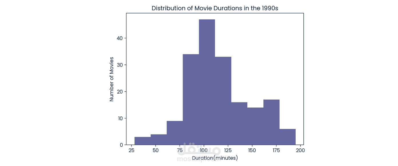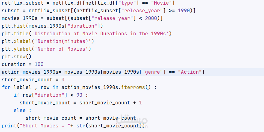 تحليل بيانات منصة Netflix باستخدام python لرؤية مدة الافلام في تسعينيات القرن الماضي.
