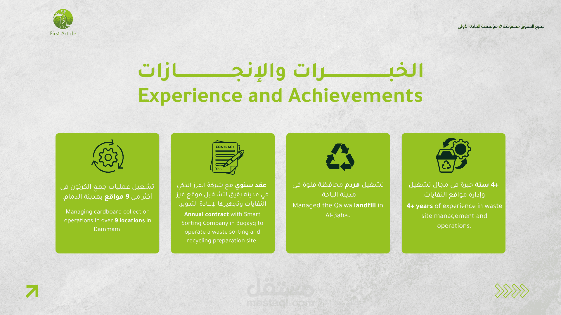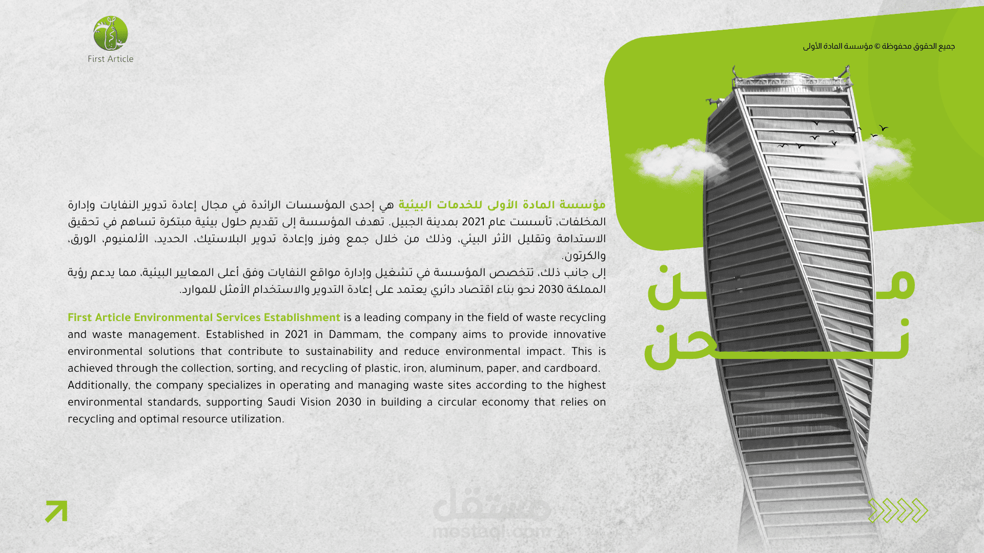 الملف التعريفي لمؤسسة المادة الأولى للخدمات البيئية