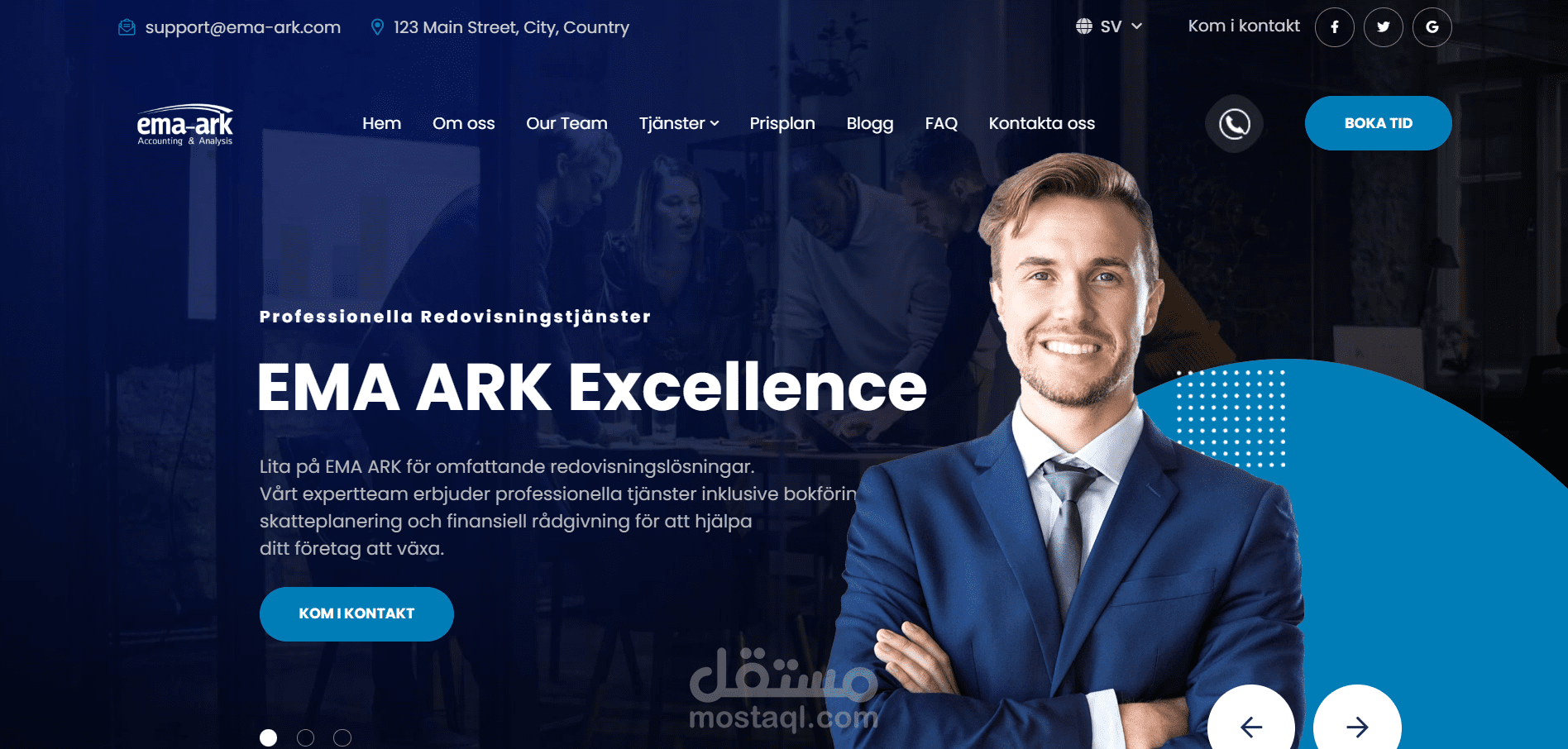 موقع إلكتروني احترافي تم تطويره لمكتب متخصص في المحاسبة القانونية وتأسيس الشركات، بهدف عرض خدماته المالية والقانونية بطريقة واضحة ومنظّمة، تتناسب مع جمهور متعدد اللغات. يوفّر الموقع تجربة مستخدم متكاملة بثلاث لغات: العربية، الإنجليزية، والسويدية، مما يوسّع من نطاق الوصول ويعزز من حضور المؤسسة رقميًا على المستوى الدولي.