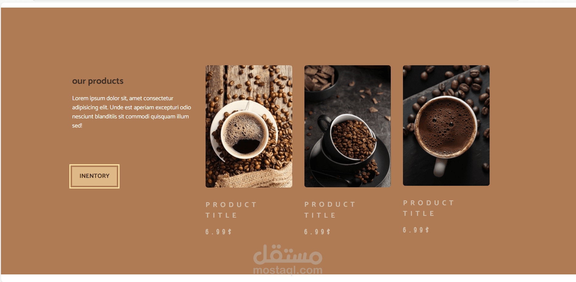 التصميم يعكس جوّ دافئ وجذاب مناسب لهوية محلات القهوة.