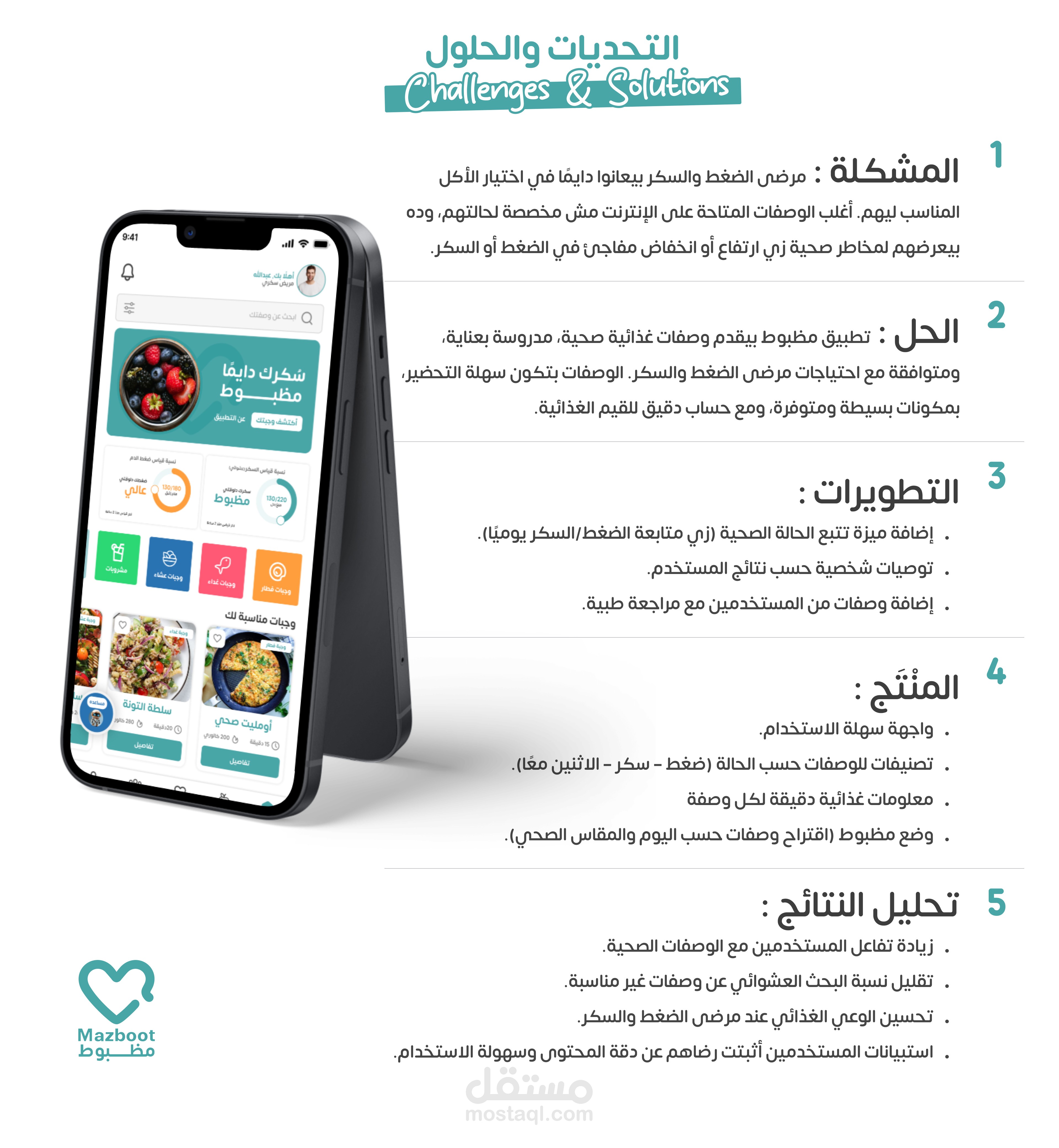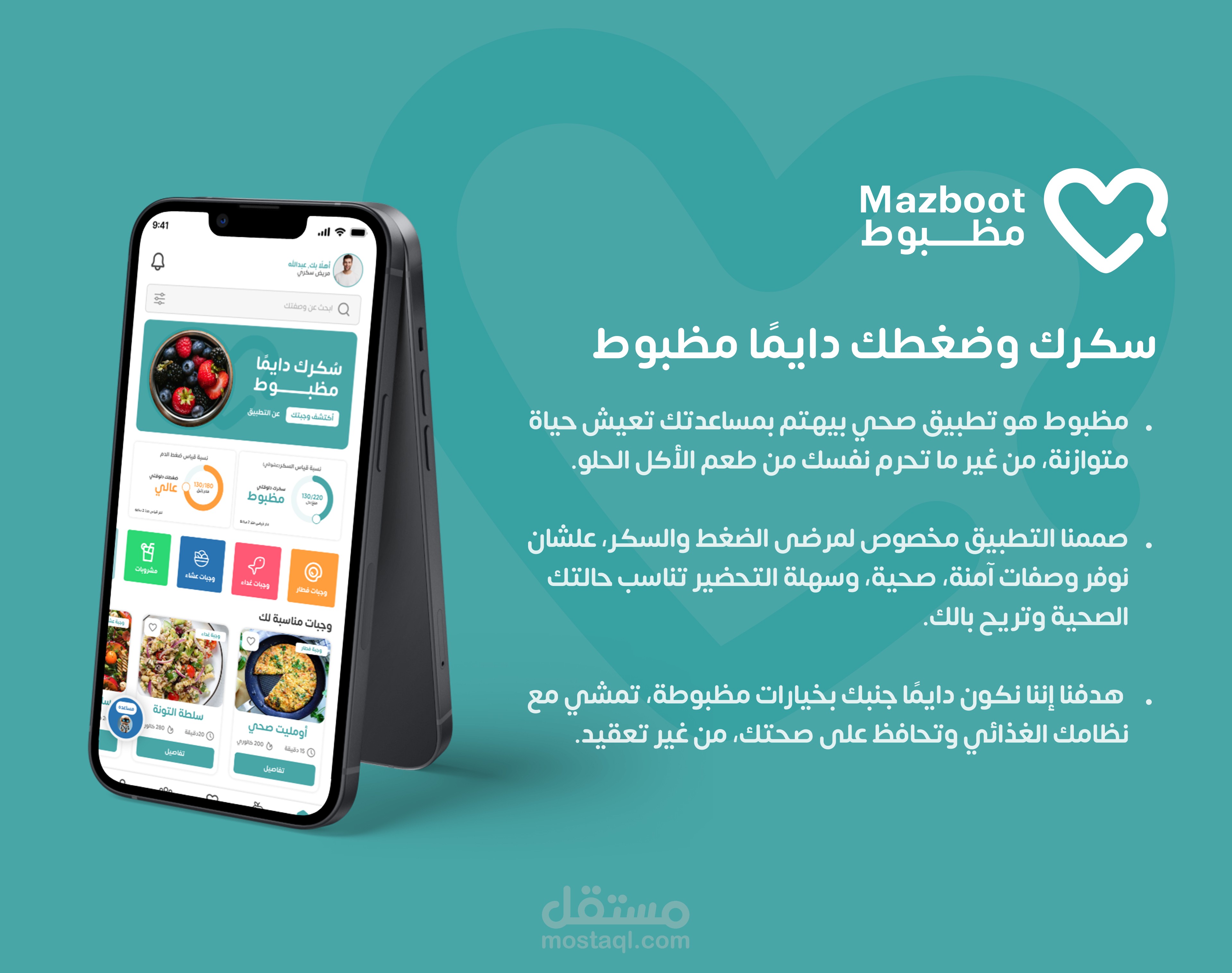تطبيق "مظبوط" لتقديم وصفات اكل صحيه لمرضى السكر وضغط الدم ومتابعة حالتهم الصحيه ومزود ب ai chatbot