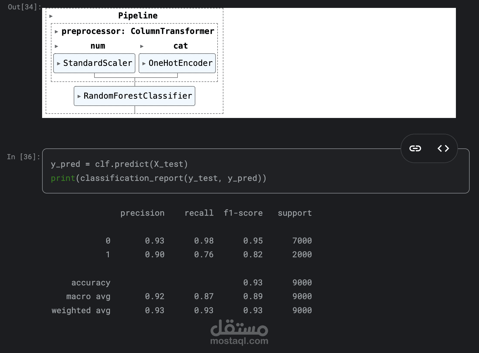 النموذج يقدم نتائج جيدة جدًا على الرغم من اختلال التوازن، مع إمكانية تحسين الاستدعاء للفئة الثانية باستخدام خوارزميات أخرى مثل XGBoost.