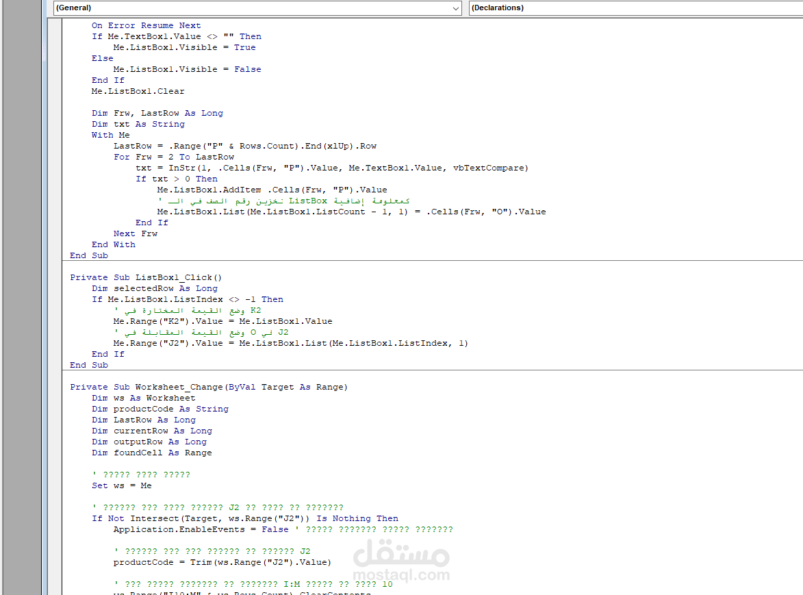 حساب تكاليف المنتجات باستخدام VBA