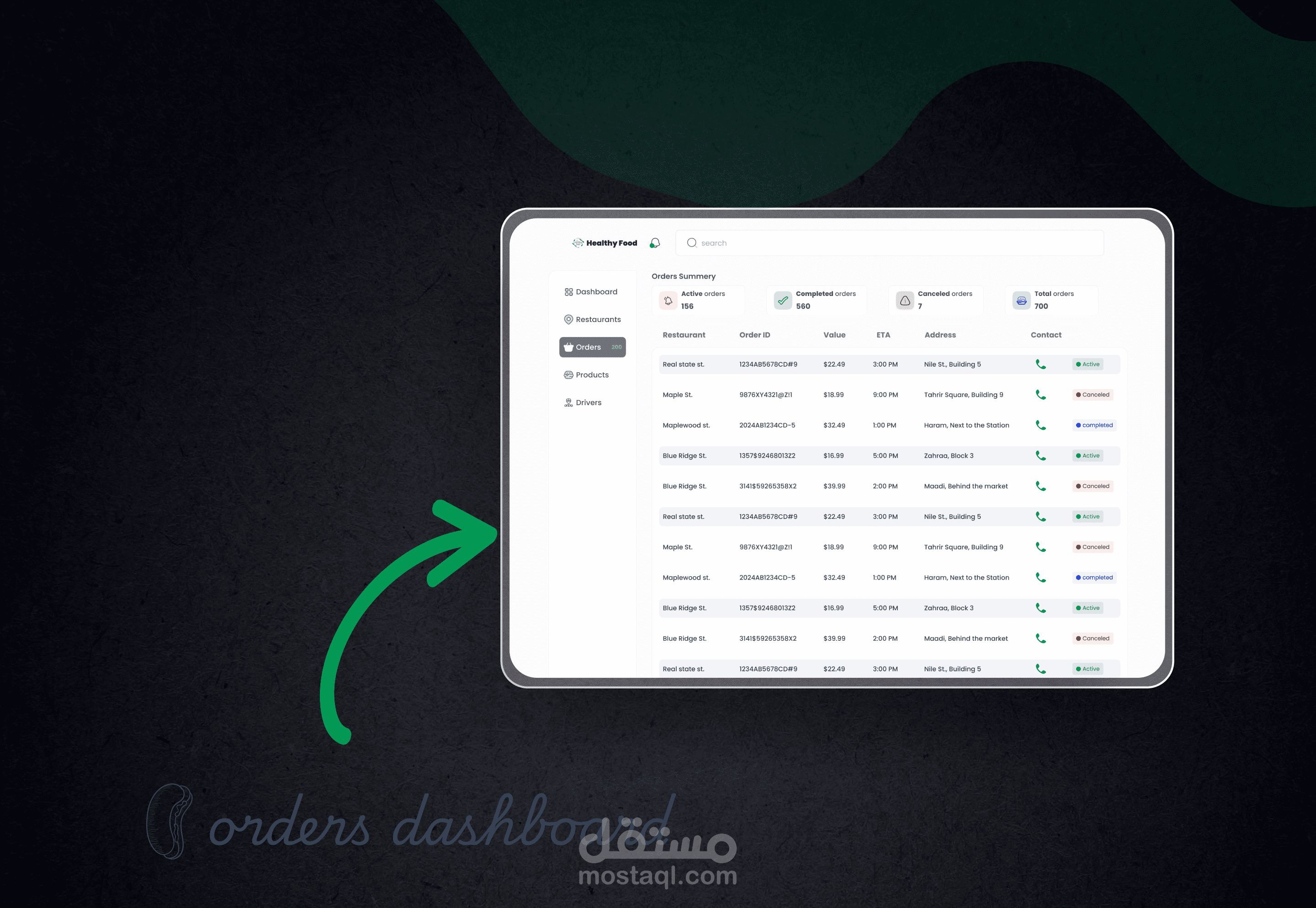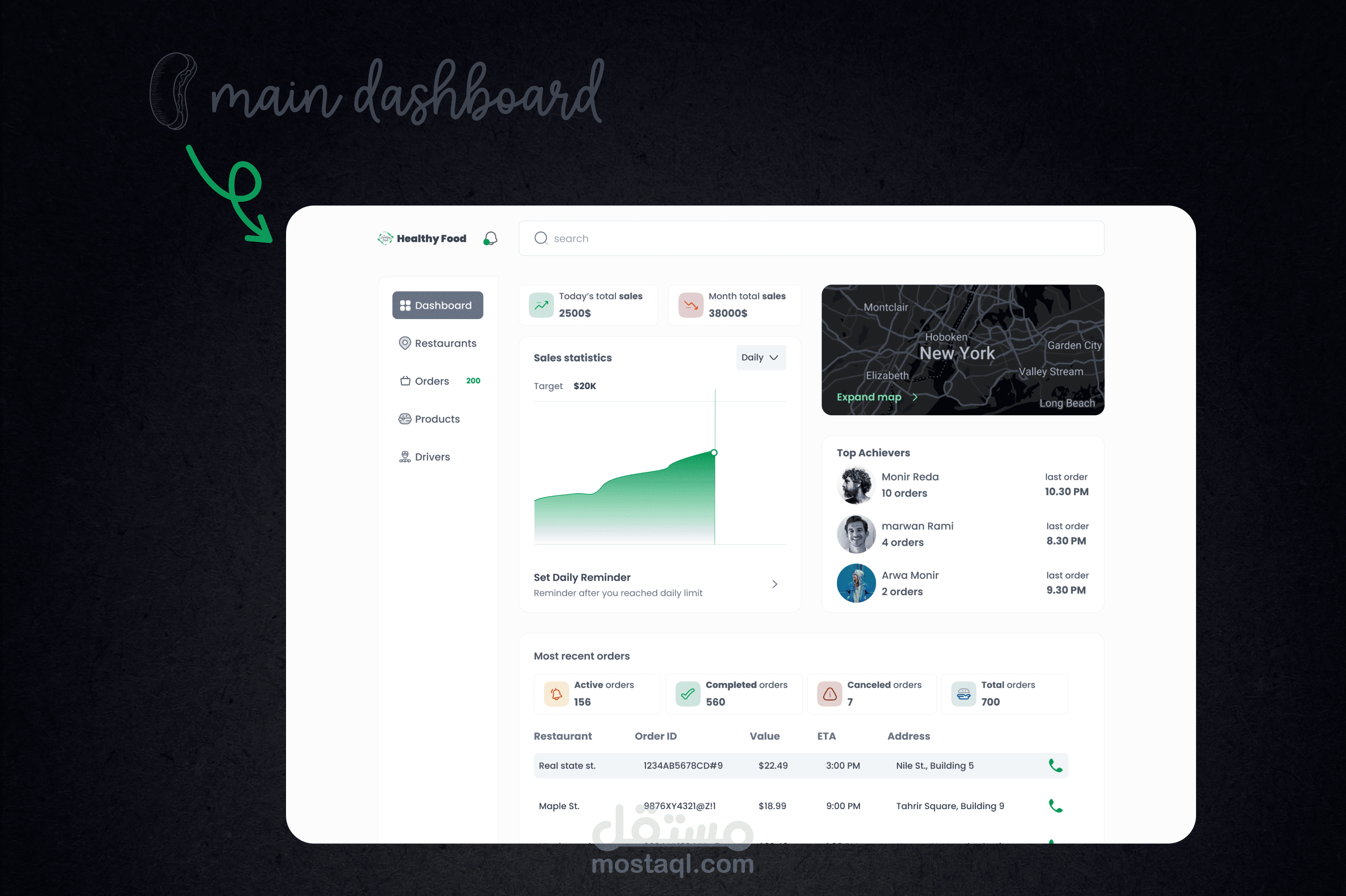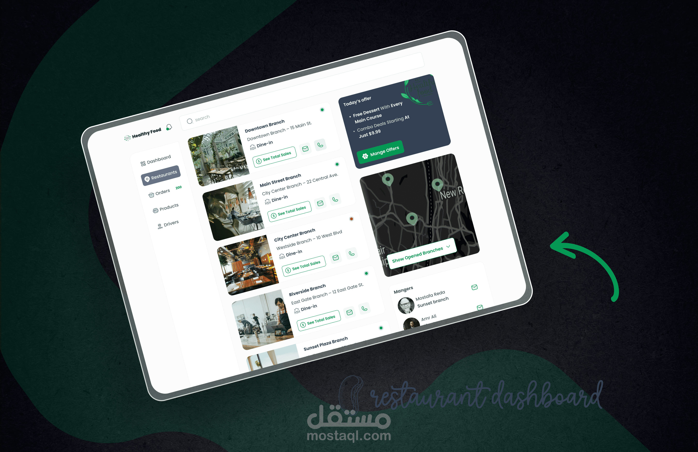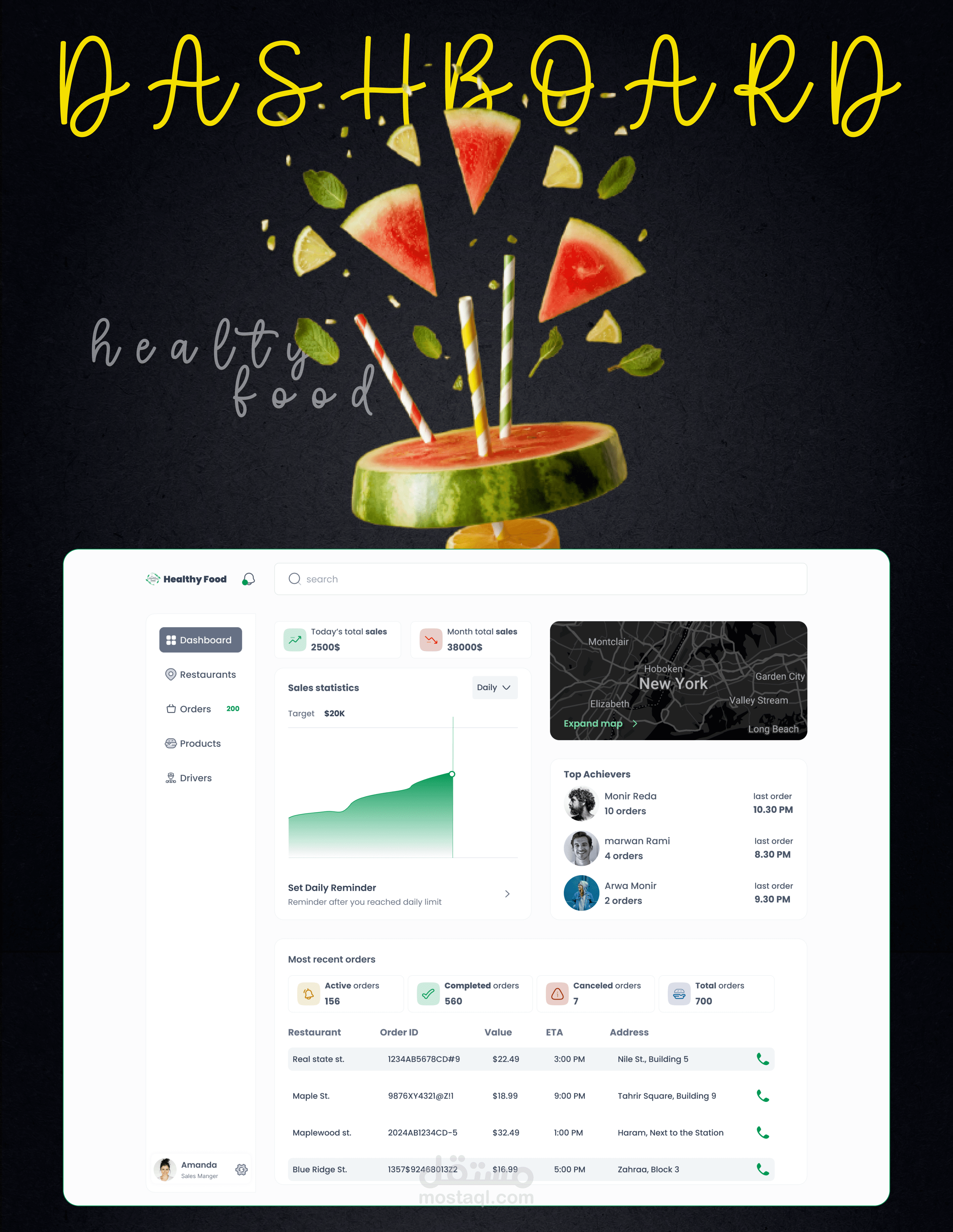 healthy food سلسله مطاعم ليها كذا فرع على مستوى جمهورية مصر العربيه و كانو محتاجيين داشبورد يتابعو بيها المبيعات و التوصيل للاوردرات و الفروع و المنيو