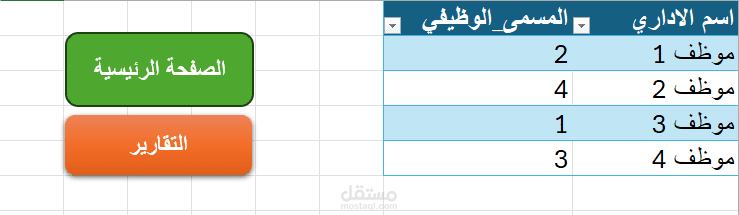 هذا المشروع عبارة عن ملف Excel لأدارة منشأه ويوجد بداخلة المسمي الوظيفي يمكن من خلالها اضافة او حذف مسمي وظيفي الذي تريد -البيانات الاولية يمكن من خلالها اضافة او حذف اسم موظف واختيار المسمي الوظيفي المسجل من قبل عند طريق قائمة اختيار من متعدد