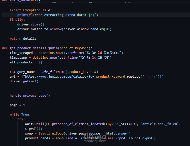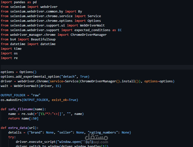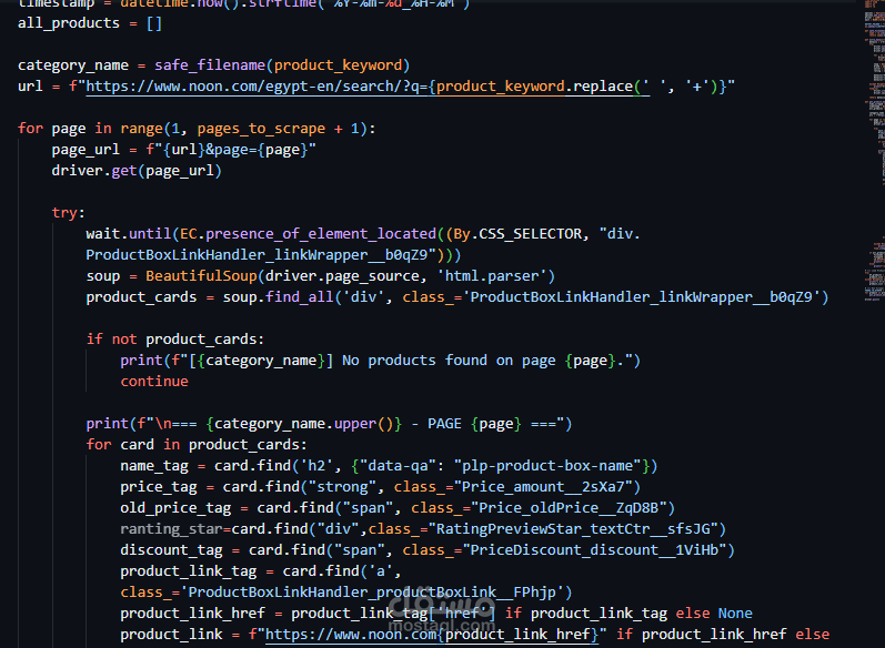 تم استخدام سكريبتات Web Scraping بلغة Python لجمع البيانات يوميًا بشكل تلقائي، ما يسمح بمتابعة تغيرات الأسعار ومراجعات المنتجات (هواتف - لابتوبات) على مدار الوقت.