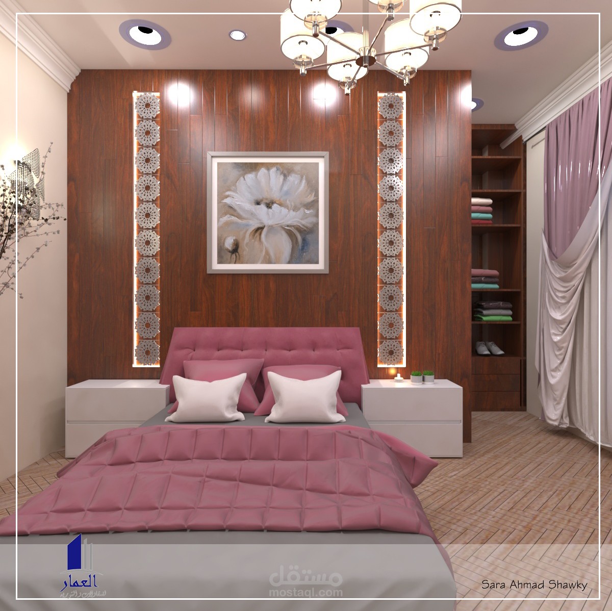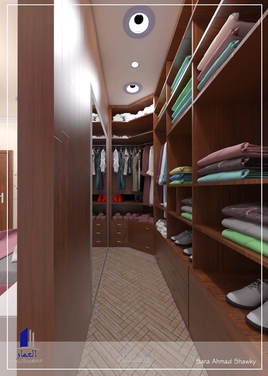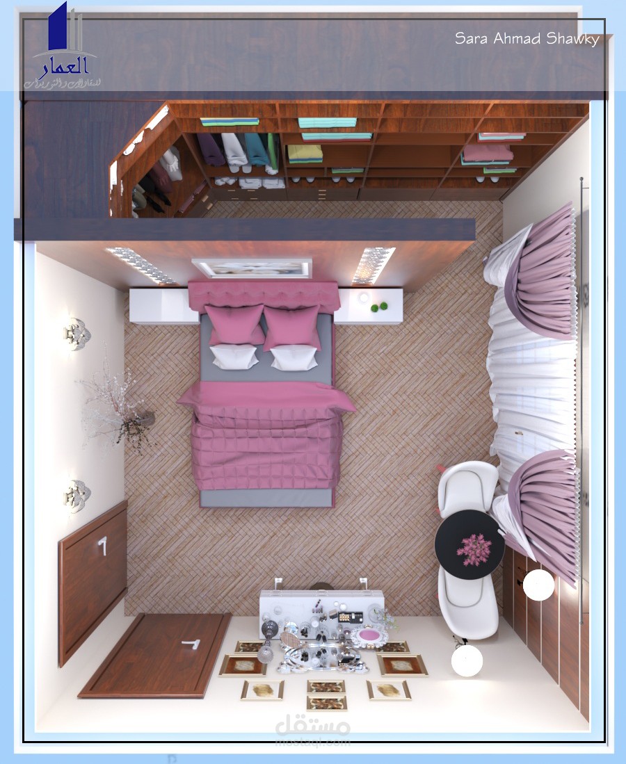 تصميم داخلى لغرفة نوم بسيطة بحيث يتم توفير بها ما يشبه غرفة ملابس بشكل جديد