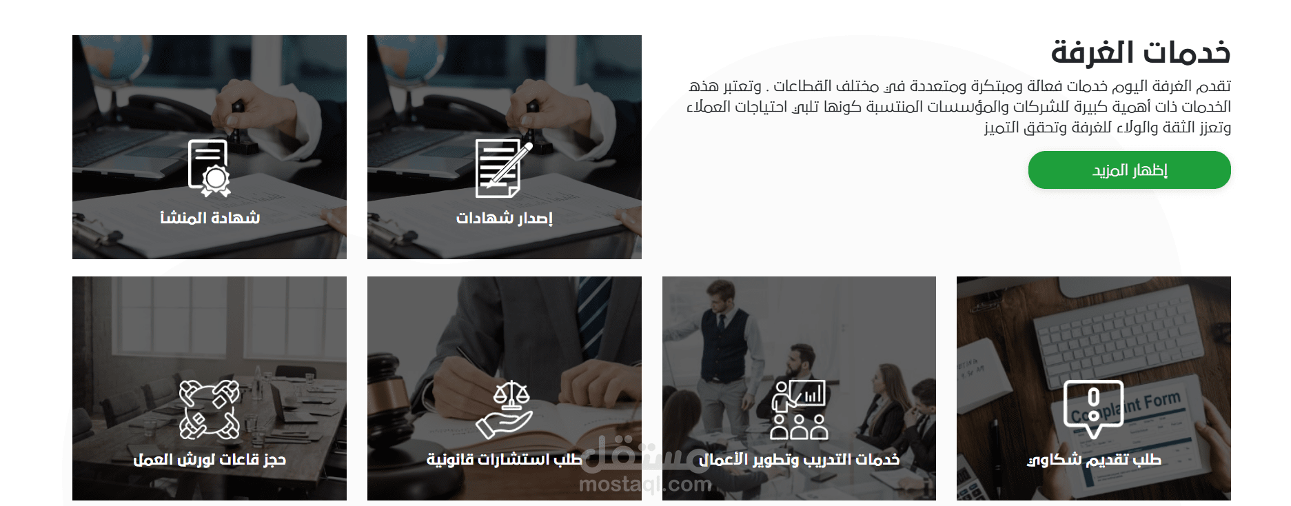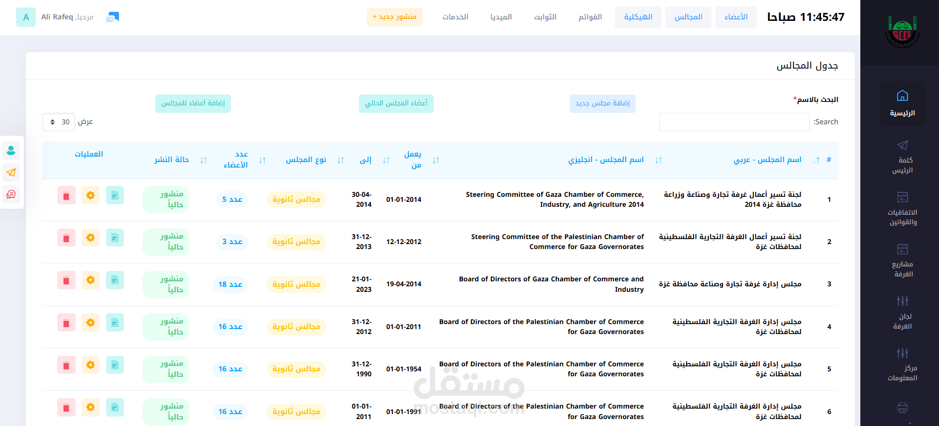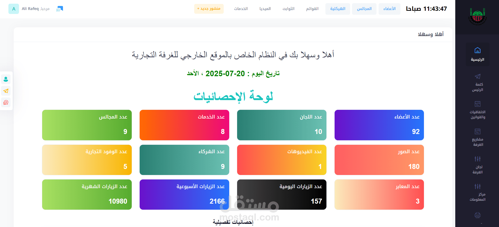 6. دليل الأعضاء : وهو قائمة بالشركات والتجار المسجلين لدى غرفة التجارة ويتم جلب الأسماء من النظام الداخلي للغرفة من خلال Api