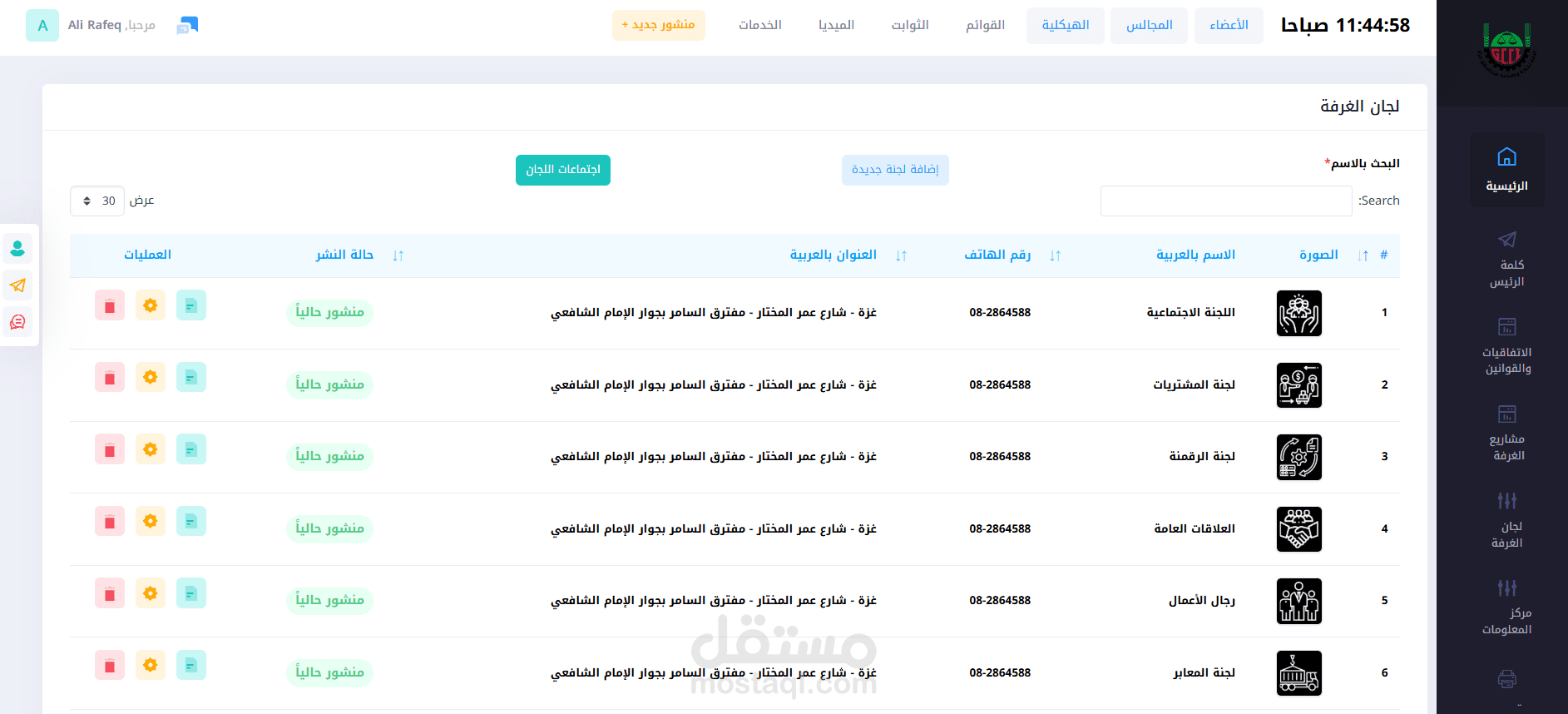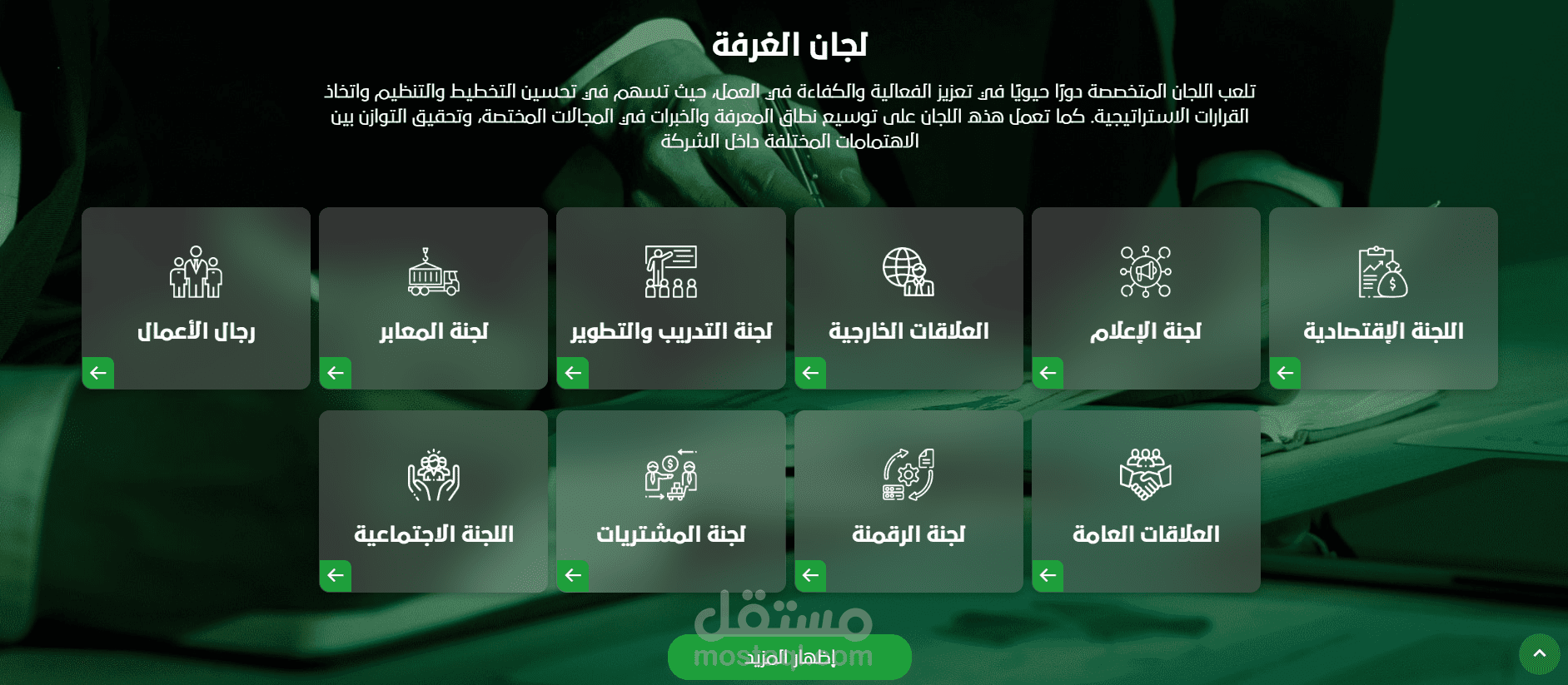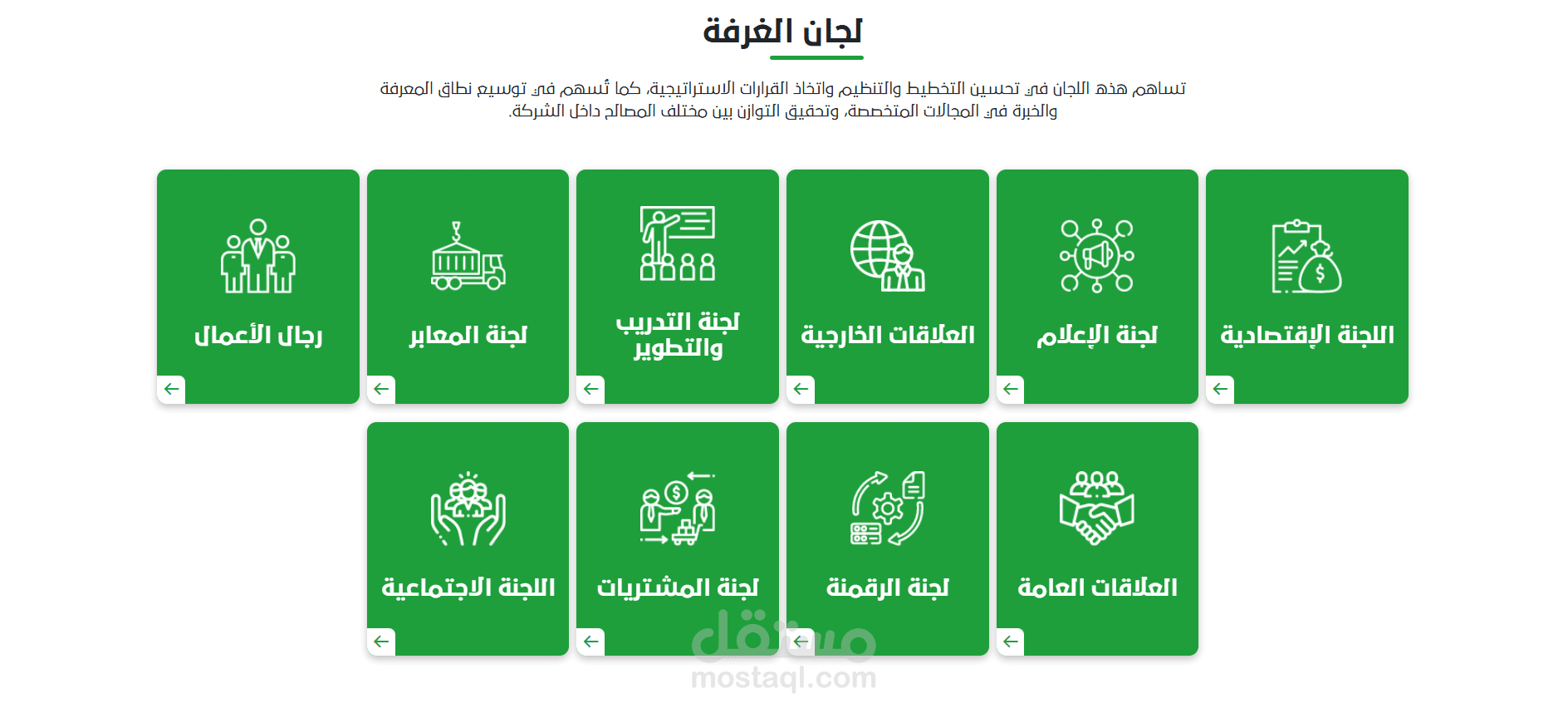 4. لجان الغرفة : وتضم وصف توضيحي لكل لجنة مع أعضائها واجتماعاتها وكافة تفاصيلها.