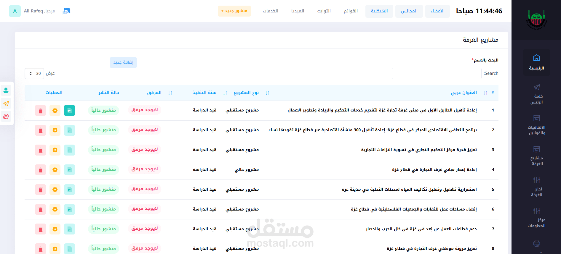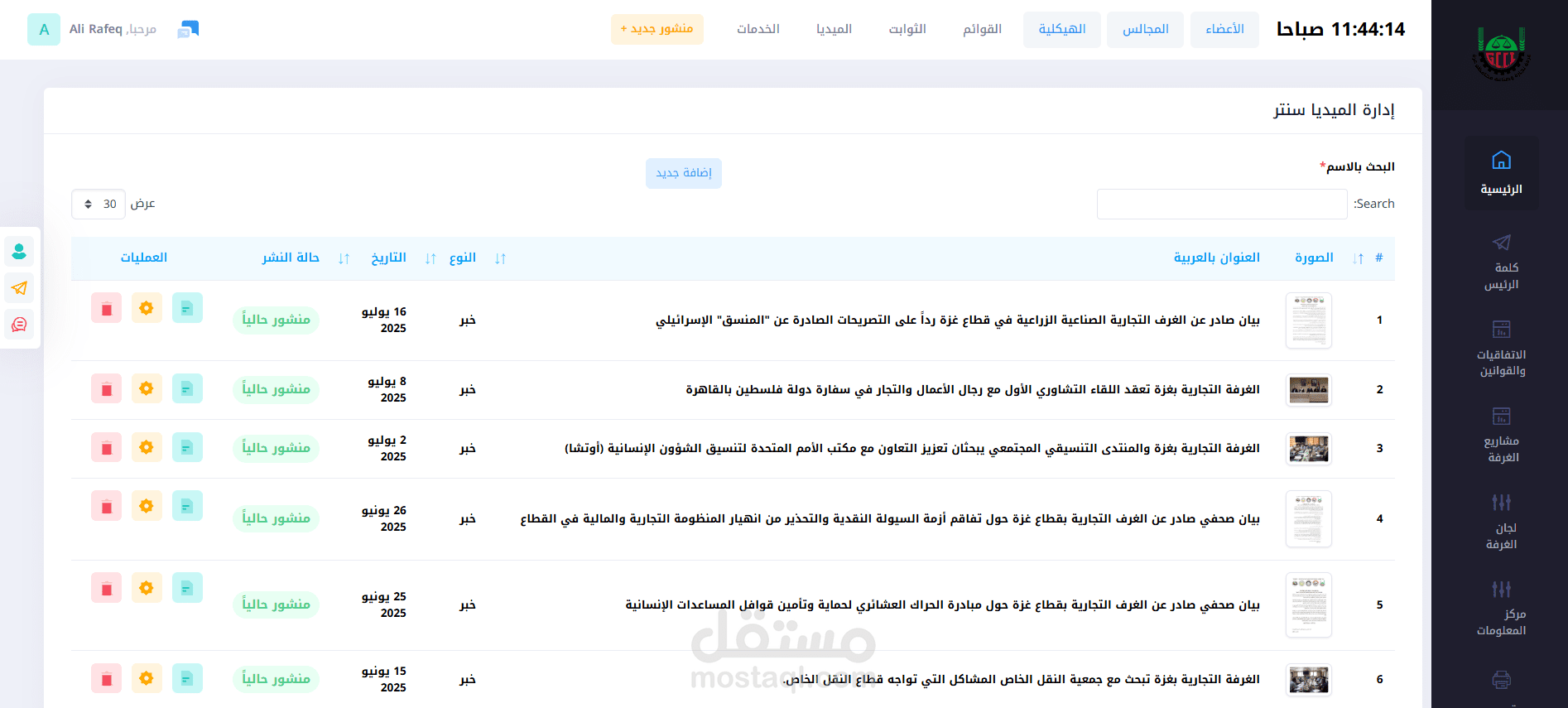 10. مركز المعلومات : يضم كم هائل من التقارير والمعلومات الخاصة بالغرفة ومدينة غزة بشكل عام.