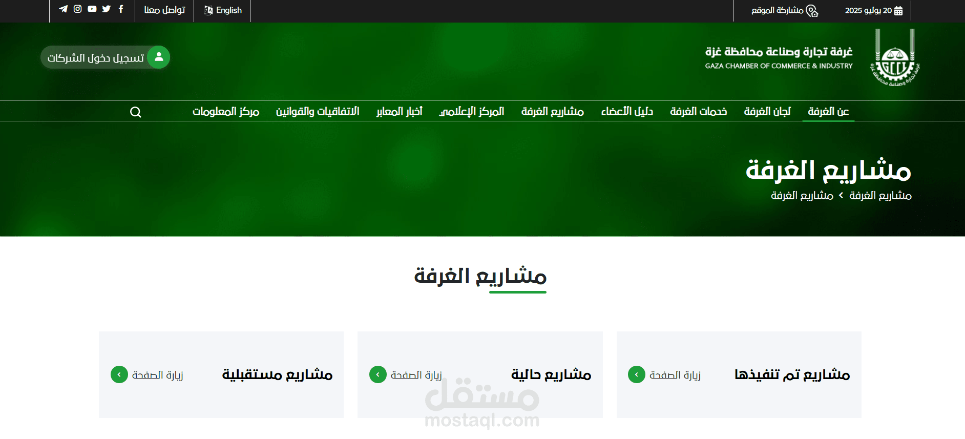 7. مشاريع الغرفة : المشاريع التي تم تنفيذها والمشاريع قيد التنفيذ والمشاريع المكتملة.