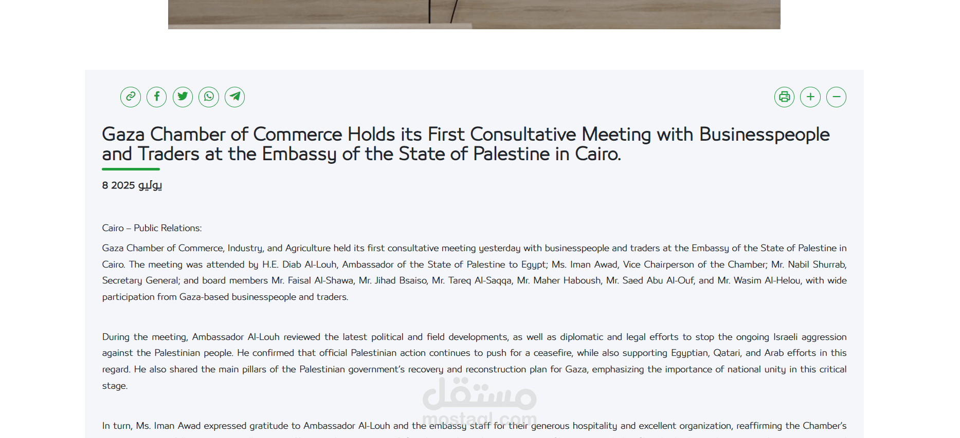 الموقع الرسمي لغرفة تجارة وصناعة محافظة غزة، تعد غرفة التجارة من أقدم الغرف التجارية في فلسطين حيث تأسست عام 1925 م.