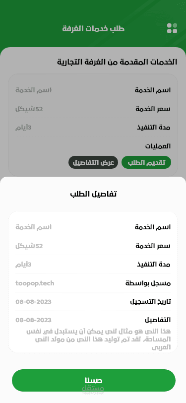 3. يتمكن التاجر من طلب الخدمات المقدمة من الغرفة من التطبيق بشكل مباشر ومتابعة طلباته
