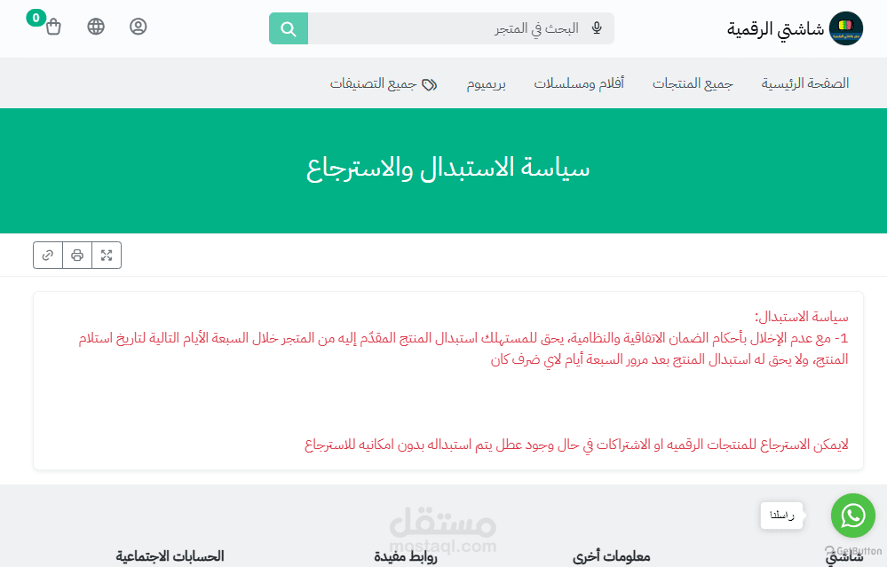 قمت بتصميم وتطوير متجر إلكتروني متكامل باستخدام منصة زد (Zid)، حيث شملت المهام: