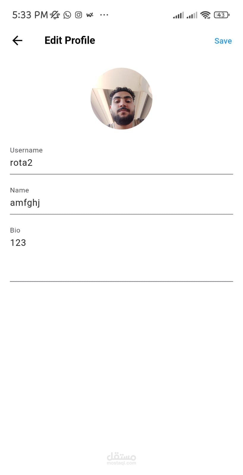 اسم، اسم مستخدم (Username)، بايو.