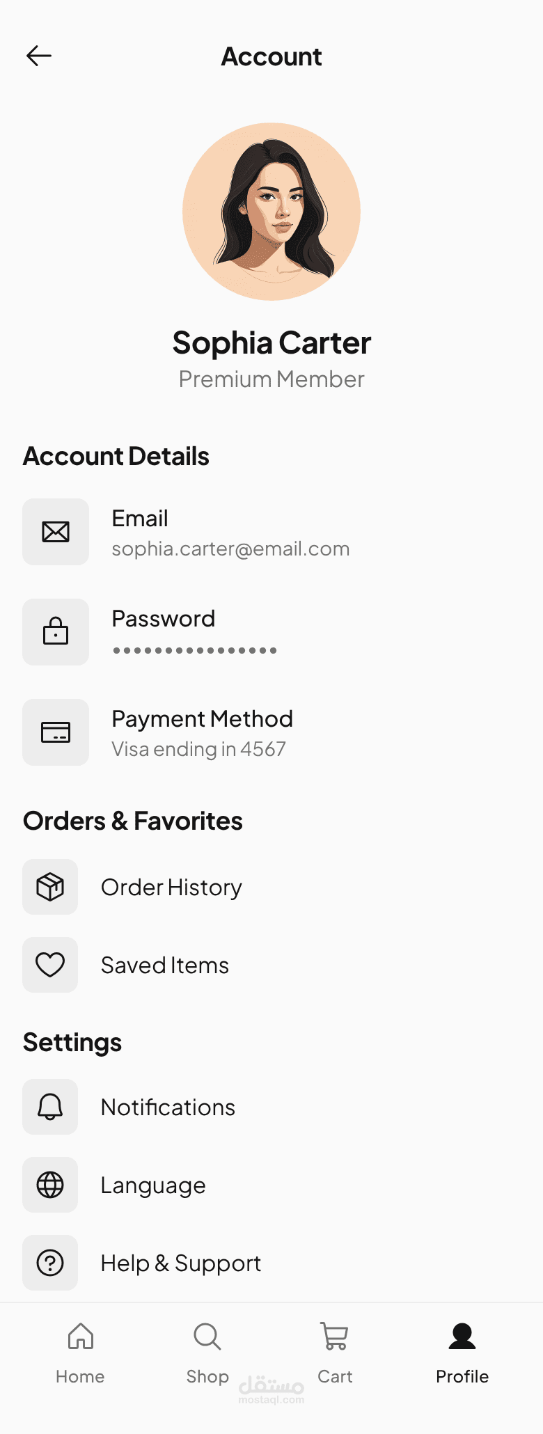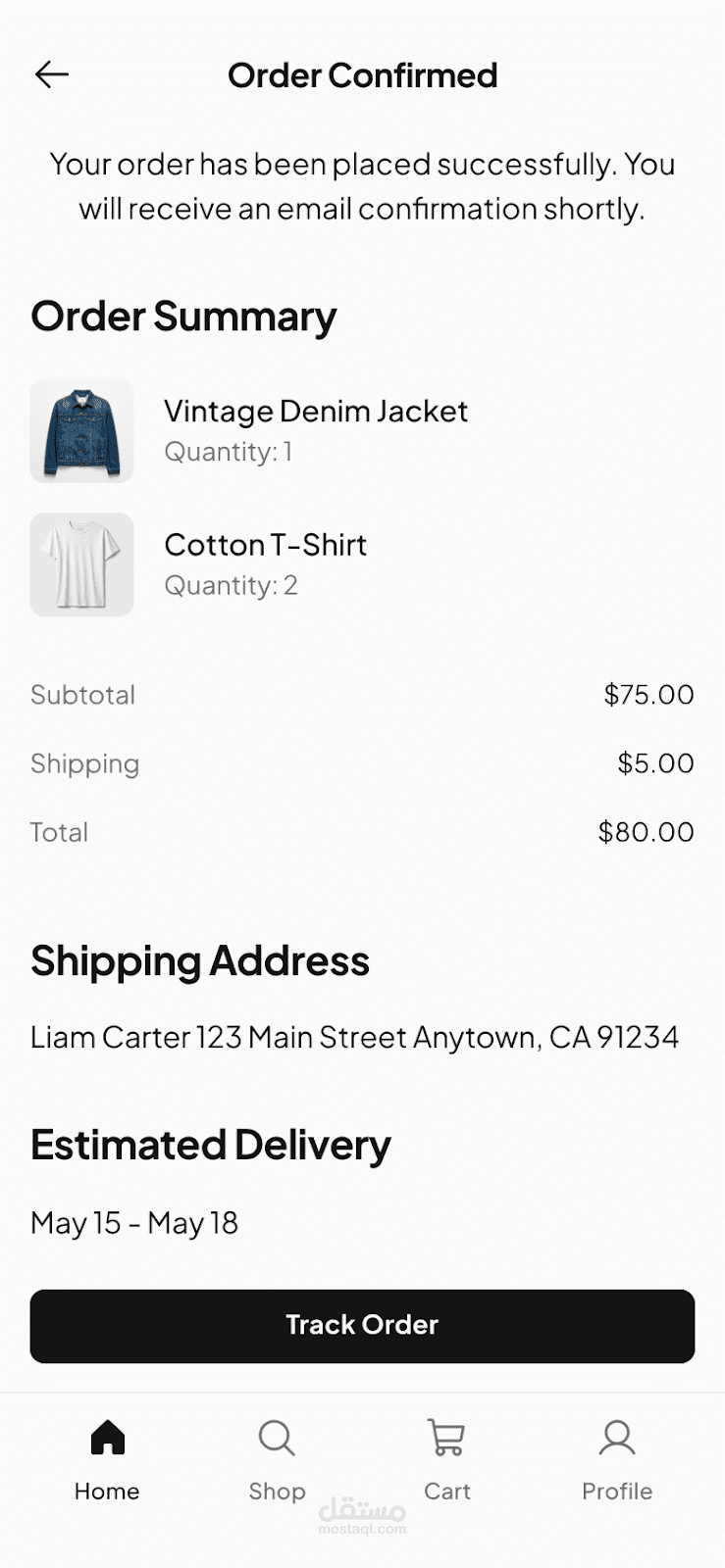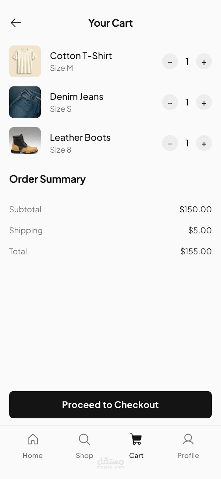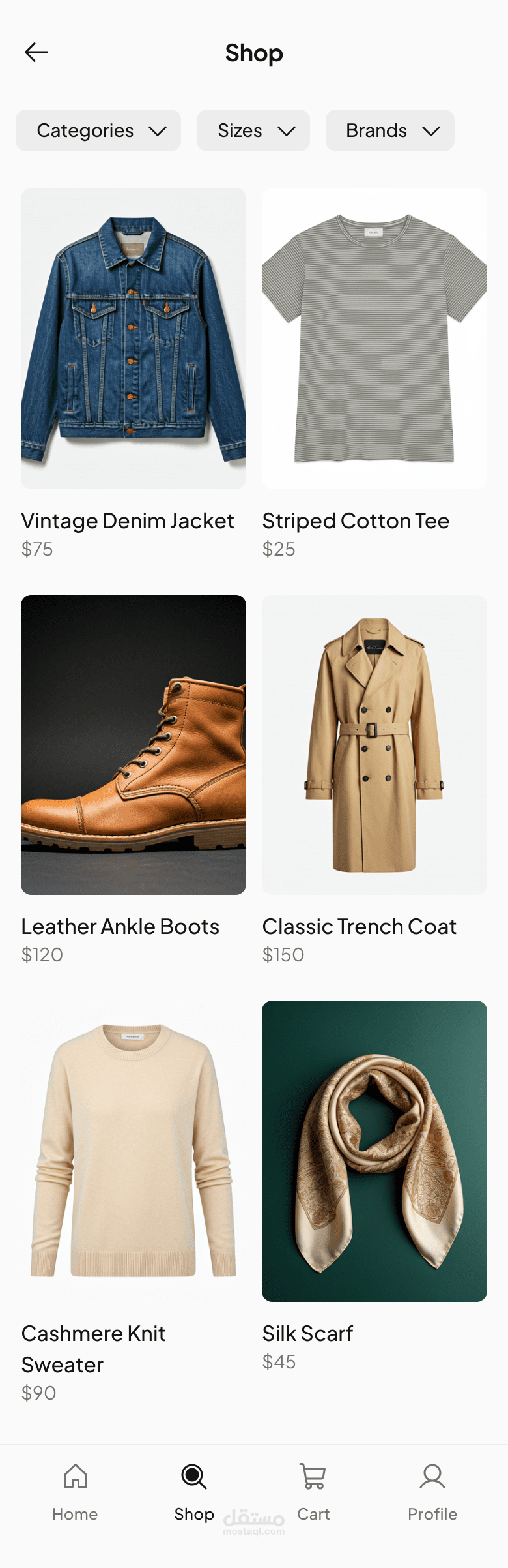 هو إنشاء الشكل والتجربة الكاملة التي يعيشها المستخدم داخل تطبيق مخصص لشراء الملابس. الهدف هو تسهيل التصفح، عرض المنتجات بشكل جذاب، وتقديم تجربة شراء ممتعة وسهلة.