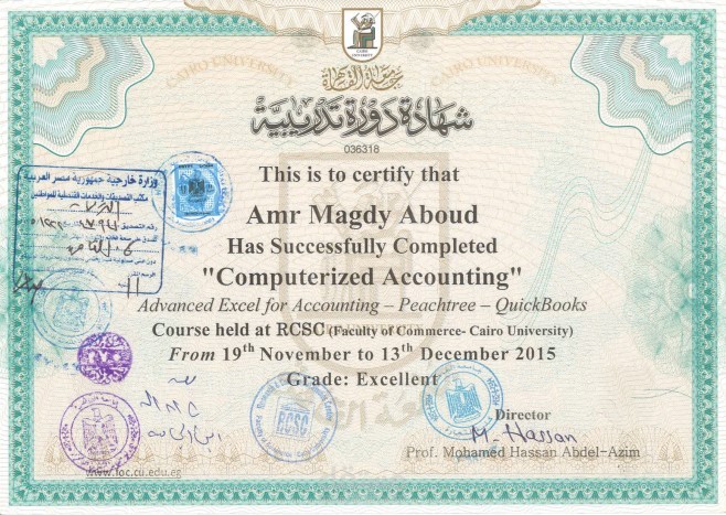 1️⃣ في عام 2015، بدأت رحلتي بتعلم التحليل المحاسبي باستخدام Excel في مركز البحوث والدراسات التجارية – جامعة القاهرة.