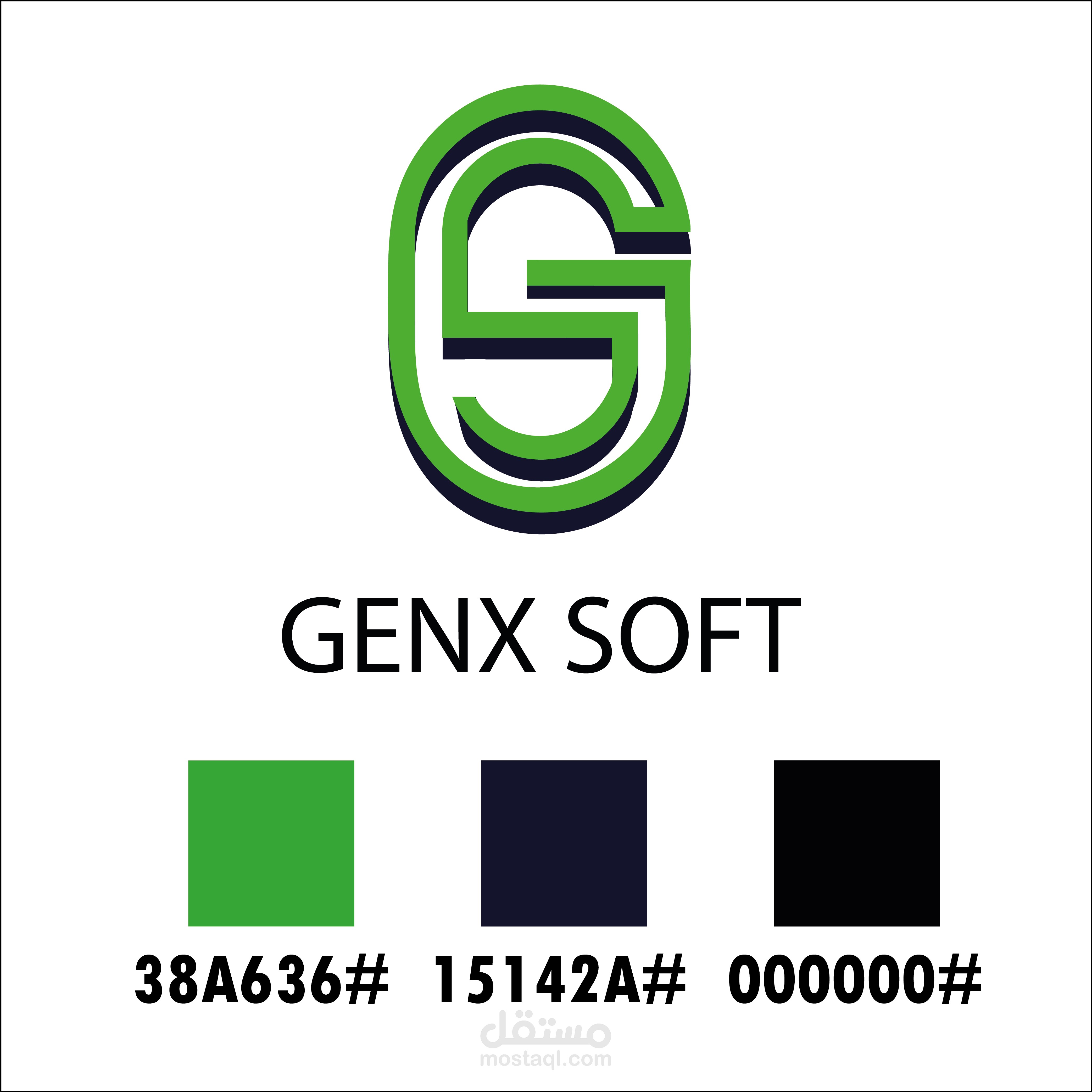 The "GENX SOFT" logo features a stylized green "G" with a modern, three-dimensional design, accented by dark outlines that add depth. The green color suggests growth, innovation, and eco-friendliness, aligning with the "SOFT" (software) aspect of the name. The bold, uppercase text "GENX SOFT" emphasizes a cutting-edge and dynamic brand identity, likely representing a technology or software company focused on next-generation solutions.