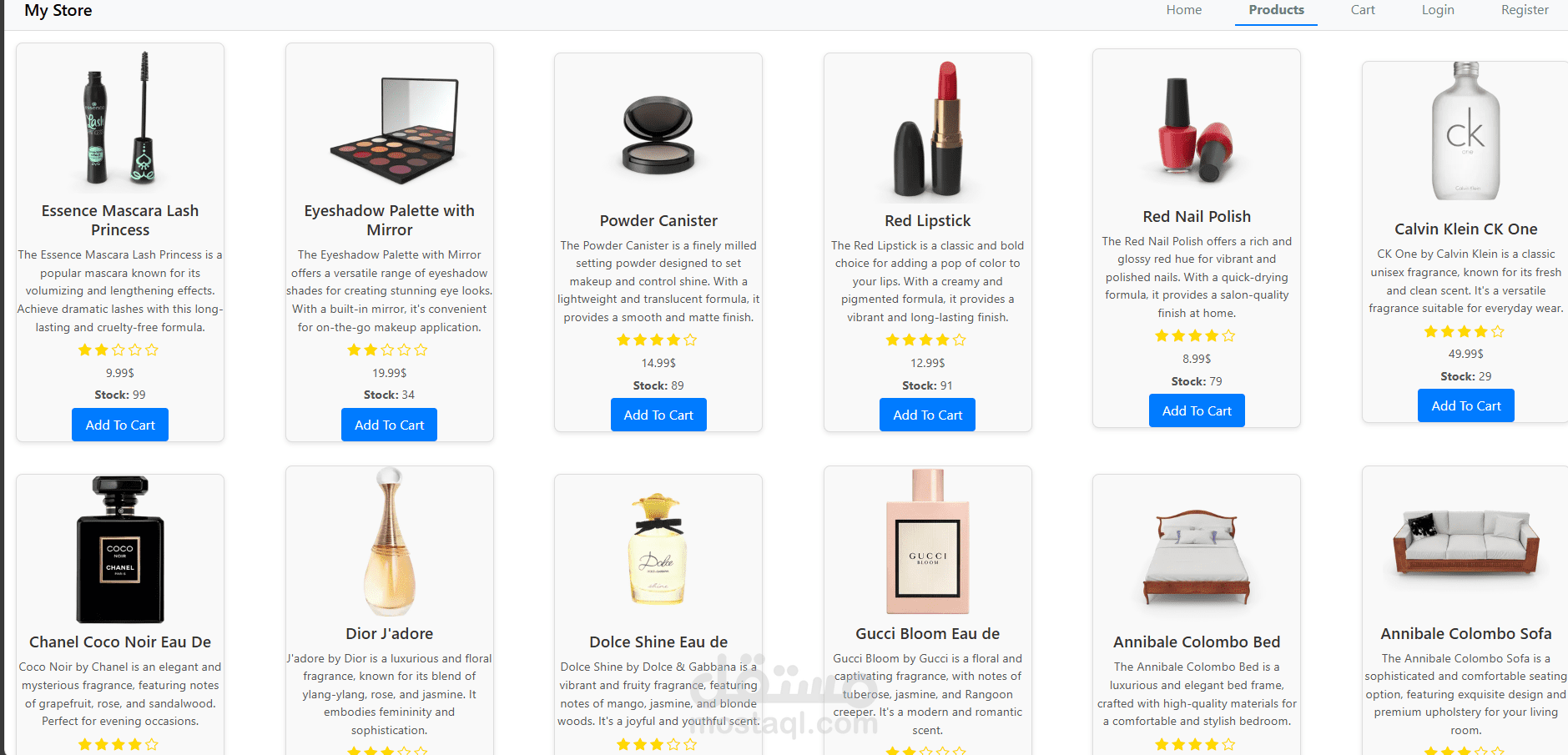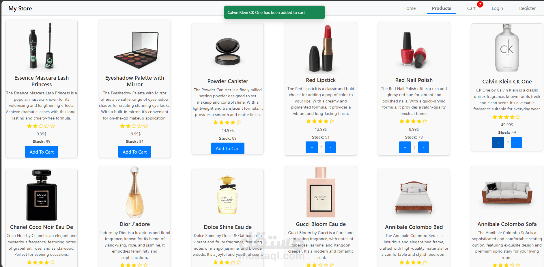 موقع إلكتروني لعرض المنتجات باستخدام React و Redux