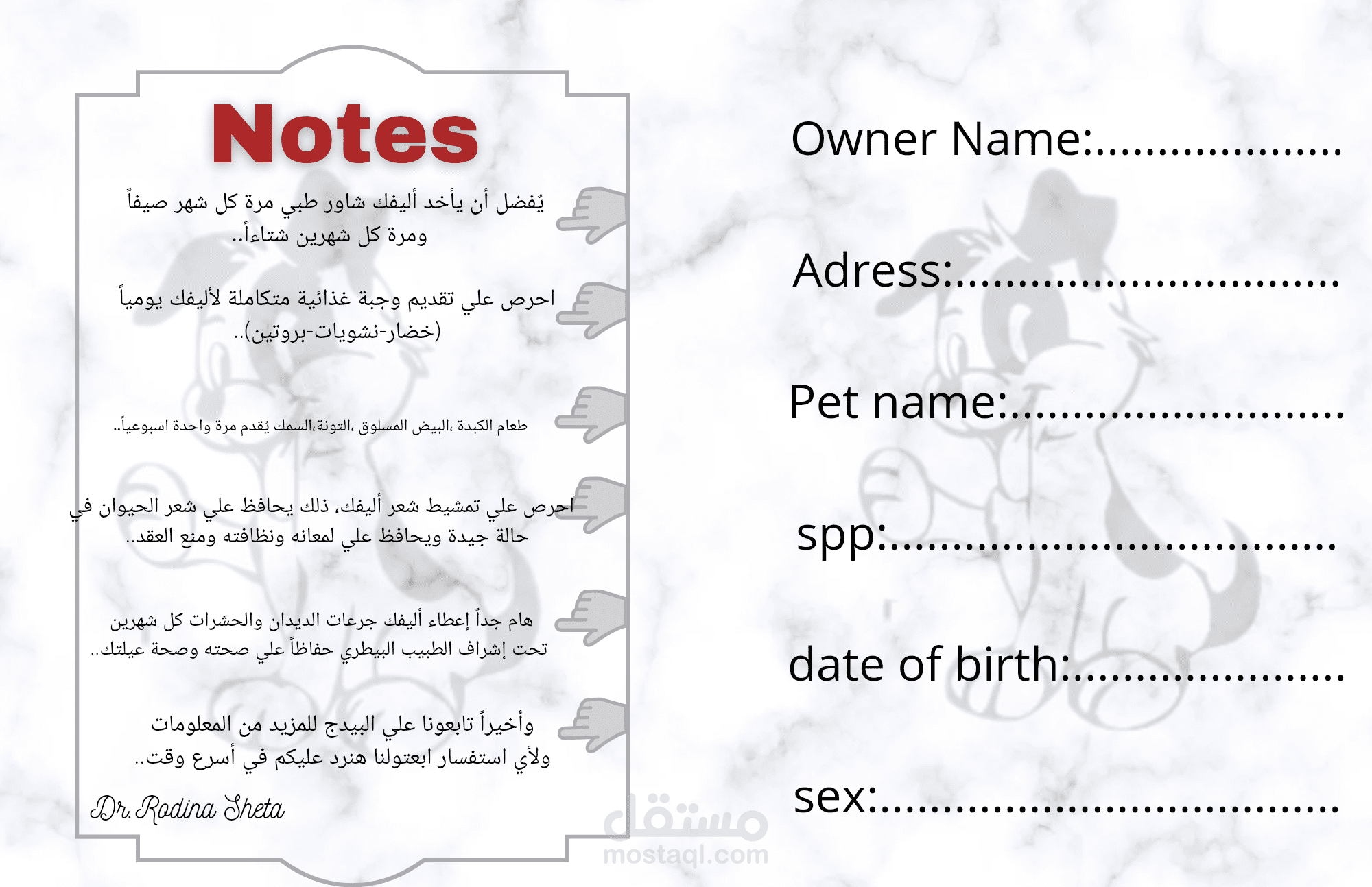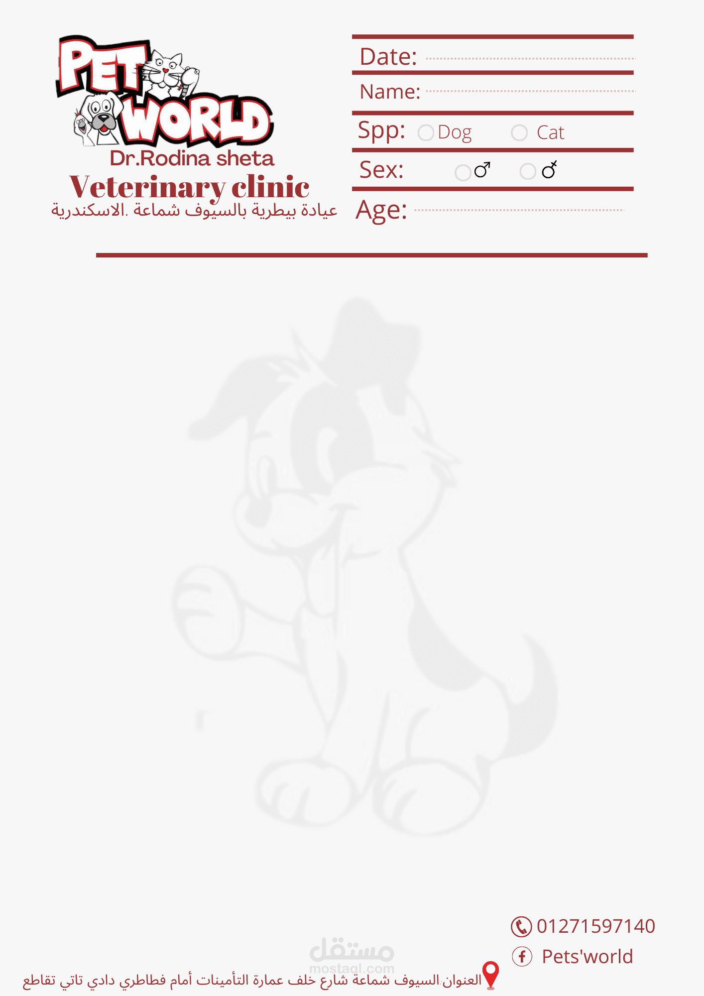 قمت بتصميم غلاف لدفتر دوري لعياده بيطريه بشكل احترافي و يعكس الهويه البصريه للعياده البيطريه بواسطة برنامج canva