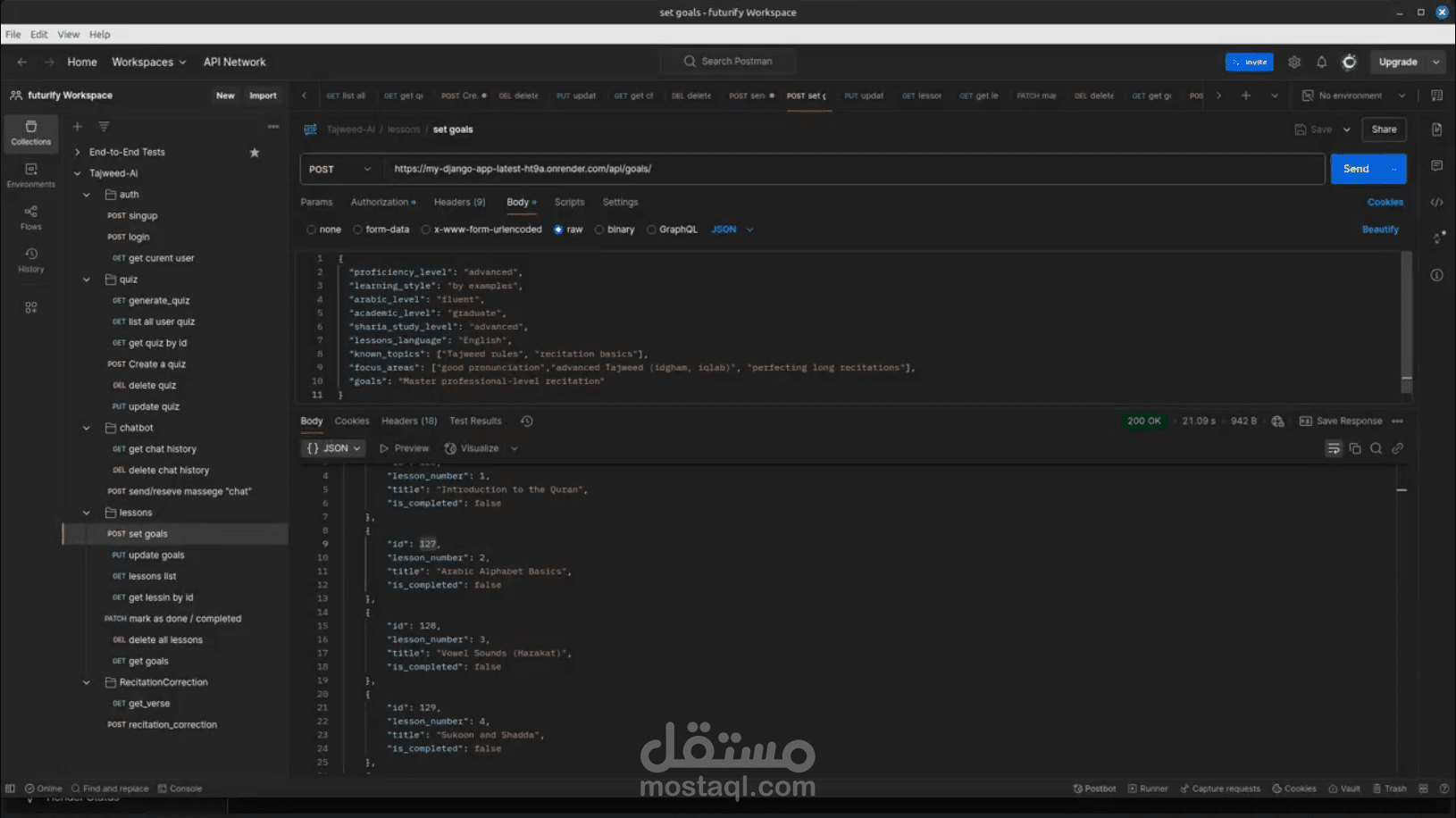 POST: تحديد أهداف المستخدم وتوليد دروس