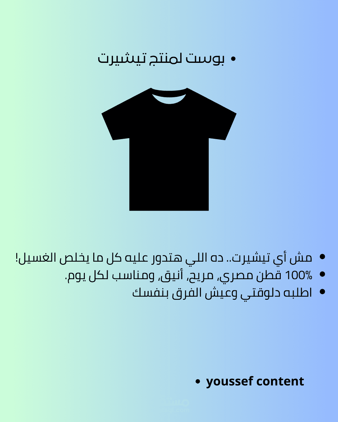 هل تبحث عن منشورات جذابة تحفّز التفاعل وتزيد من مبيعاتك على السوشيال ميديا؟ أنا هنا لمساعدتك في كتابة محتوى تسويقي مقنع بأسلوب يناسب جمهورك ويعكس هوية مشروعك.
