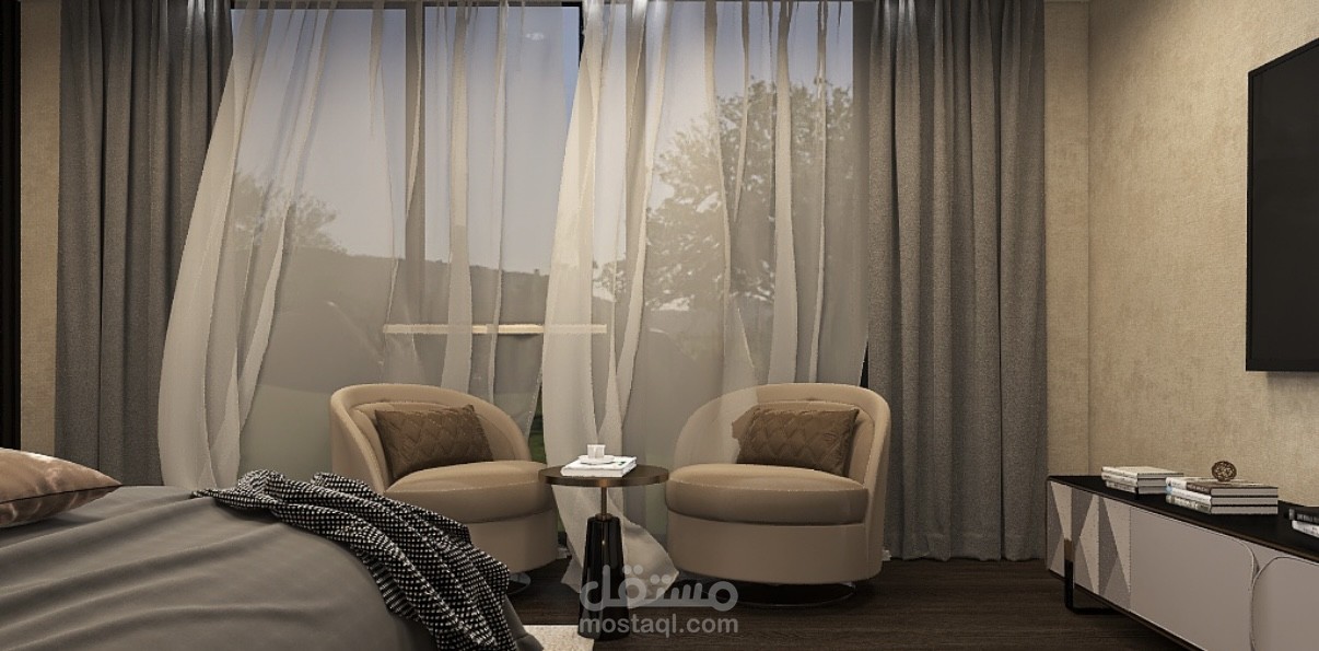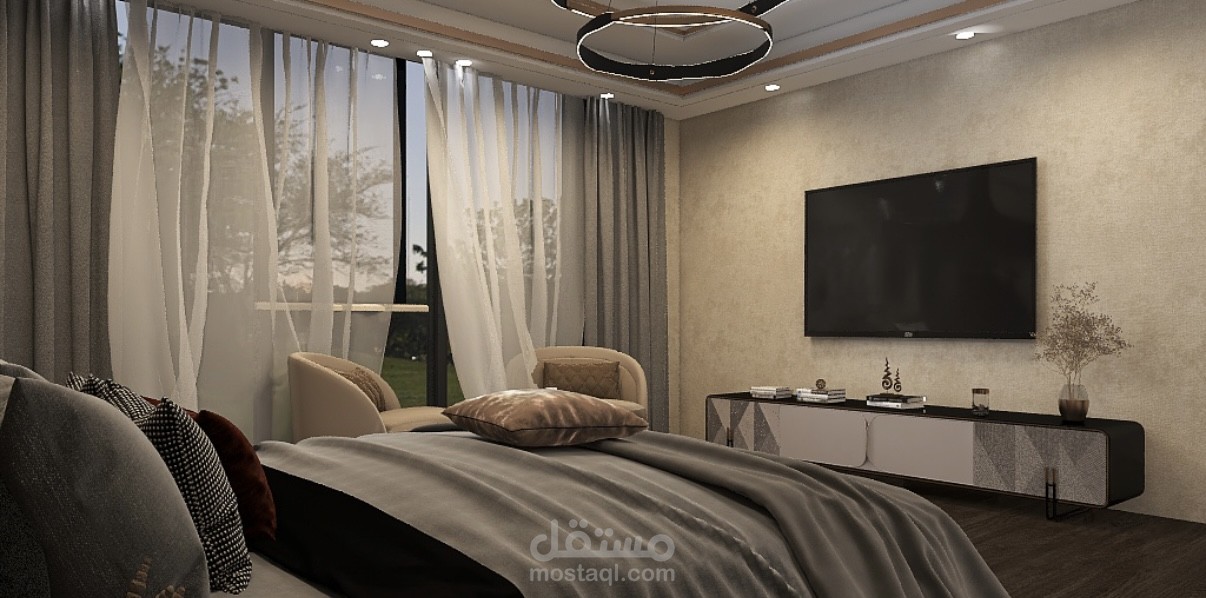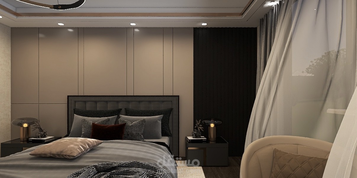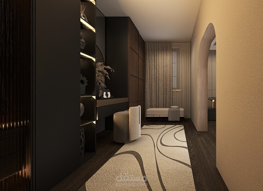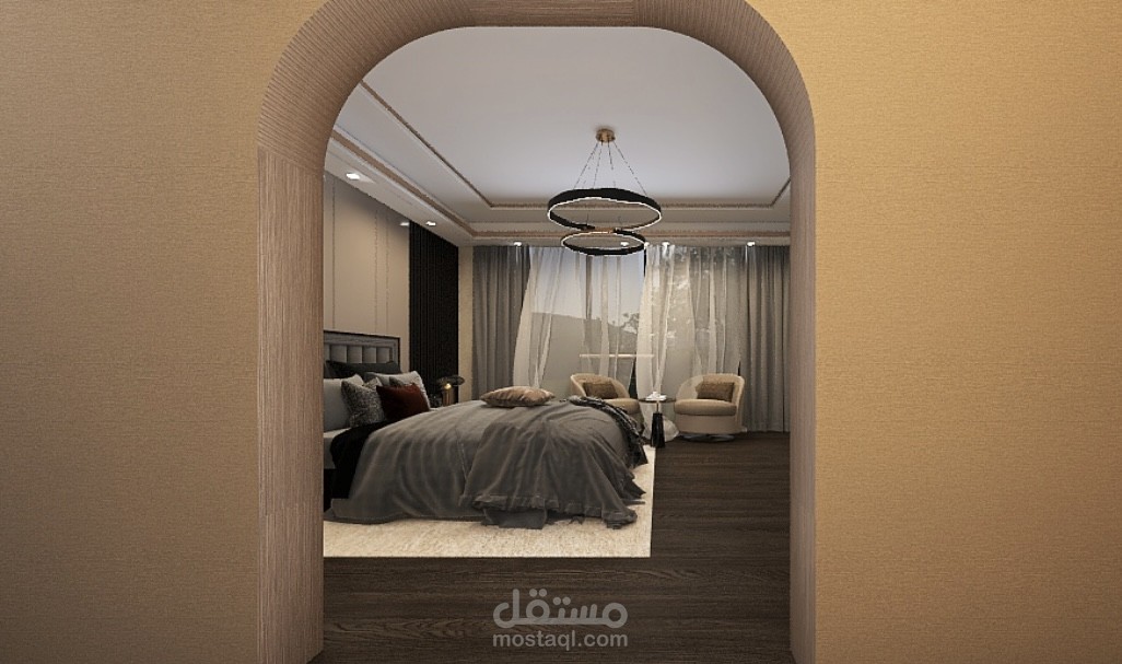 غرفة نوم مع غرفة ملابس