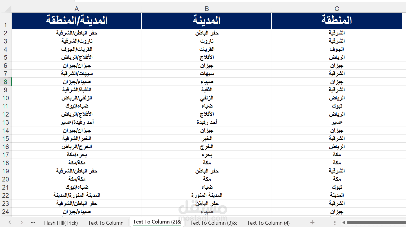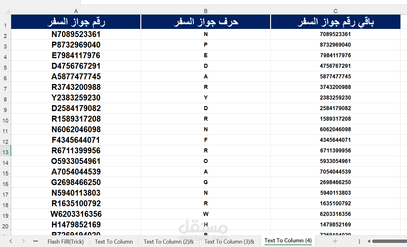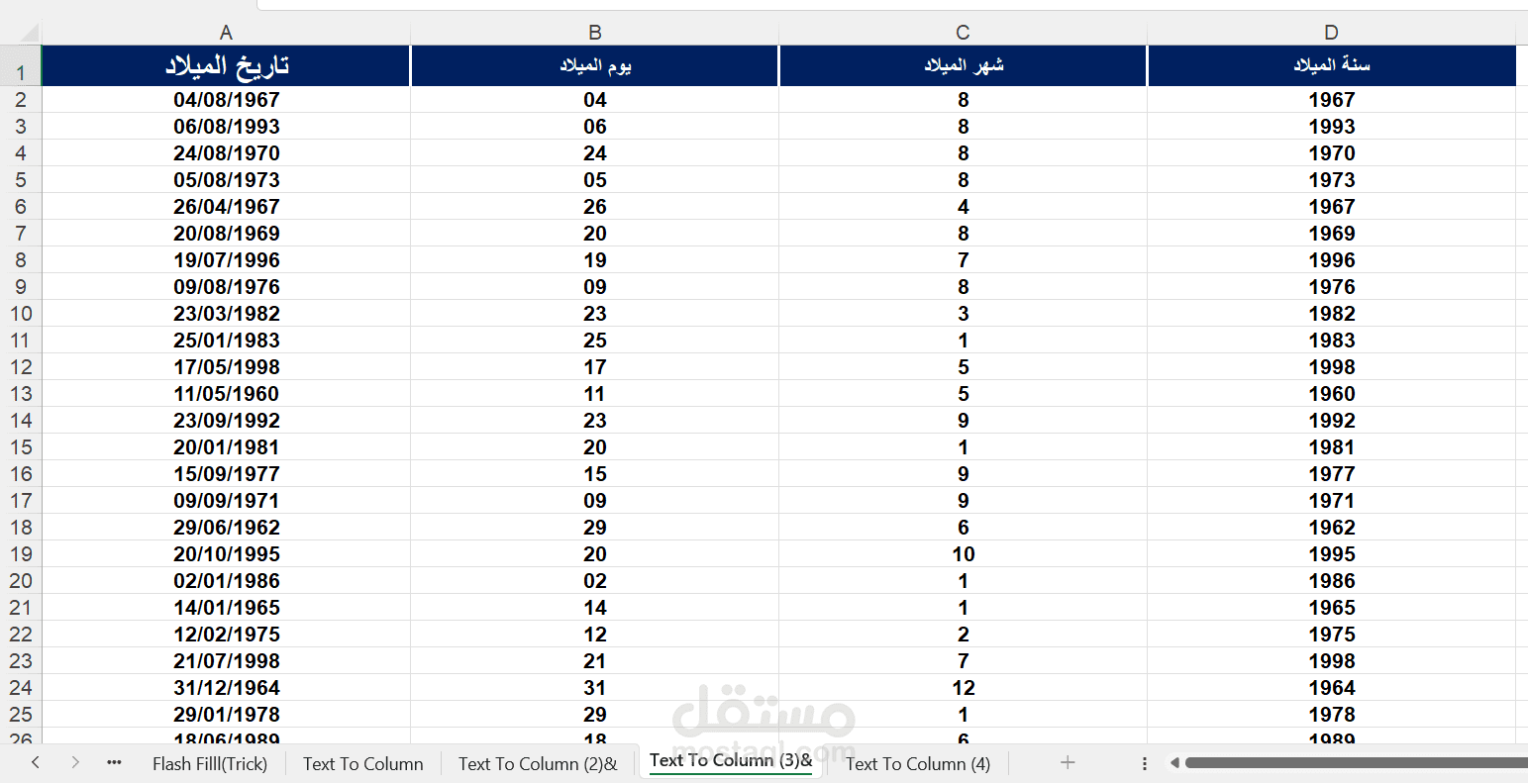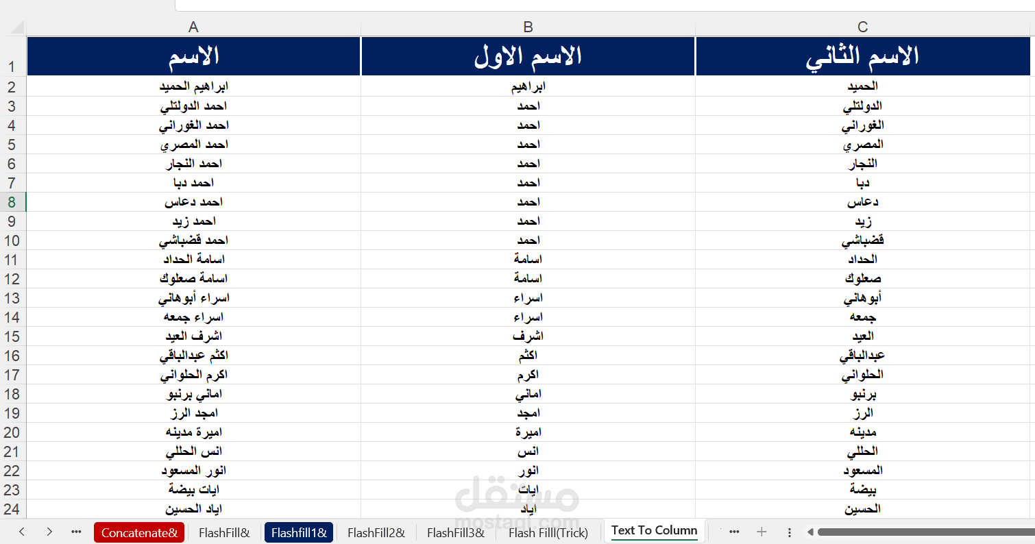 كما تم تطبيق أدوات مثل Flash Fill وText to Columns لفصل البيانات النصية باحتراف، مما يساعد في تنظيم البيانات بشكل أسرع وأسهل.