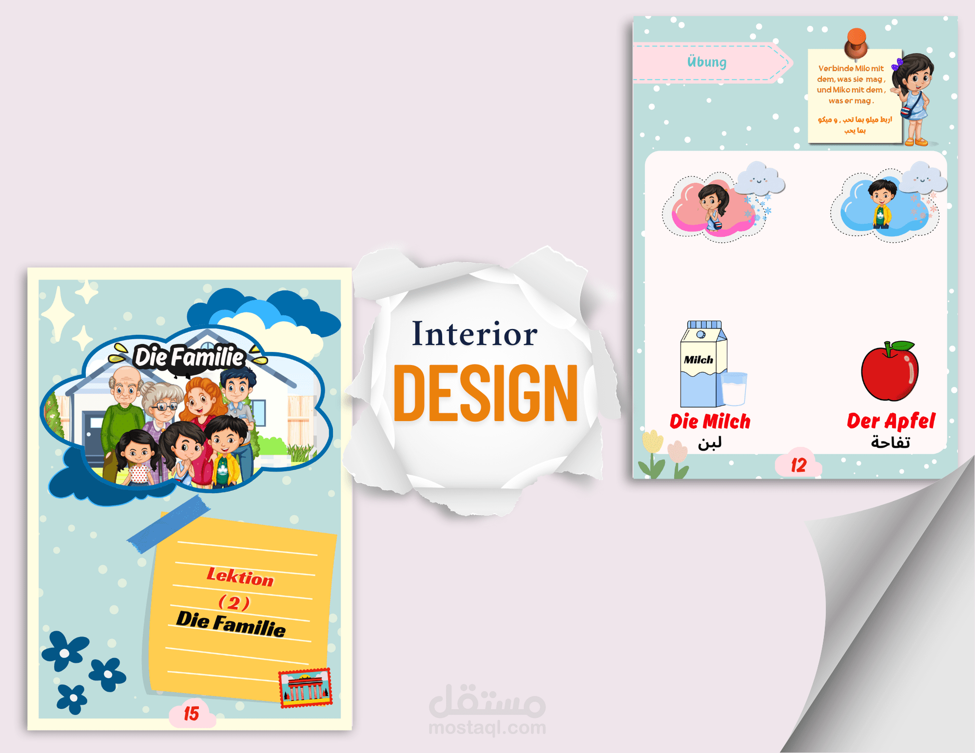 - تم العمل على تصميم غلاف الكتاب والمحتوى الداخلي لكل تمرين ودرس داخله.